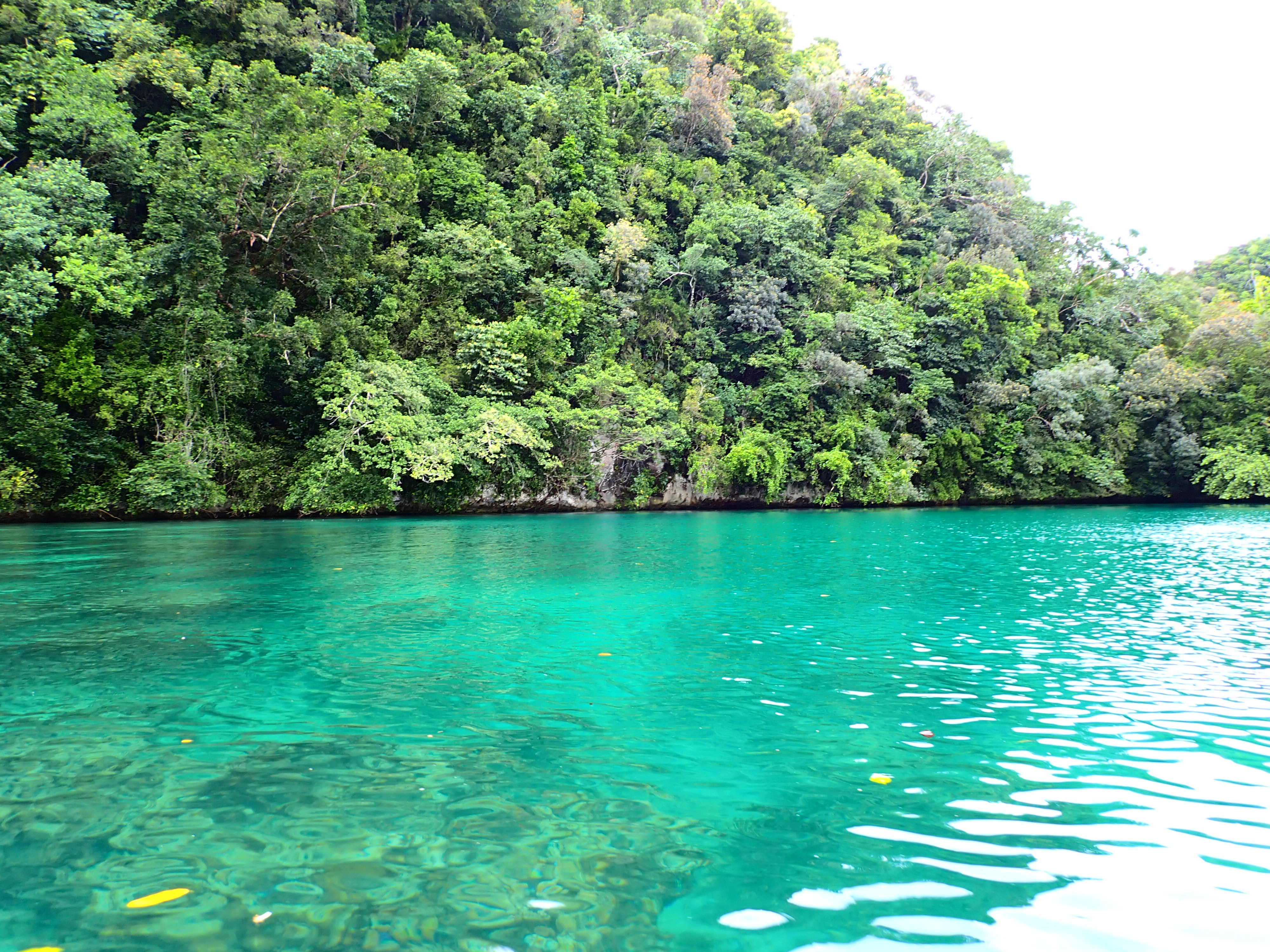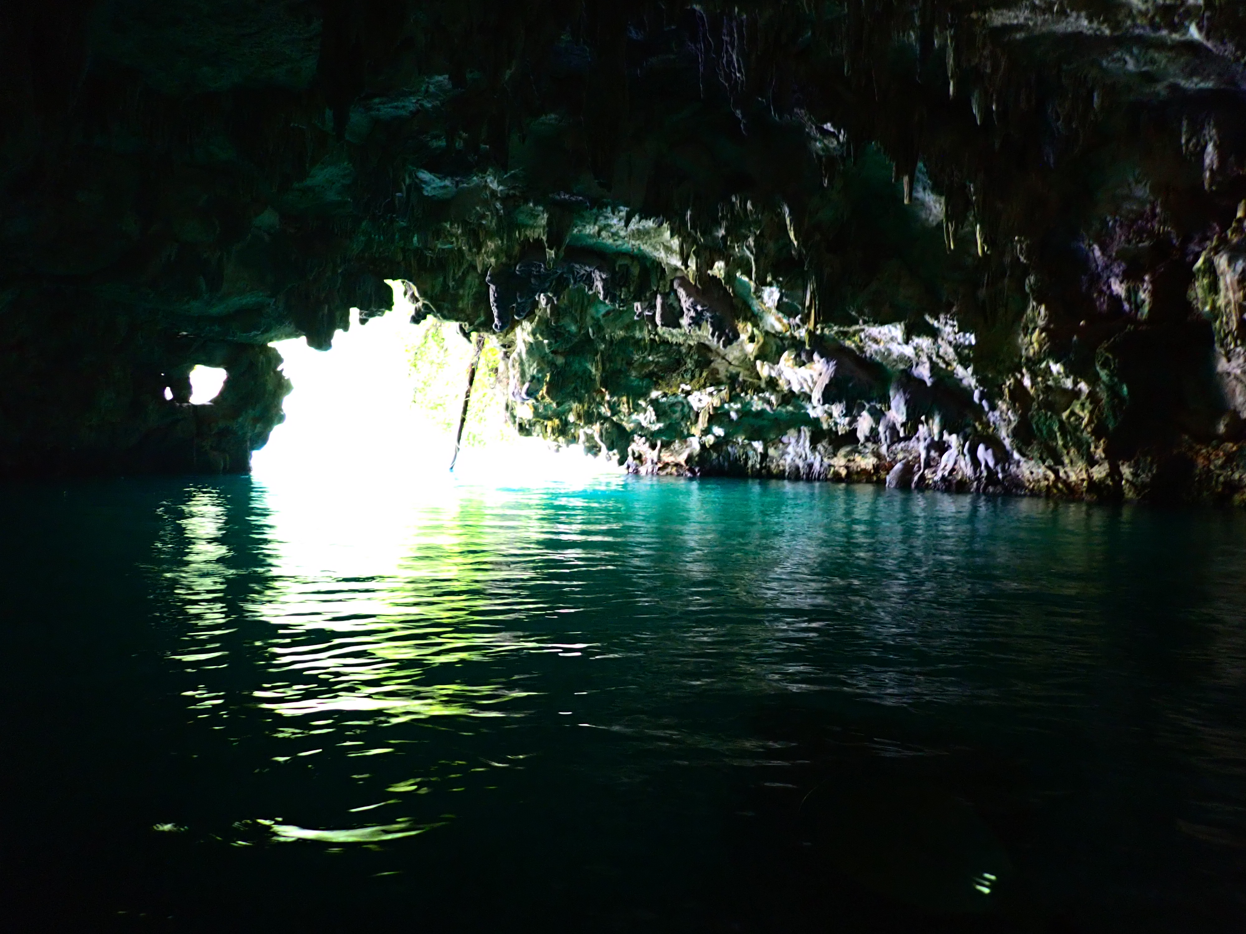 雨も時折降ってきたので、エメラルドケイヴ内で休憩。太陽の光が若干少なかったものの、写真では綺麗なエメラルドグリーンに映えてくれました。シルエットがとても綺麗に映ります。