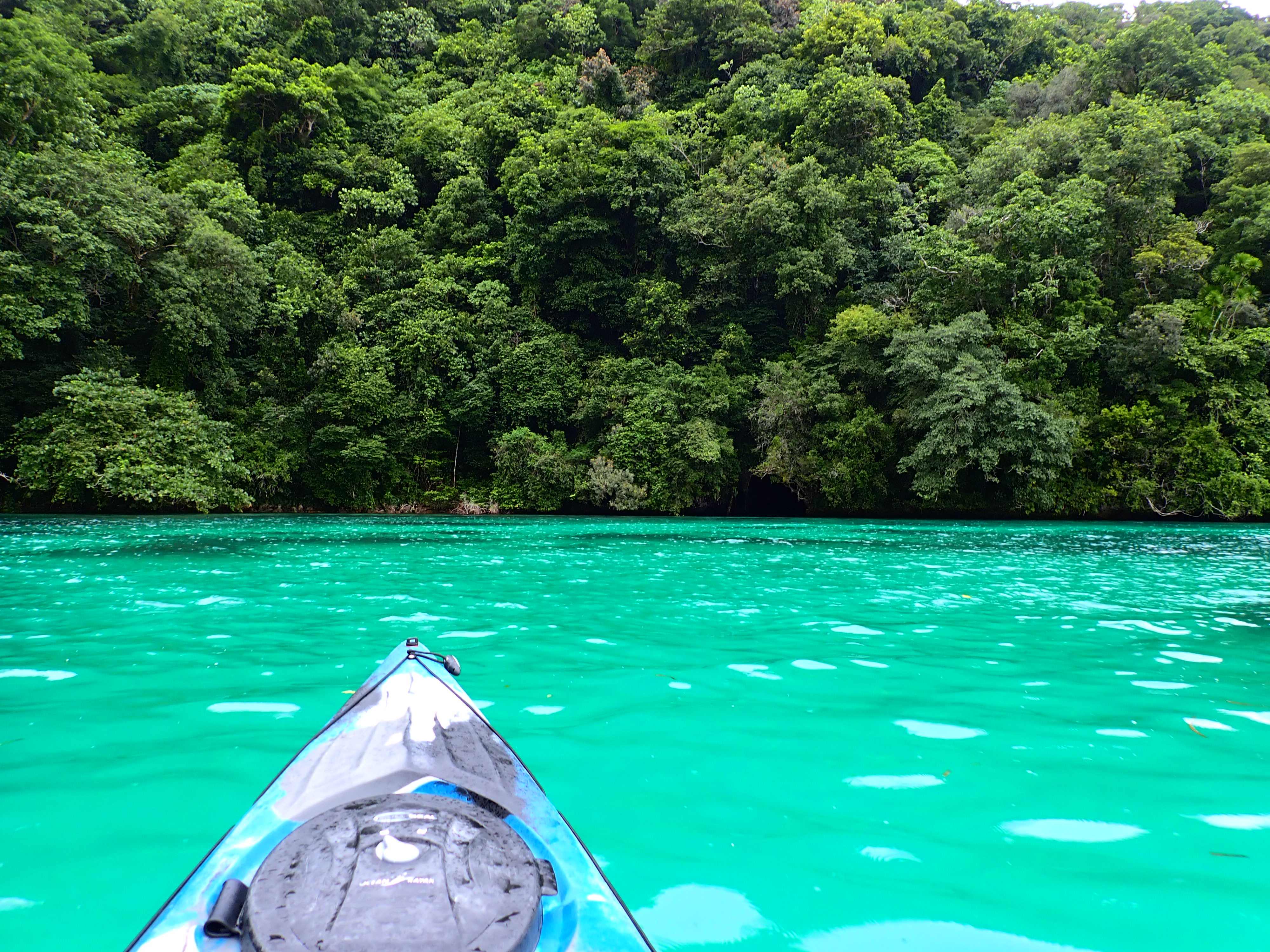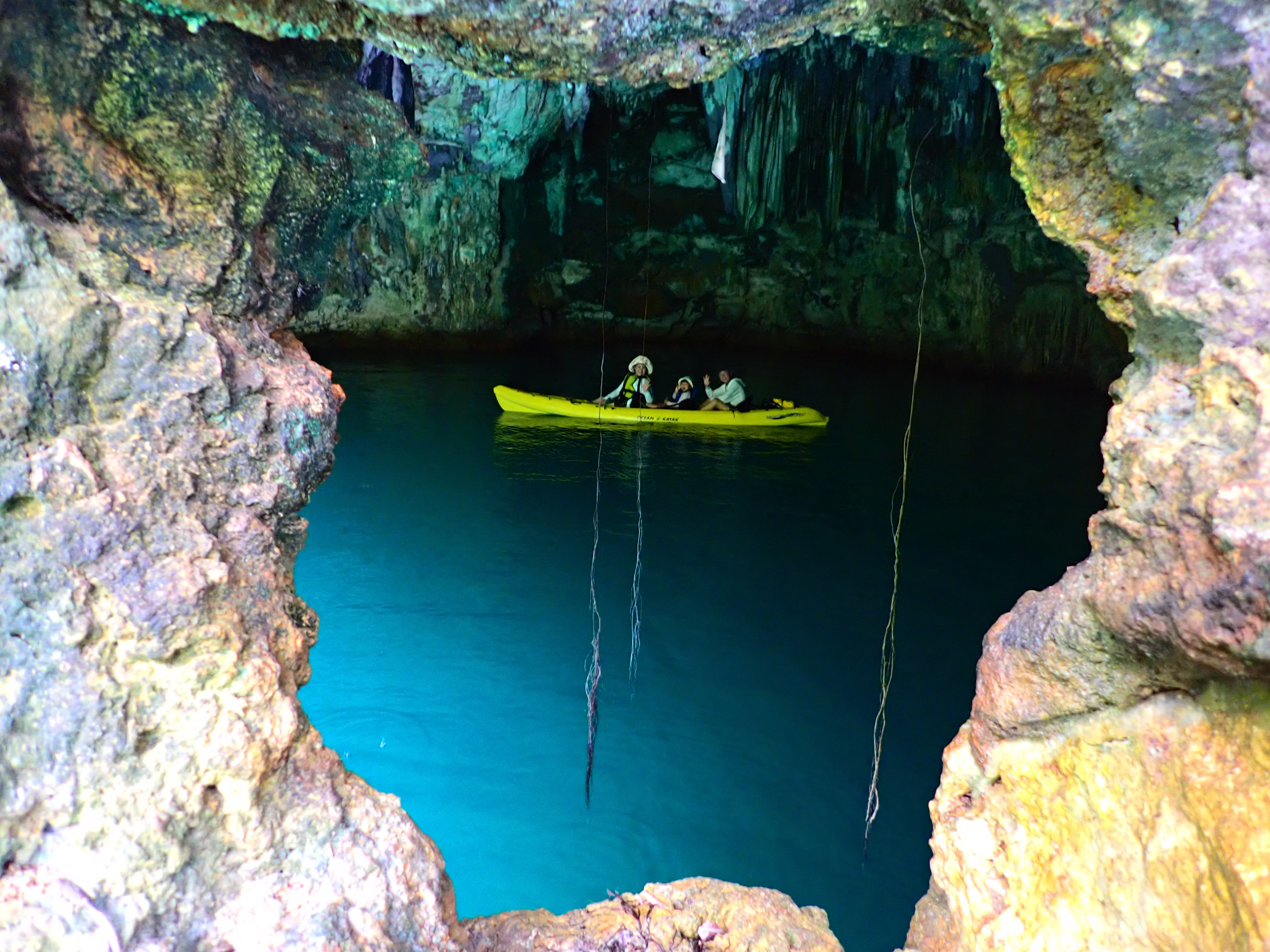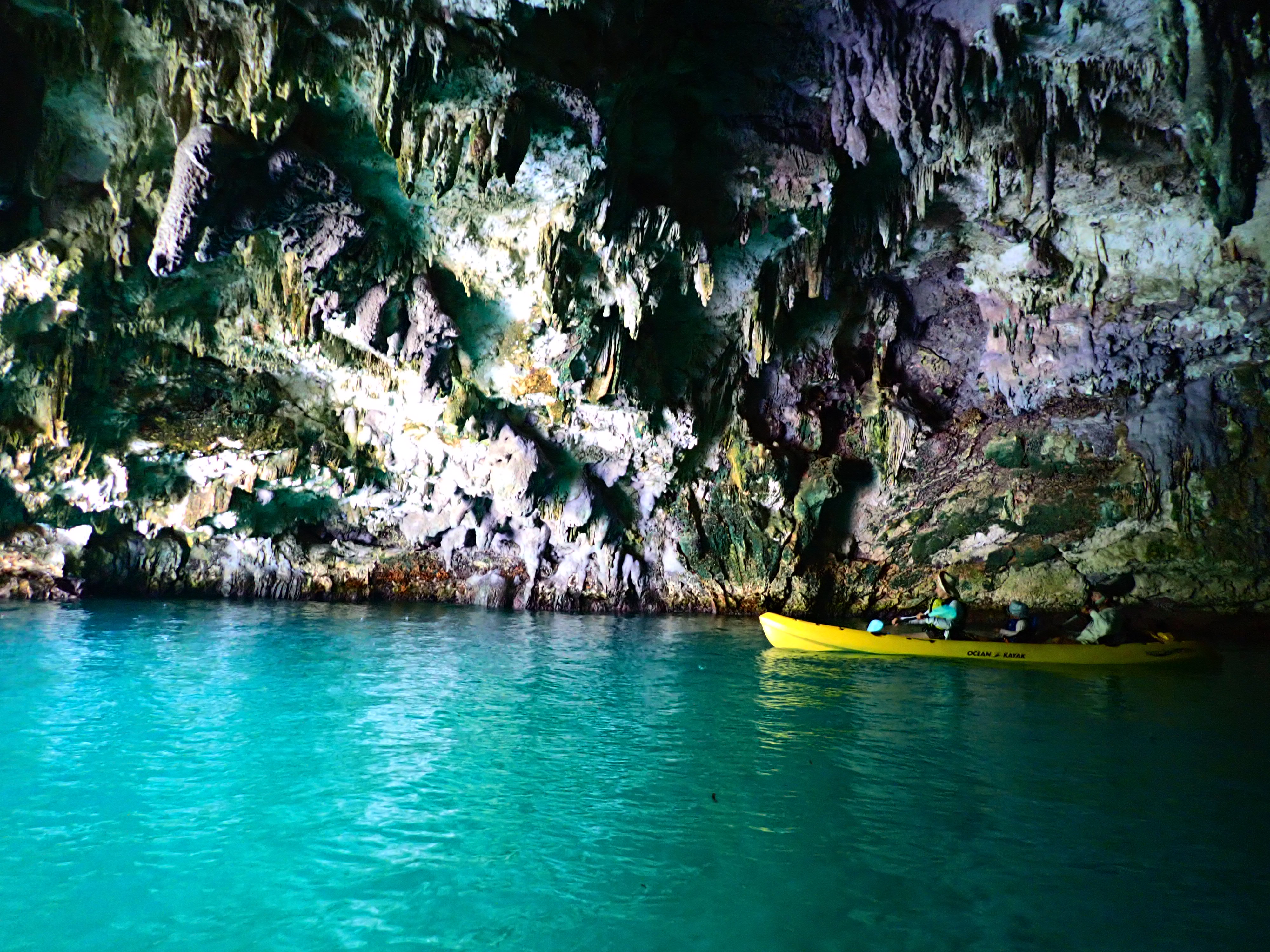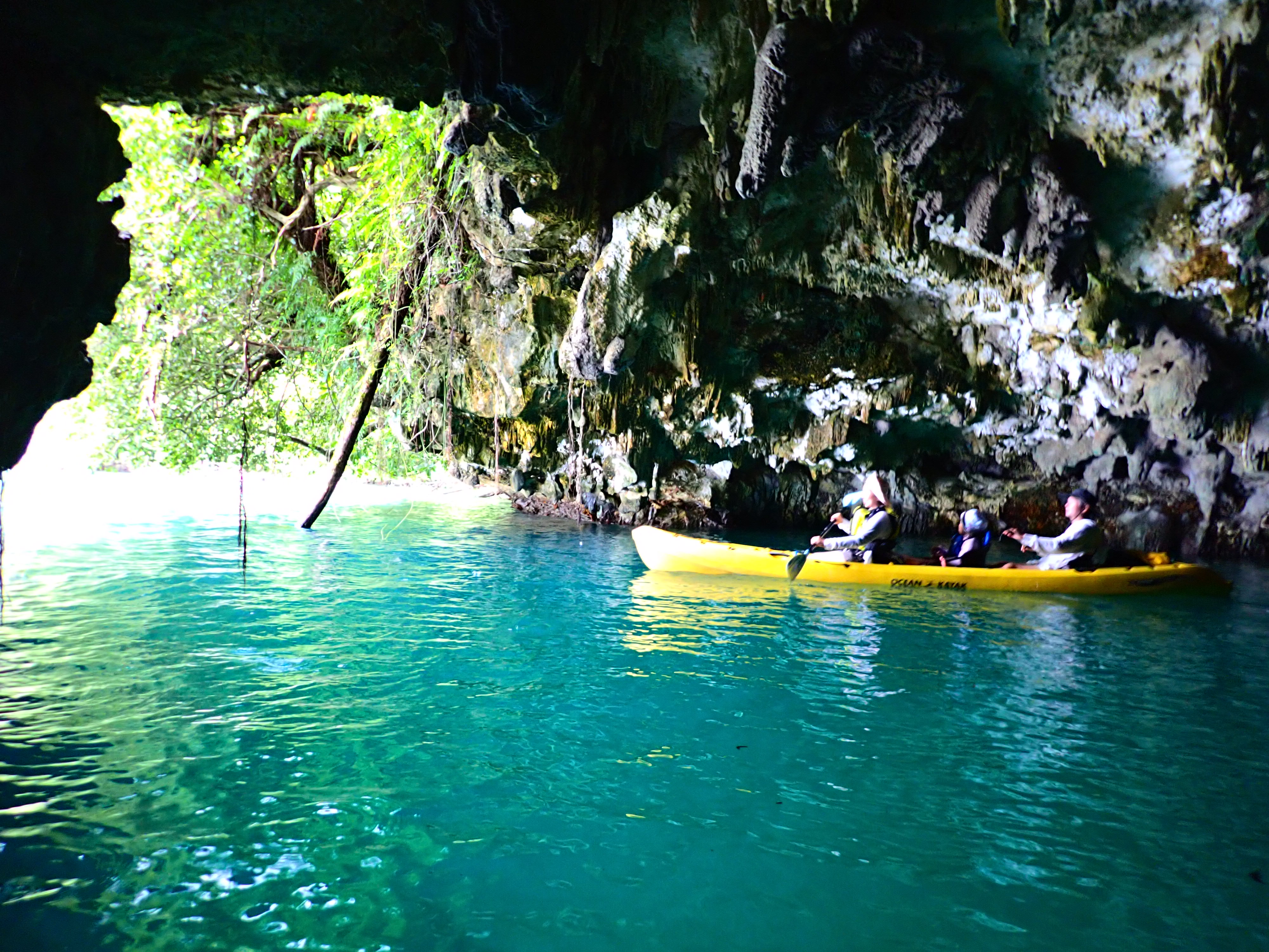 少々風があった為、体力の有るうちにエメラルドケイブを目指しました。漕ぎ続けて焼く30分ほど、ようやく洞窟へ到着です。