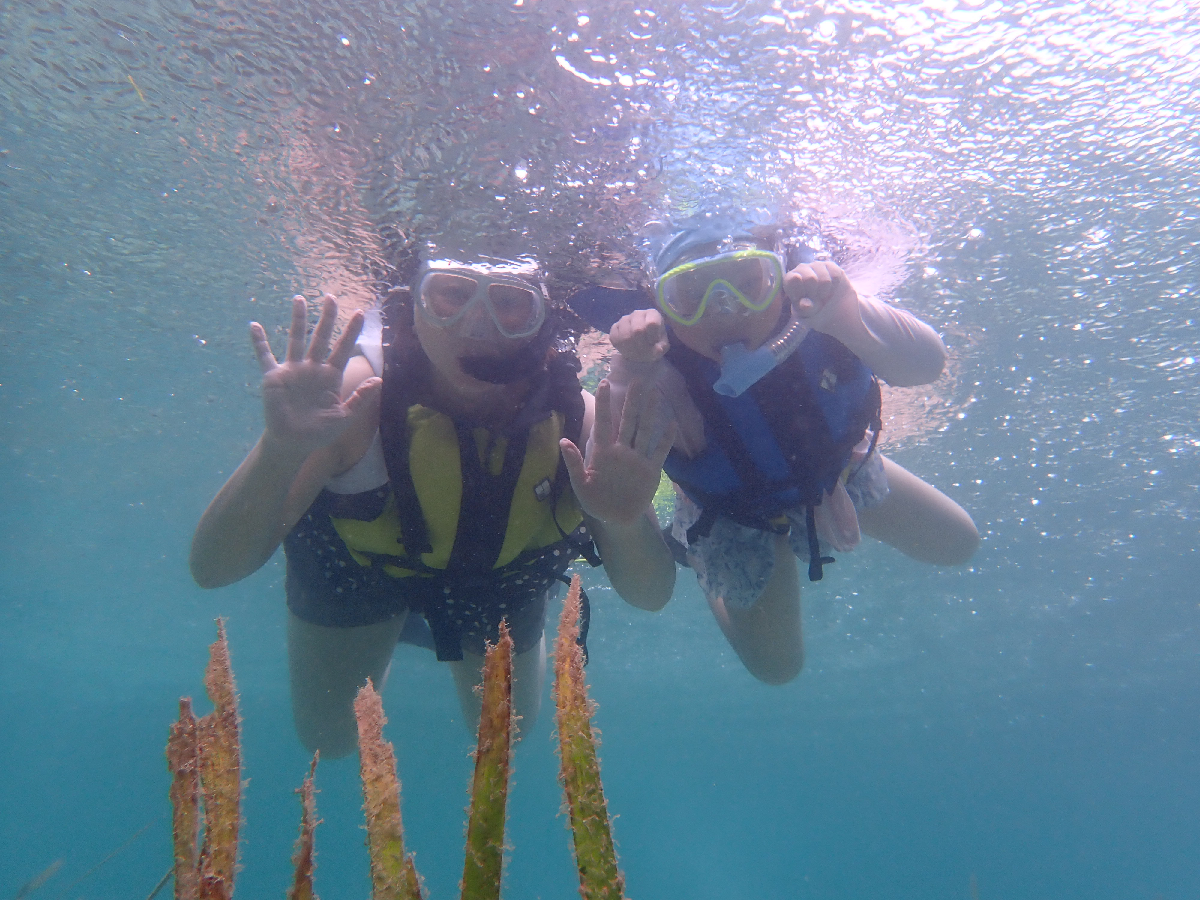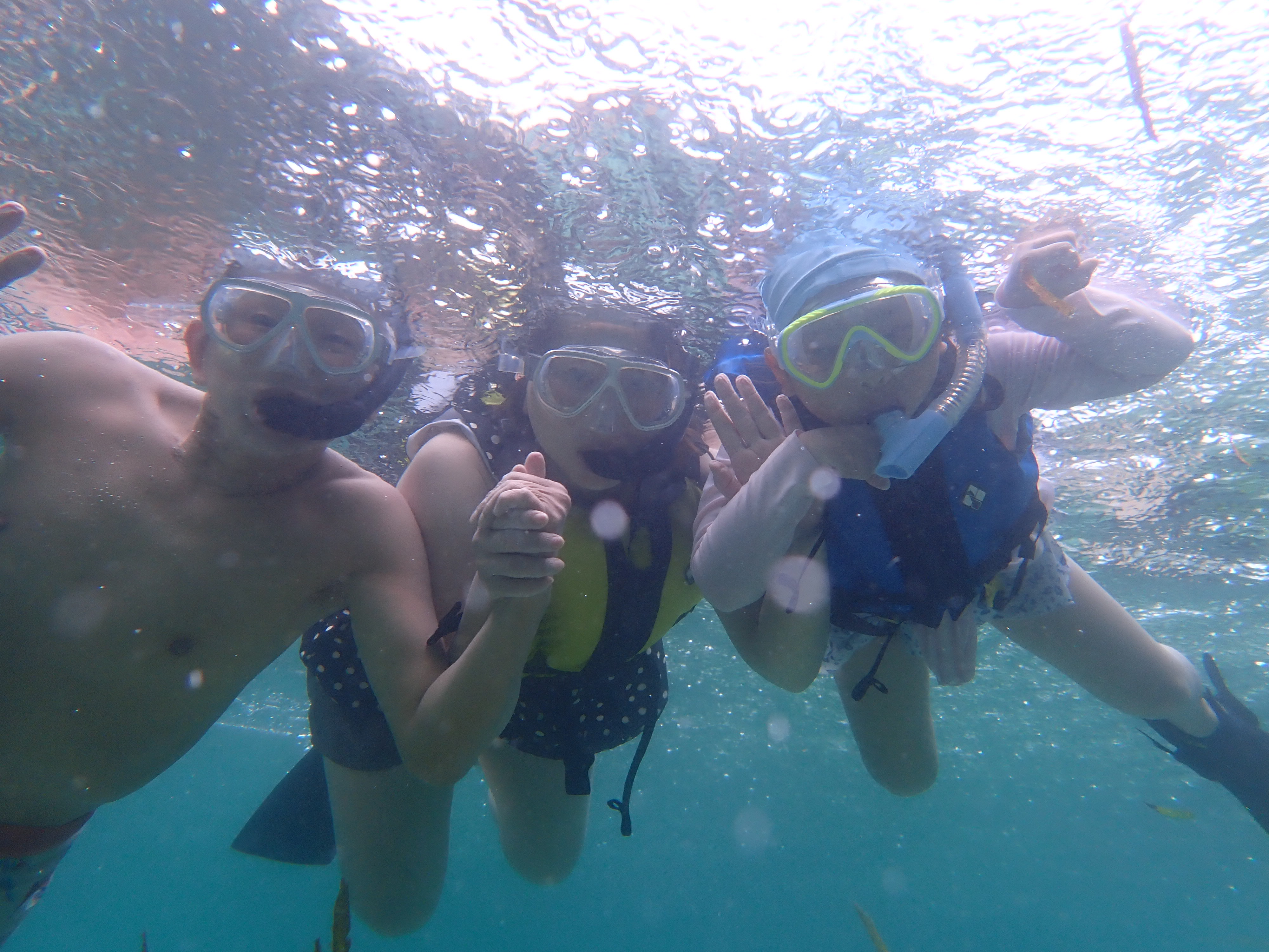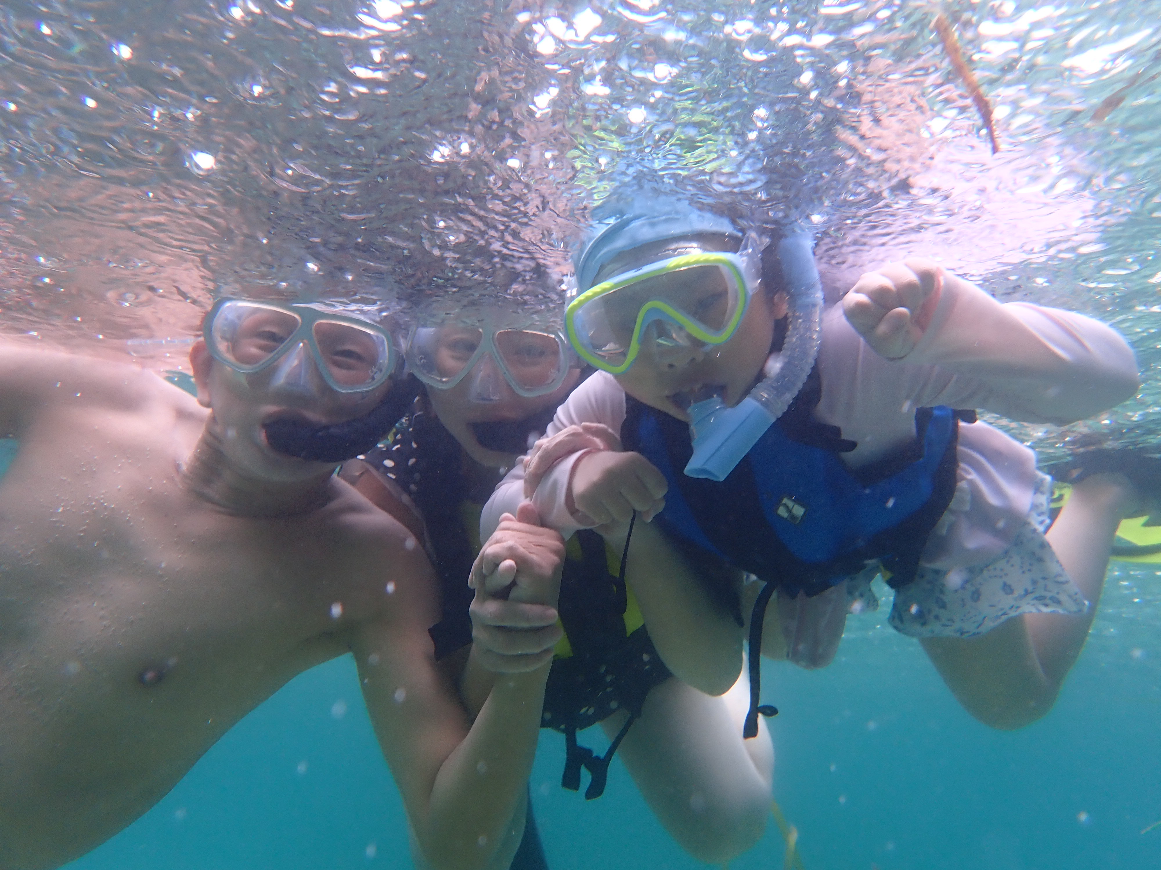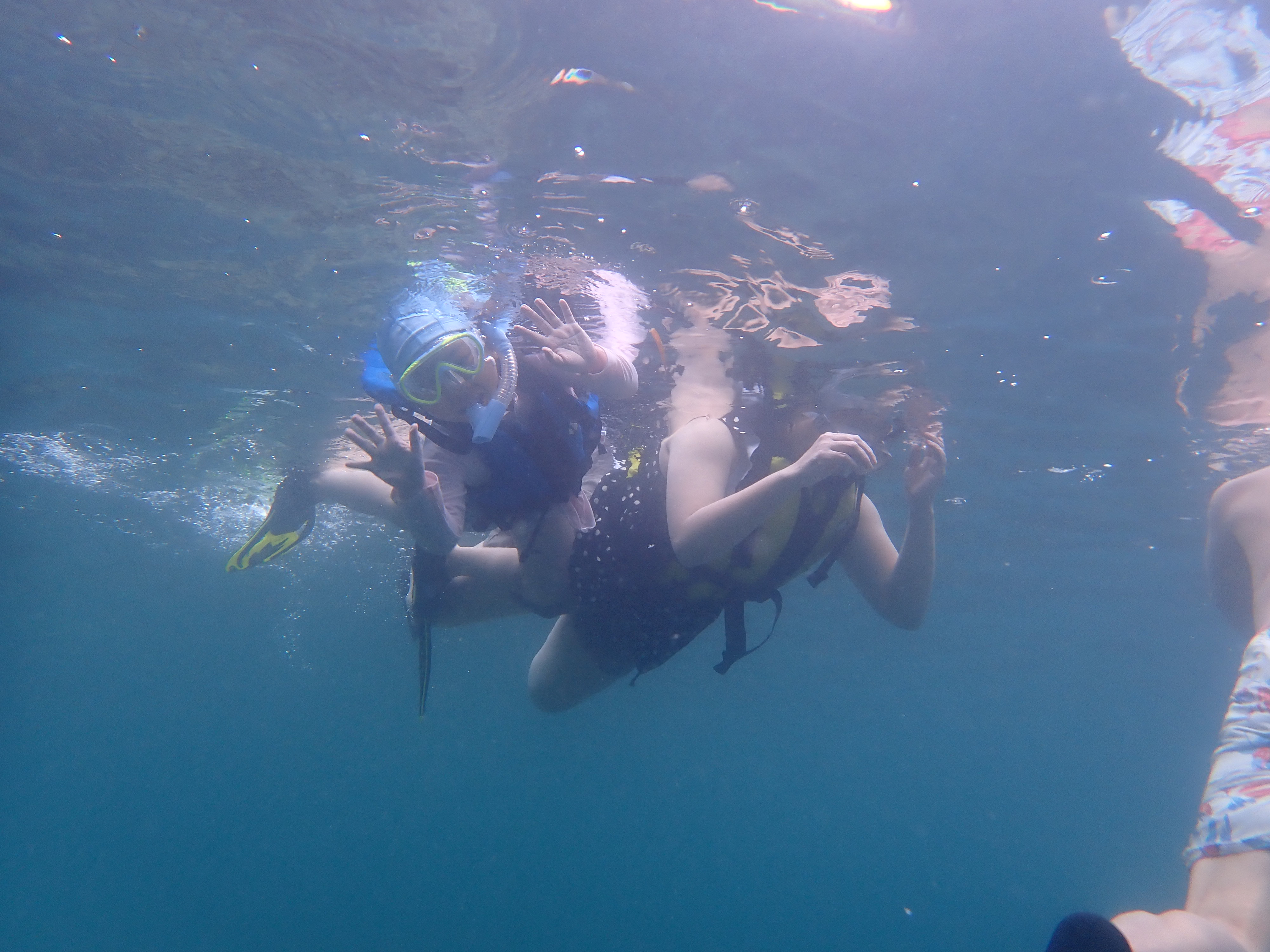 帰り道に穏やかな入江でスノーケルタイム。お子さんはスノーケルマスクは初めてとの事でしたが、好奇心いっぱいですぐに慣れてくれました。パラオ松島は波が無い、海と湖の間のような環境。泳ぎが苦手な方やお子さんがスノーケルにトライするのにぴったりのスポットです。