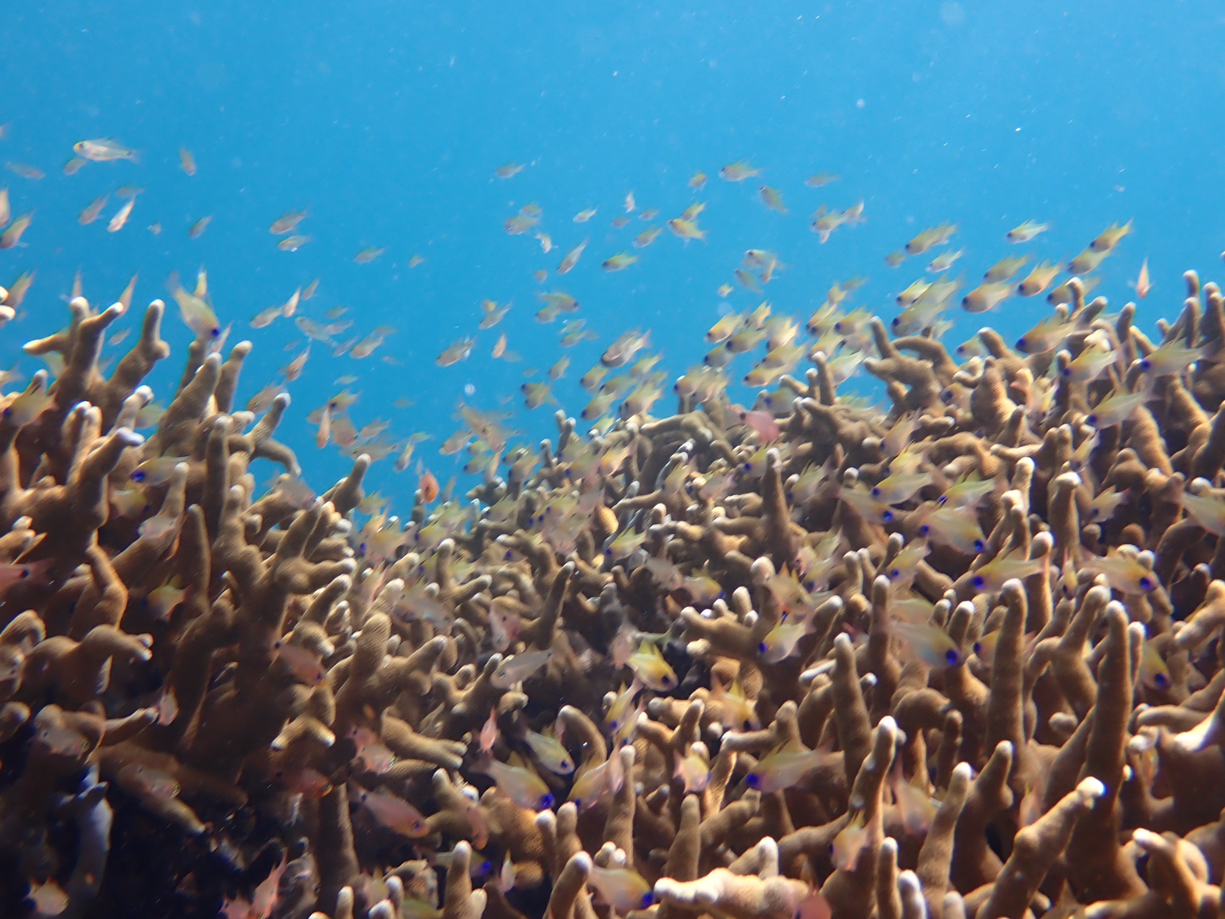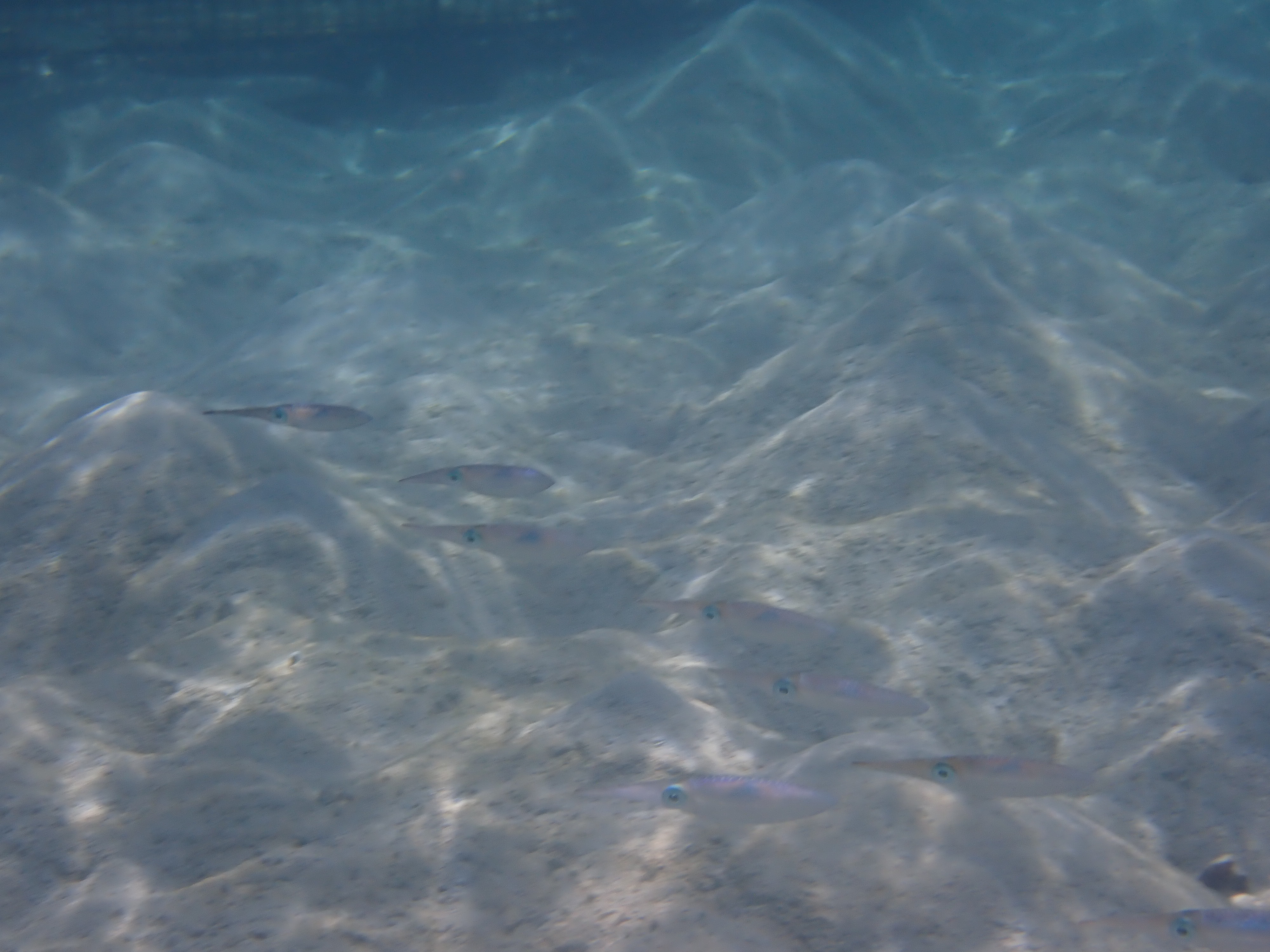 シャコガイファームの近くをよく見ると小さなアオリイカの群れも元気に泳いでいました。