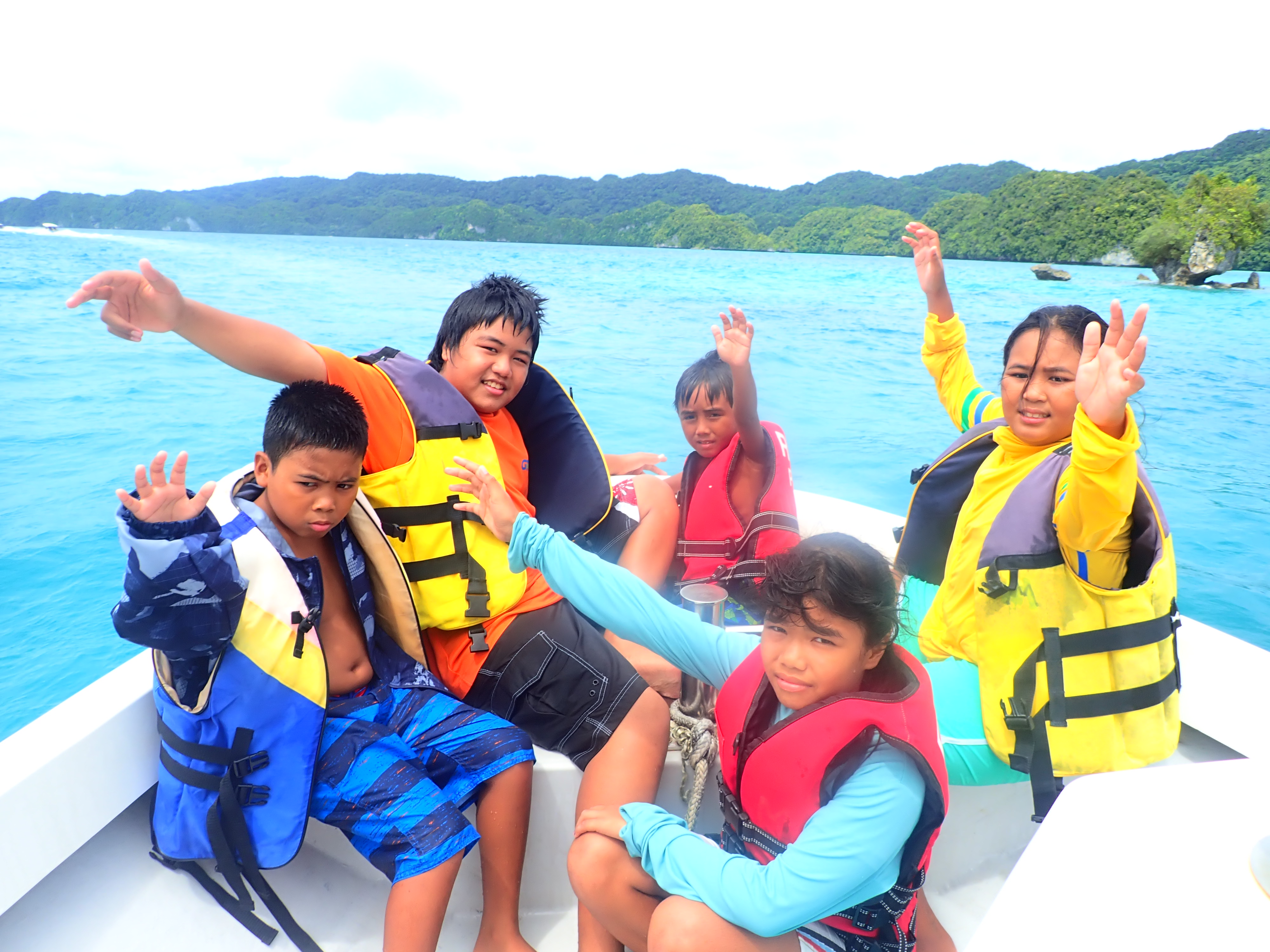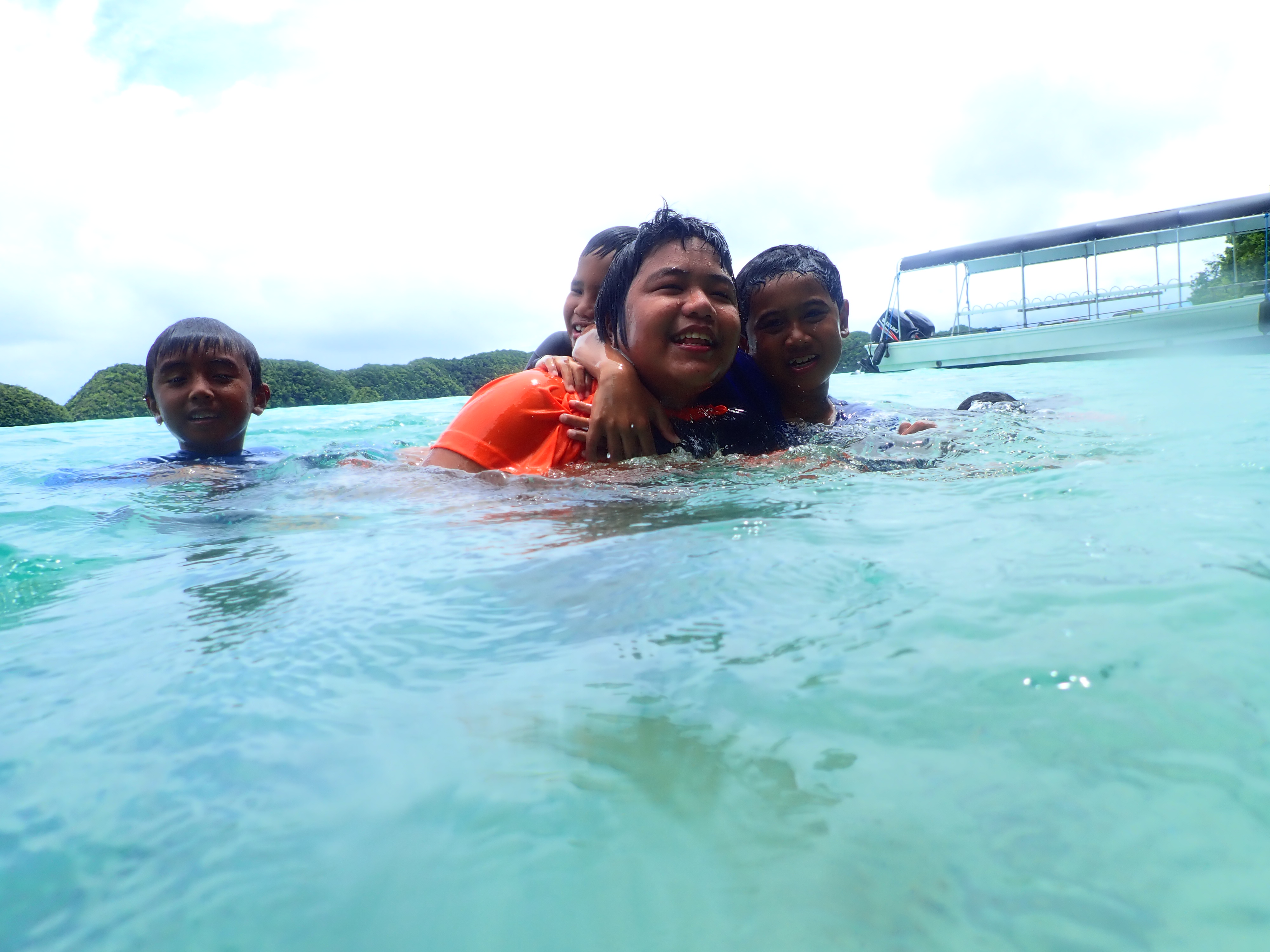 パラオ在住者、総勢80名でロックアイランドへピクニック。天気は朝方は不安な雲行きでしたが、徐々に良くなってきました。久しぶりのロックアイランドのボートクルーズはやはり気持ちの良いものです。