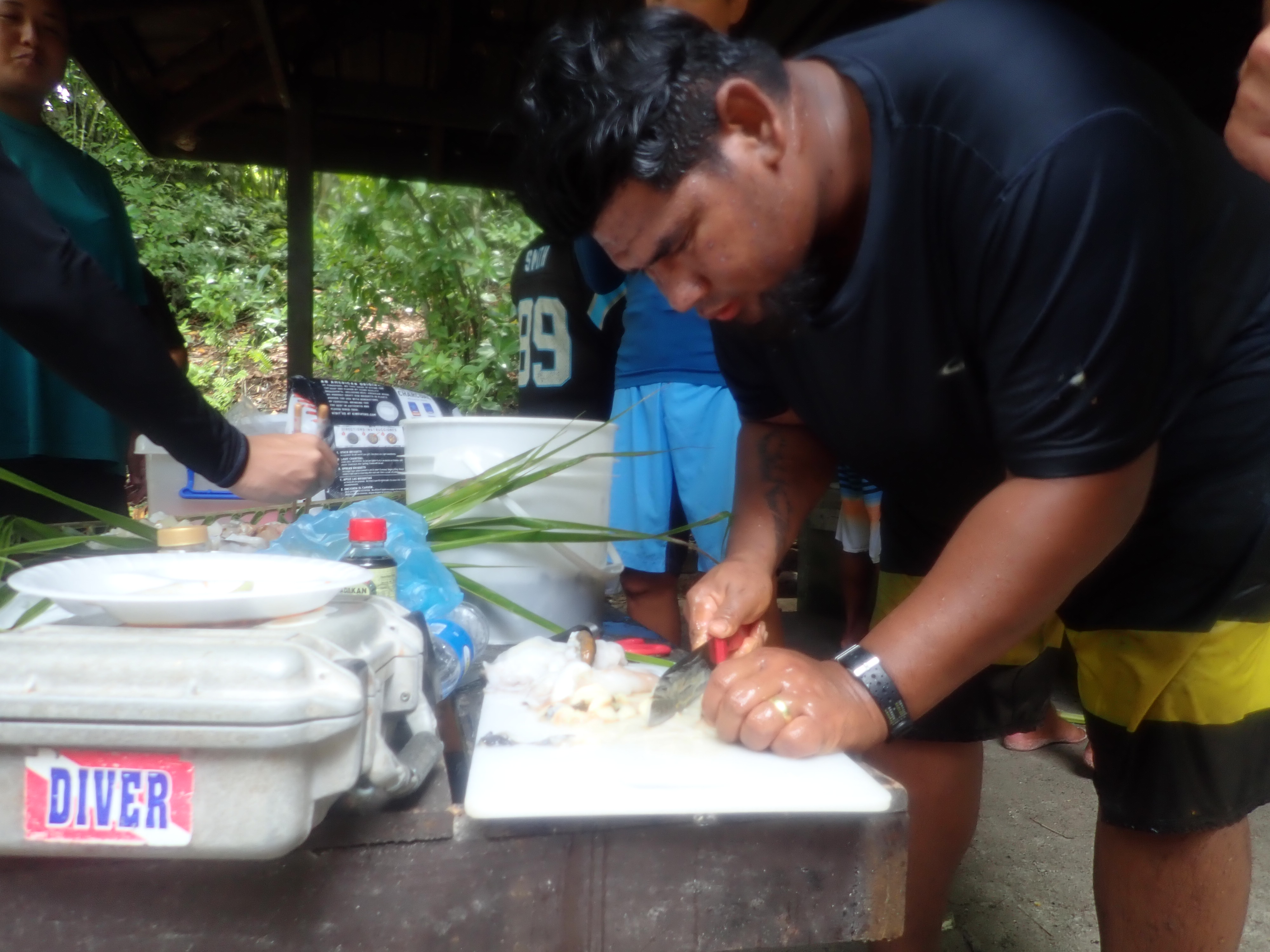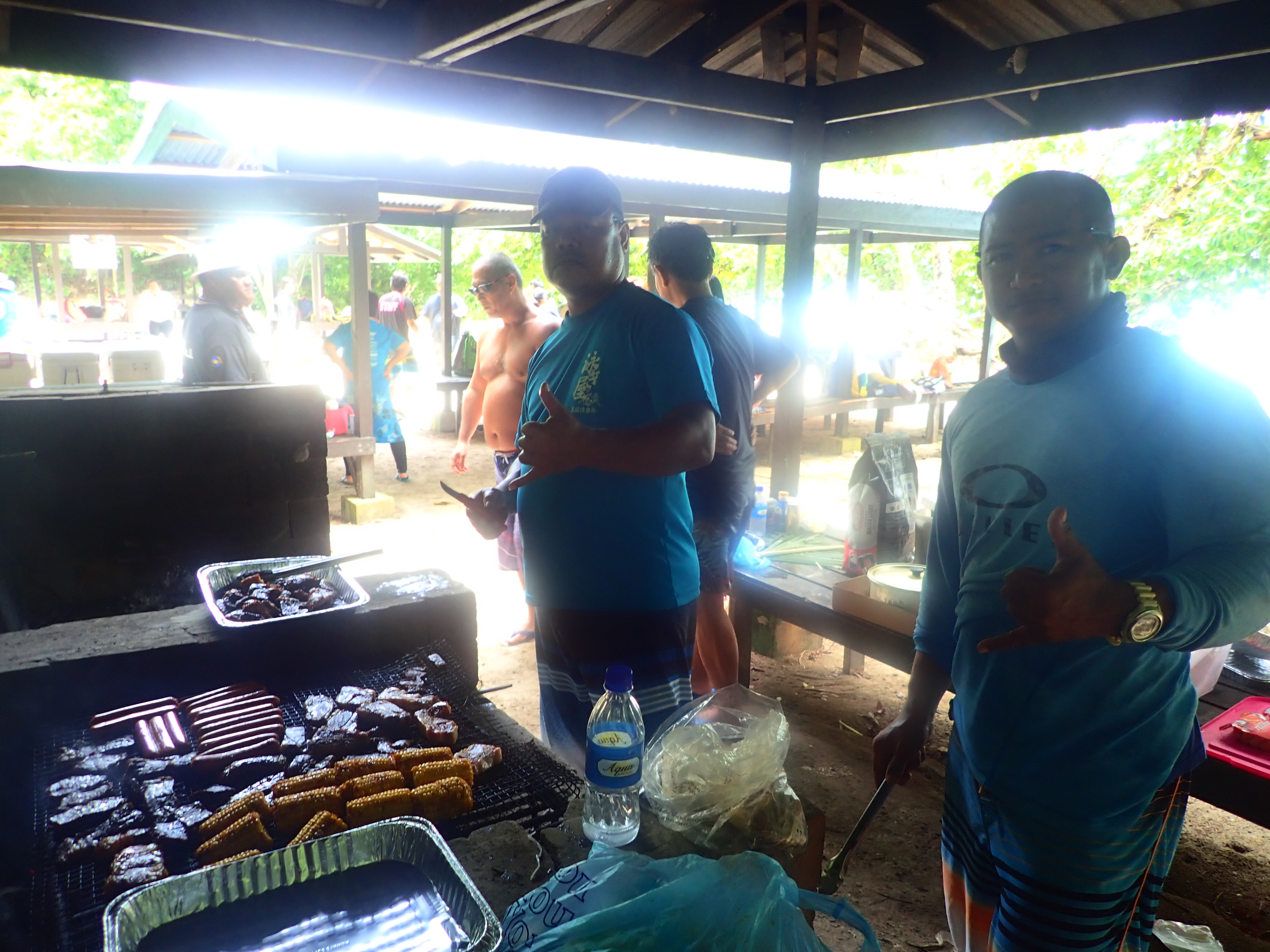ボートオペレータ―のパラオの父達が美味しいBBQを作ってくれました。加えてレストラン・トリトリのケータリングフード、皆様お腹いっぱい食べて、食後ものんびり。子供たちは終始元気で海で遊びっぱなし。パラオ育ちのお子さん方はタフな子ばかりです。