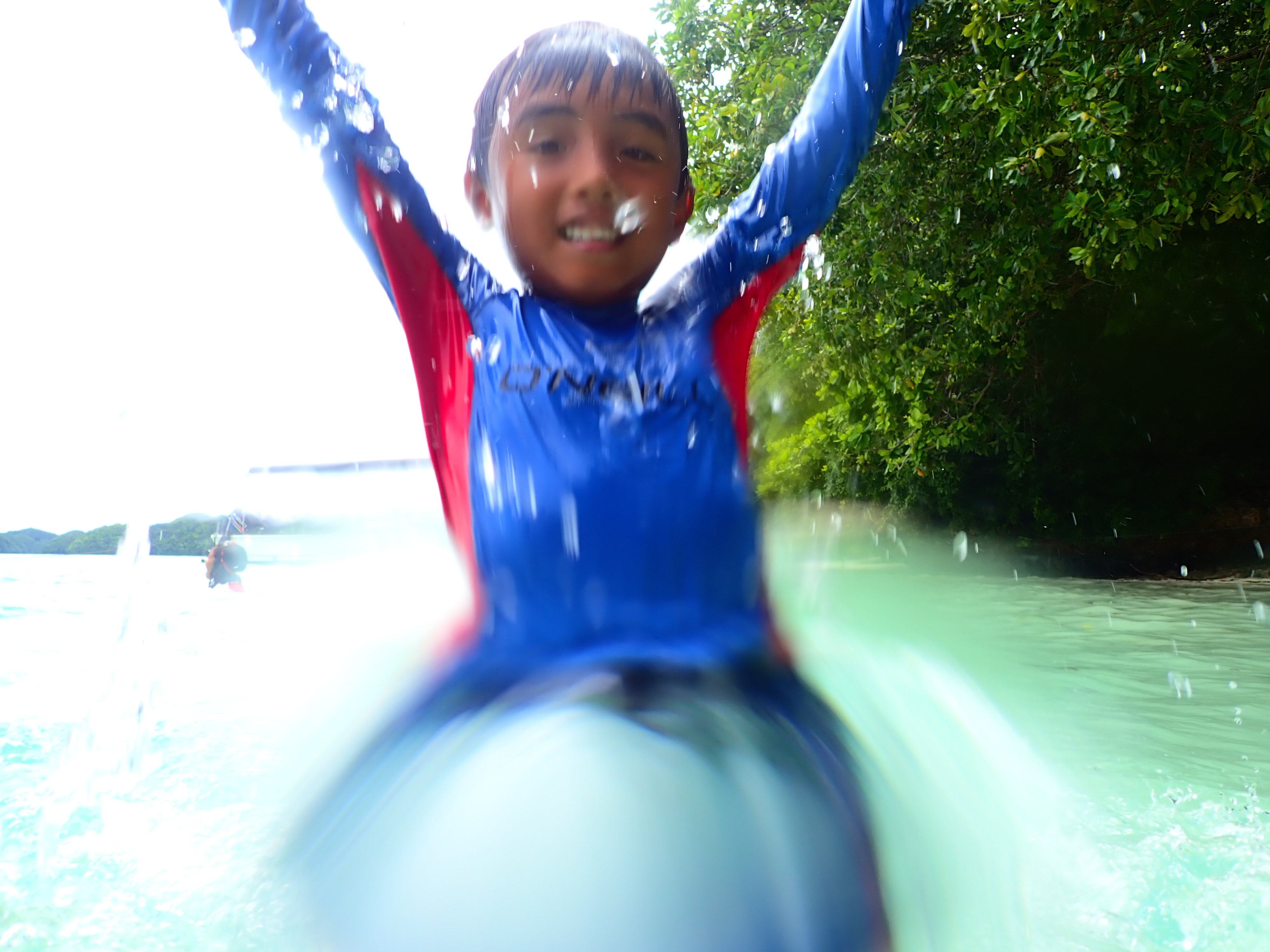 心配だった天気も晴れ間が出て、気づけば日焼けするほど。普段カヤックでばかり海に出ているので、ボートの和気あいあいとした大人数の遊びが新鮮な体験となりました。