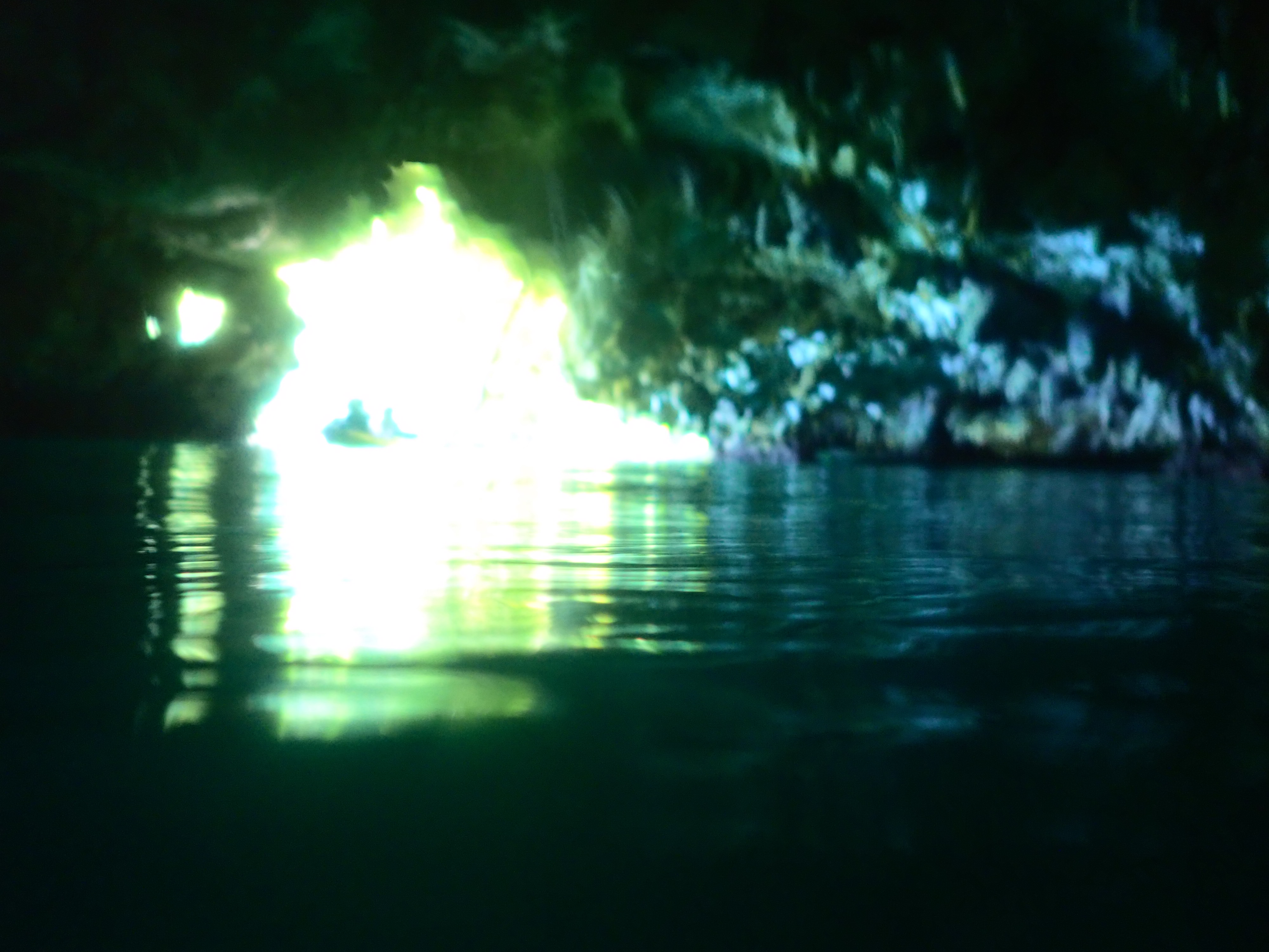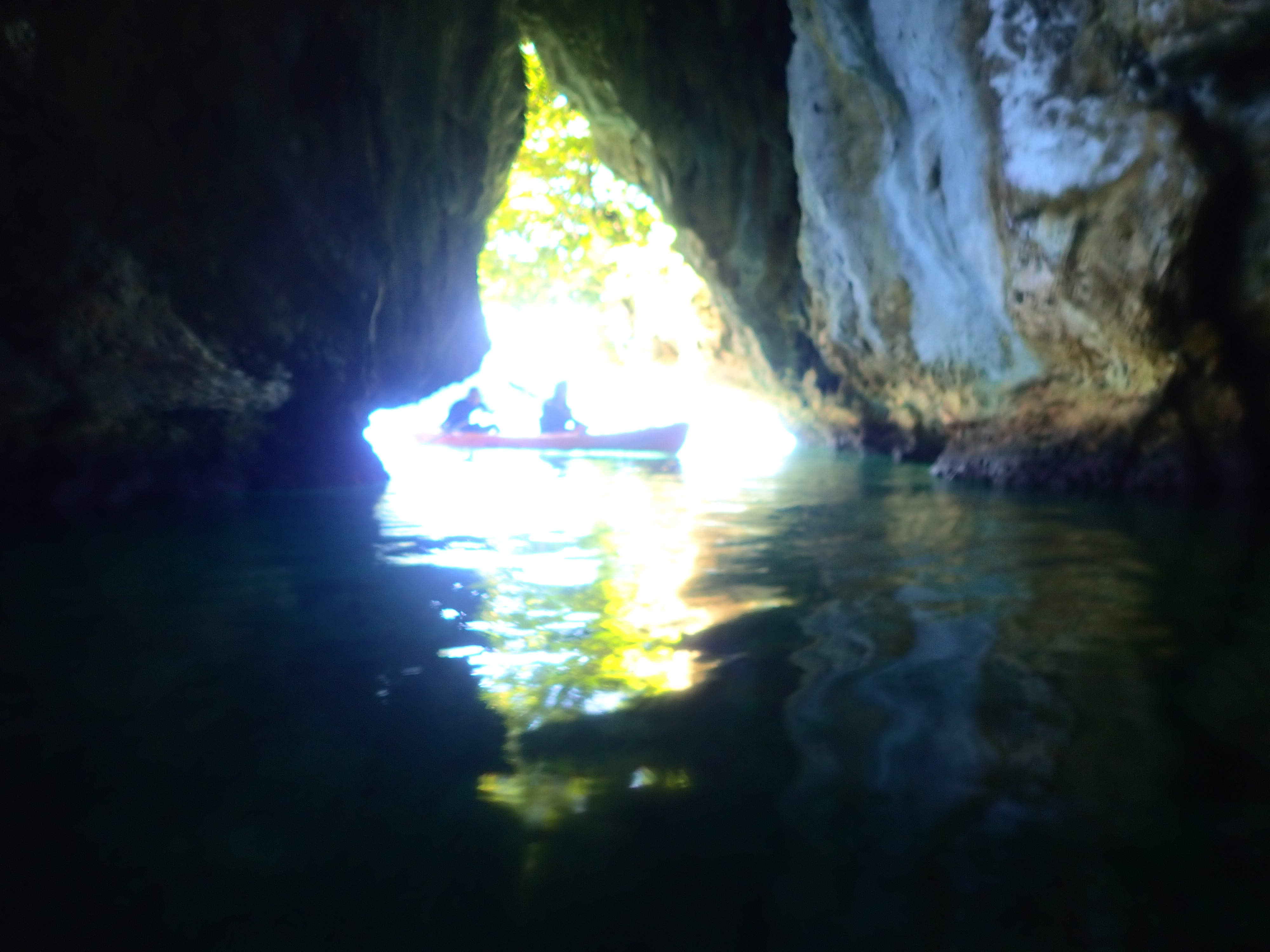 午後はカヤックで入れる洞窟や無人島に上陸して洞窟散策を楽しみました。洞窟内では鍾乳石も見る事が出来、悠久の自然を感じ、探検気分を楽しめるのもパラオ松島の魅力です。