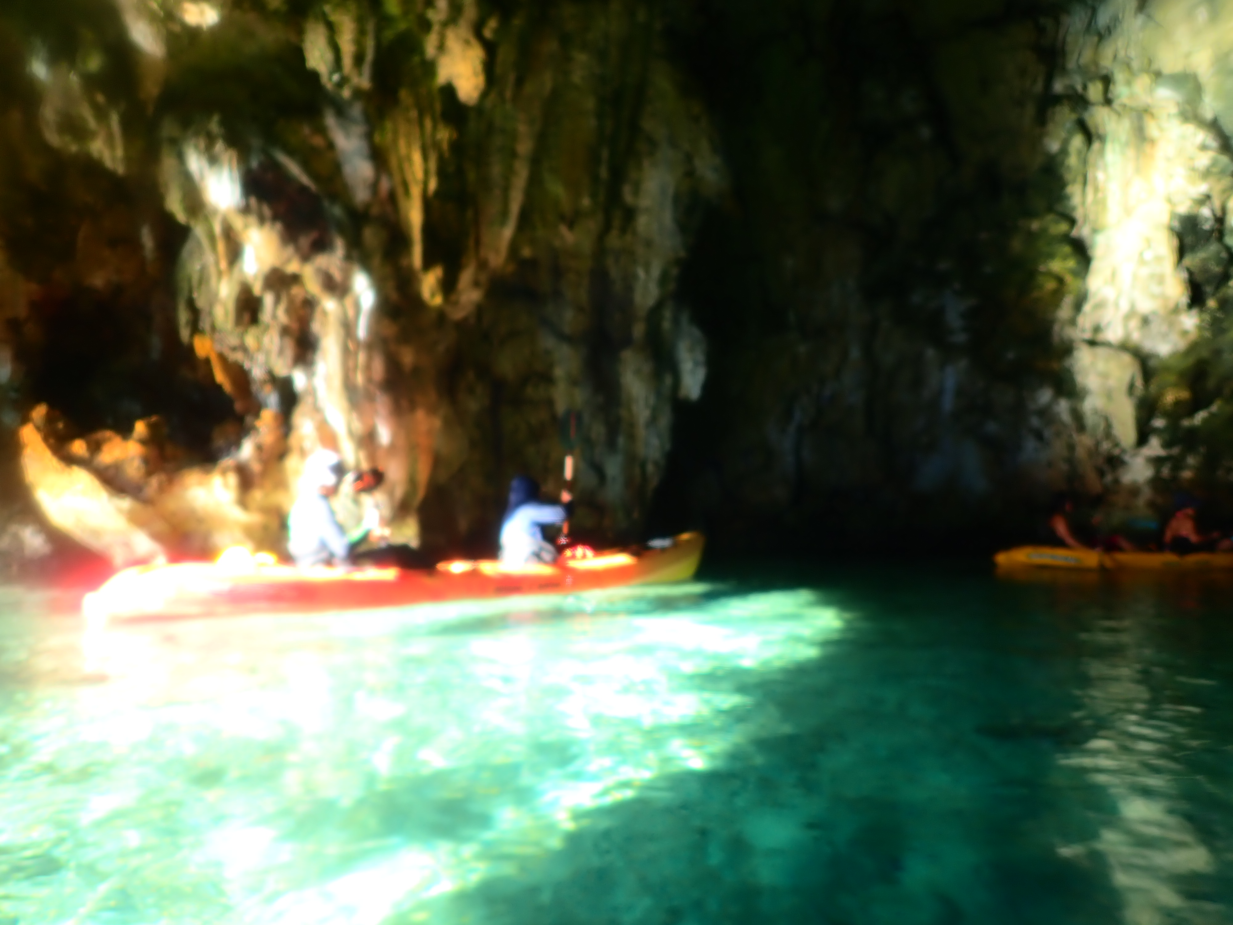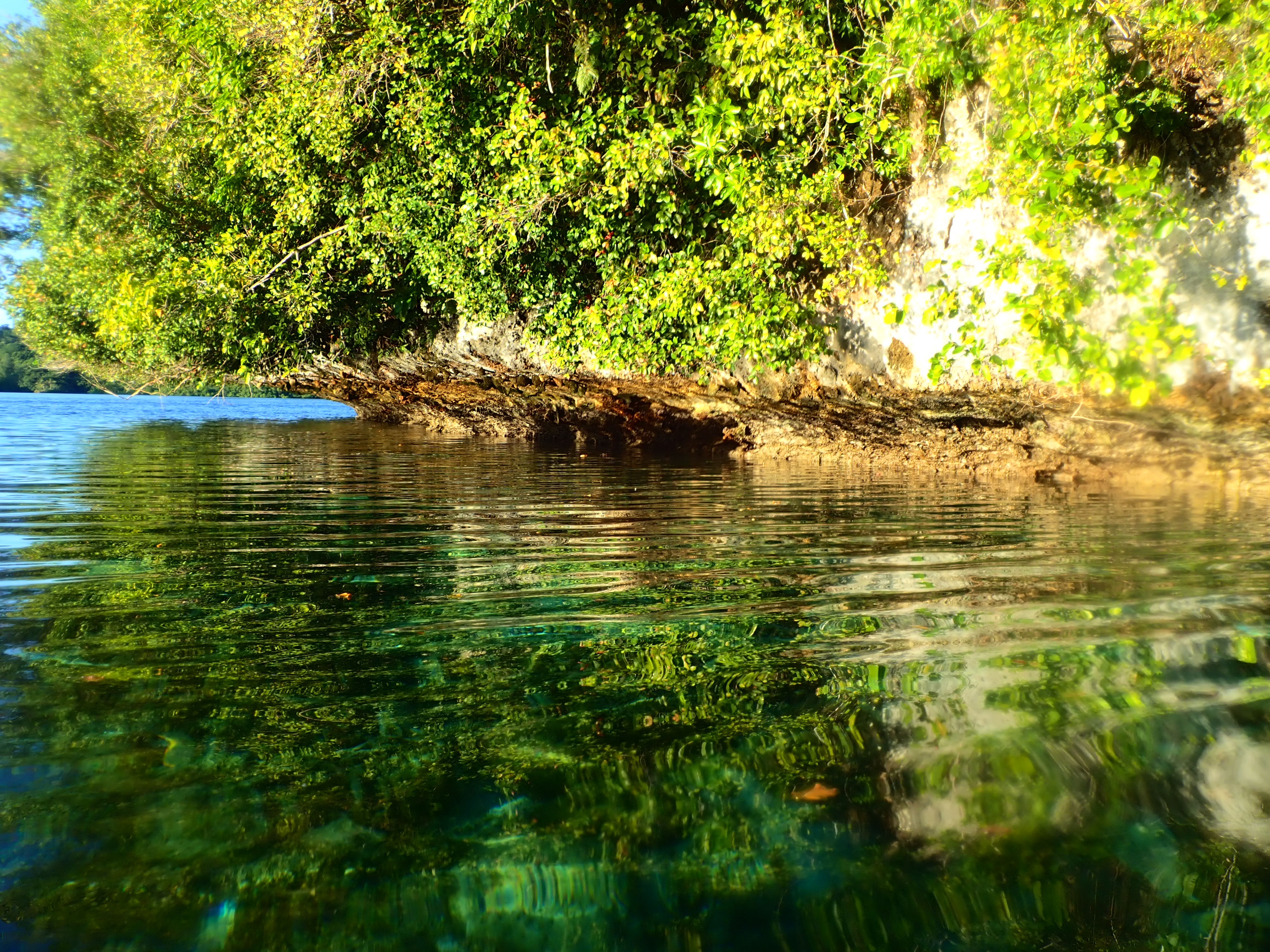 スノーケルでは派手さは無いものの海と湖の間という特殊な水中世界を楽しめます。数ある洞窟を巡るのも楽しい一時です。