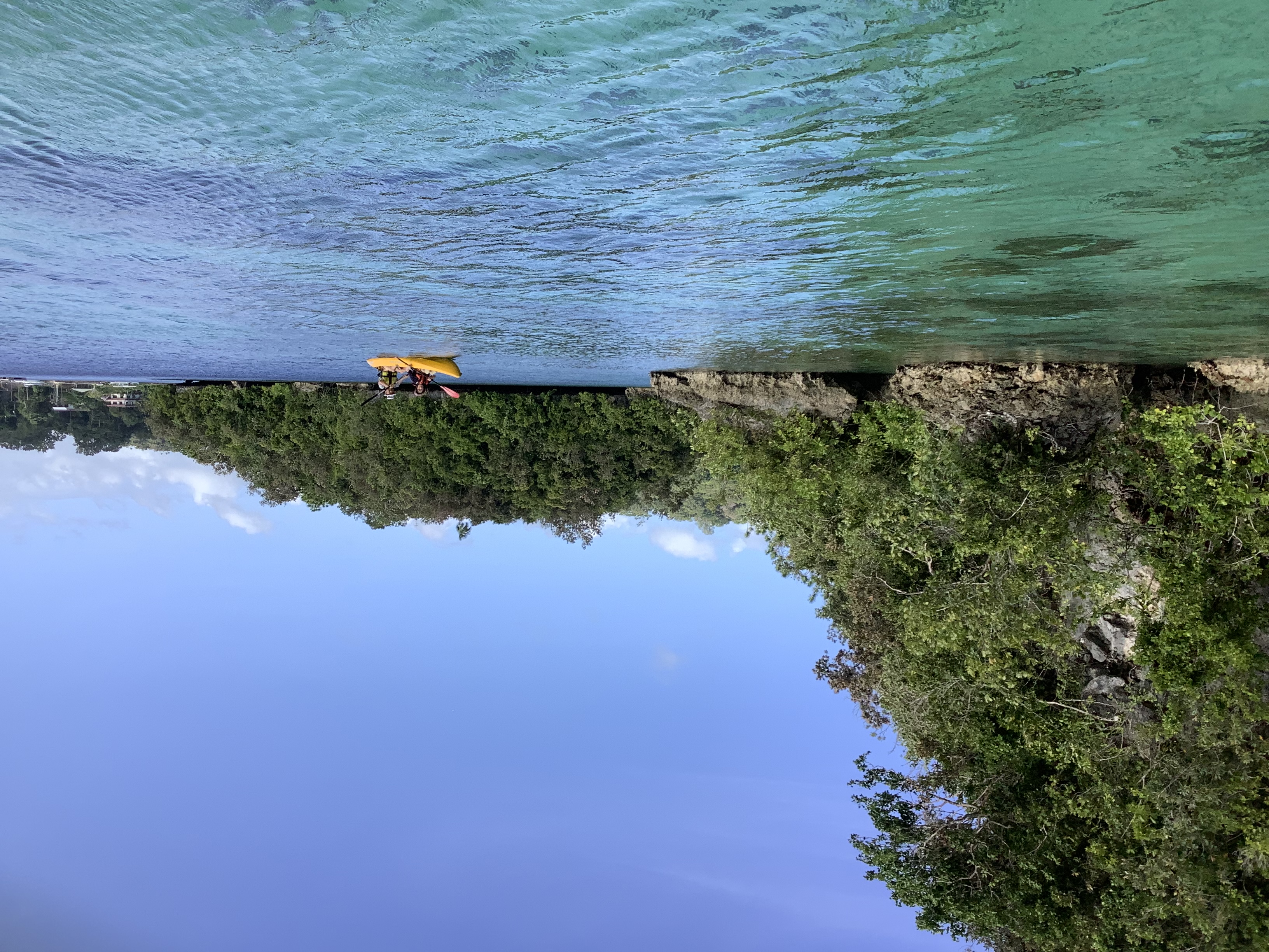 天気も良くパラオらしい青空が広がるカヤック日和。港でパドリングのレクチャーを終えて、いよいよ出艇。今日のゲストは教えた事をすんなりこなしていた為、とてもスムーズな漕ぎ出しでした。