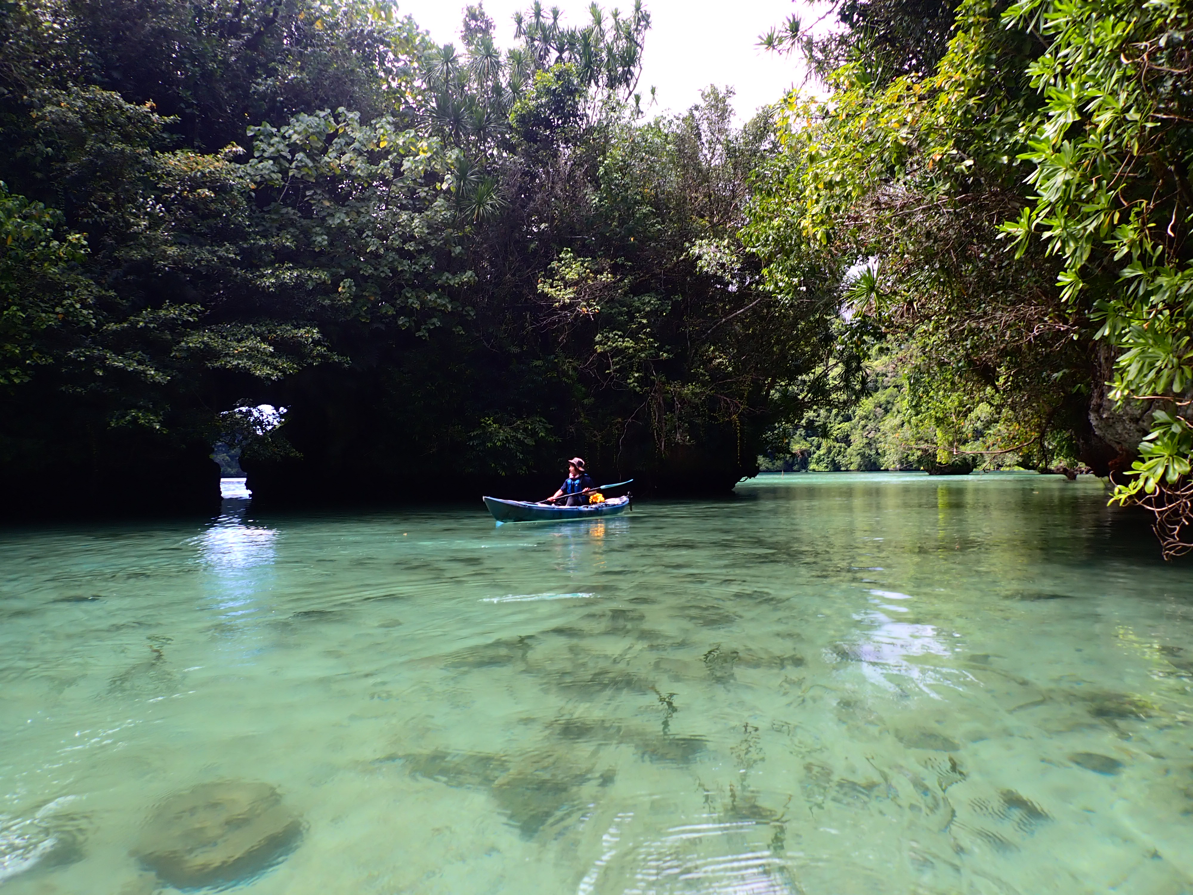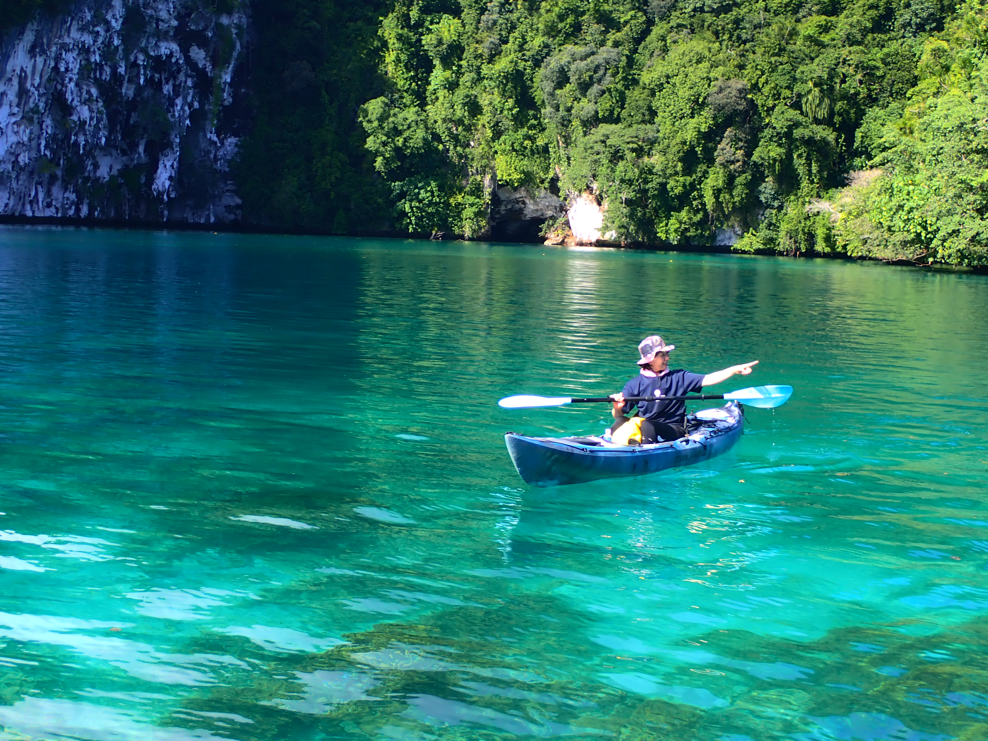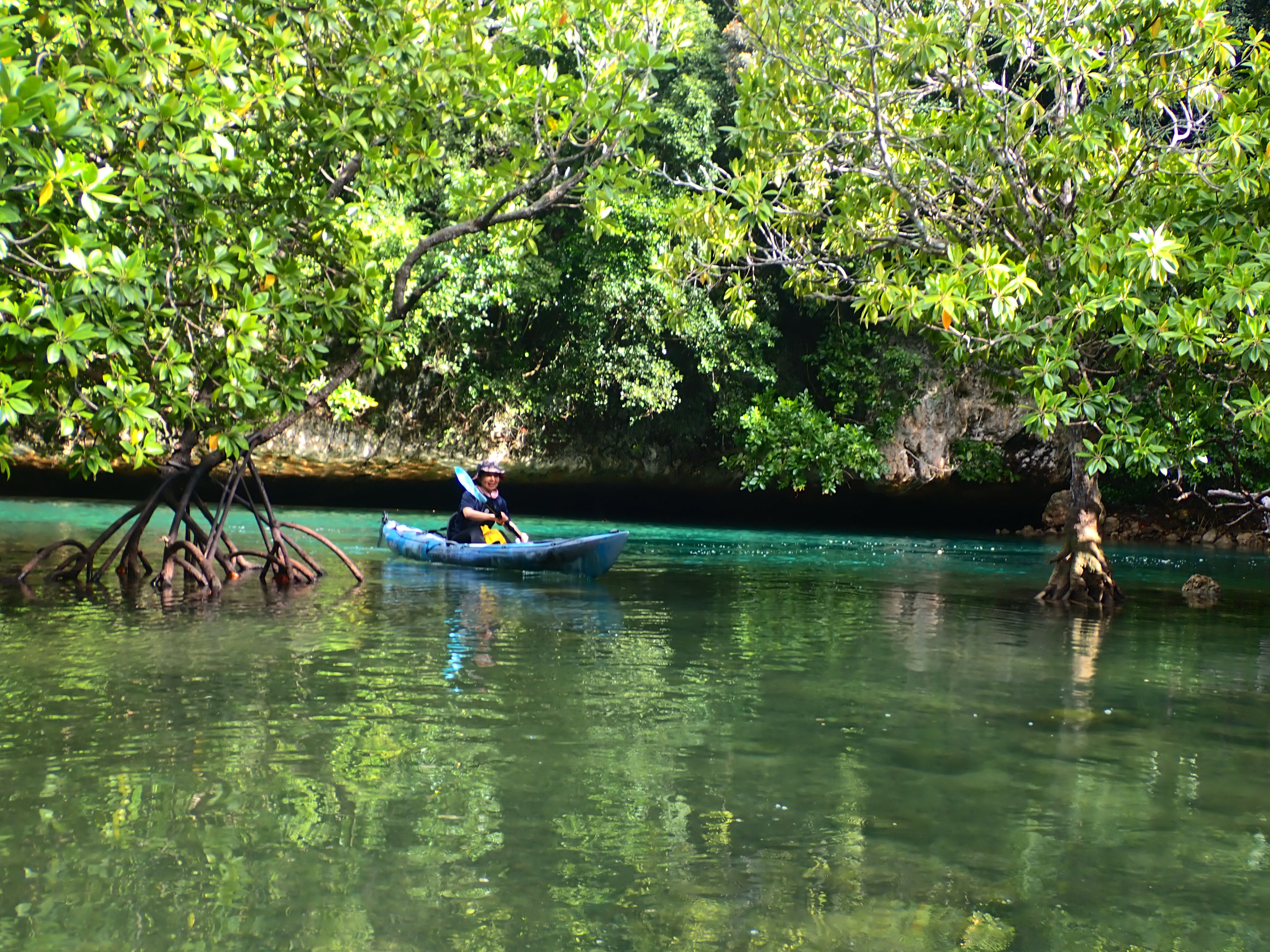 青の洞窟を後にし、港に向かって漕ぎ出します。天気が良いと、どこに行ってもパラオは綺麗です。