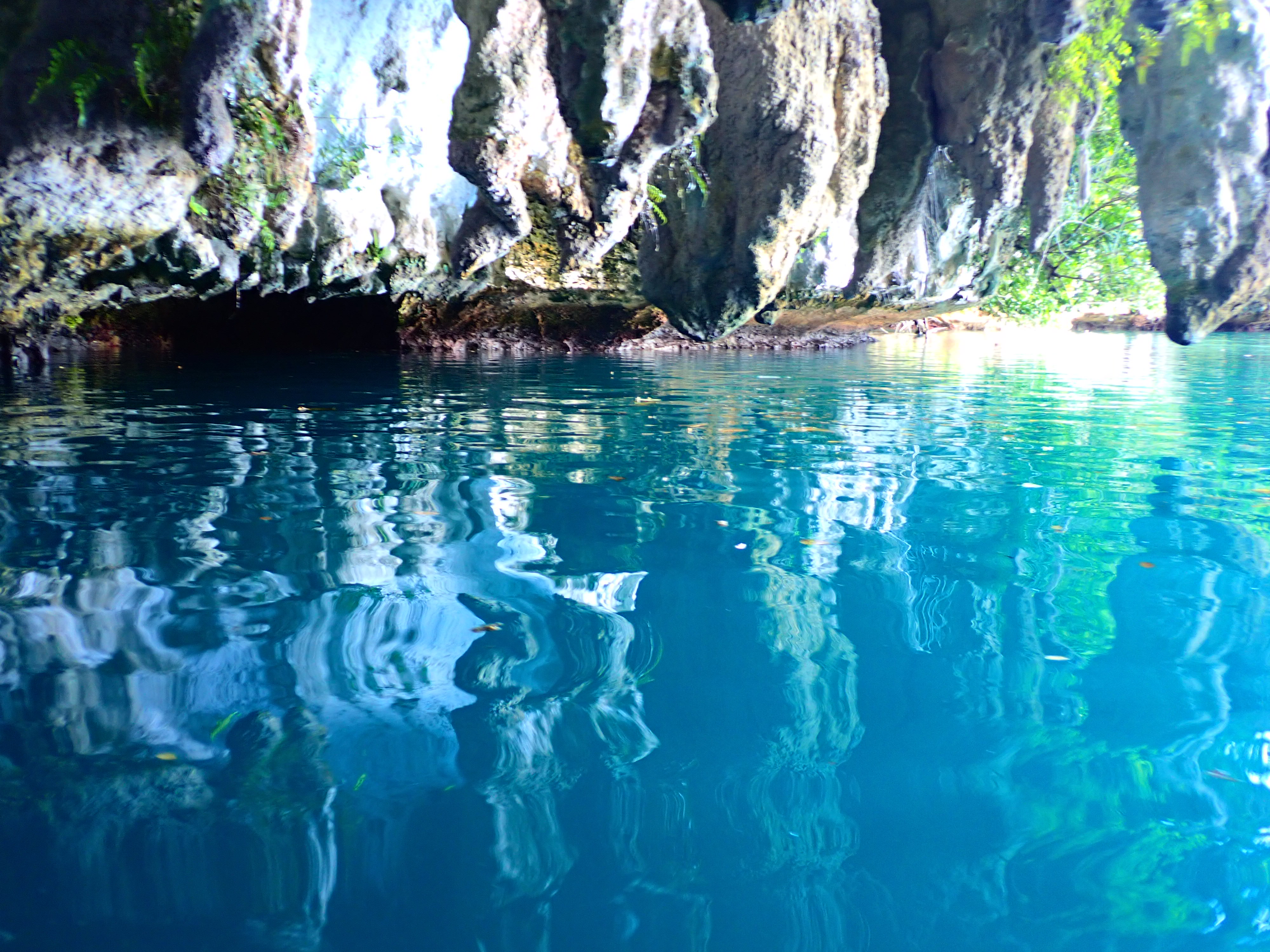 次に訪れたのは、ホワイトウォール。巨大な鍾乳石がぶら下がっており、それが歯に見えるという事で「鮫の口」とも呼ばれます。今日は淡い海の色合いが綺麗でした。