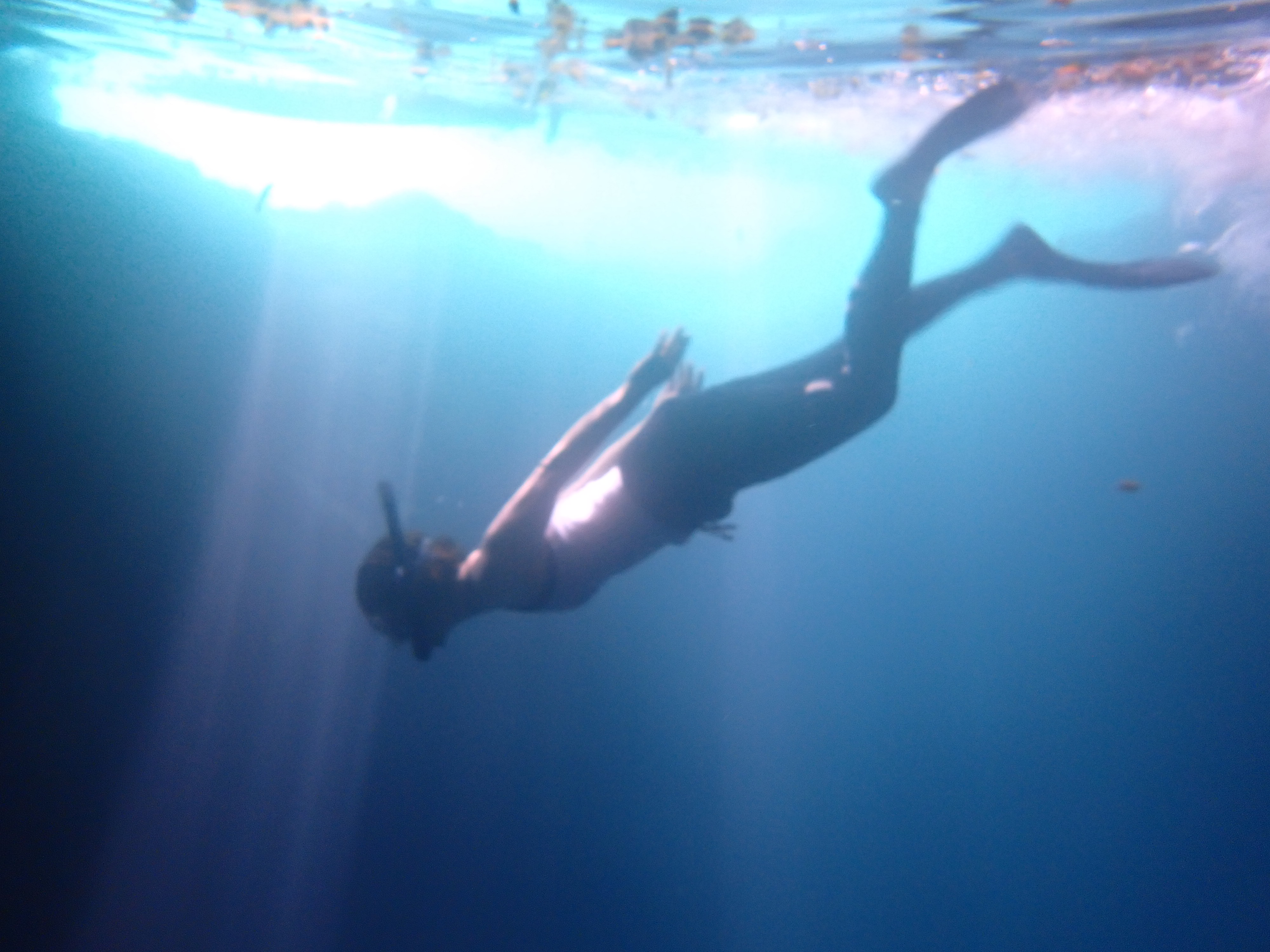水中では太陽の光が、海底まで達しており、なかなか綺麗です。スノーケリングをするとそこはちょっと幻想的な水中世界。メキシコの有名スポット、セノーテ気分を楽しめます。