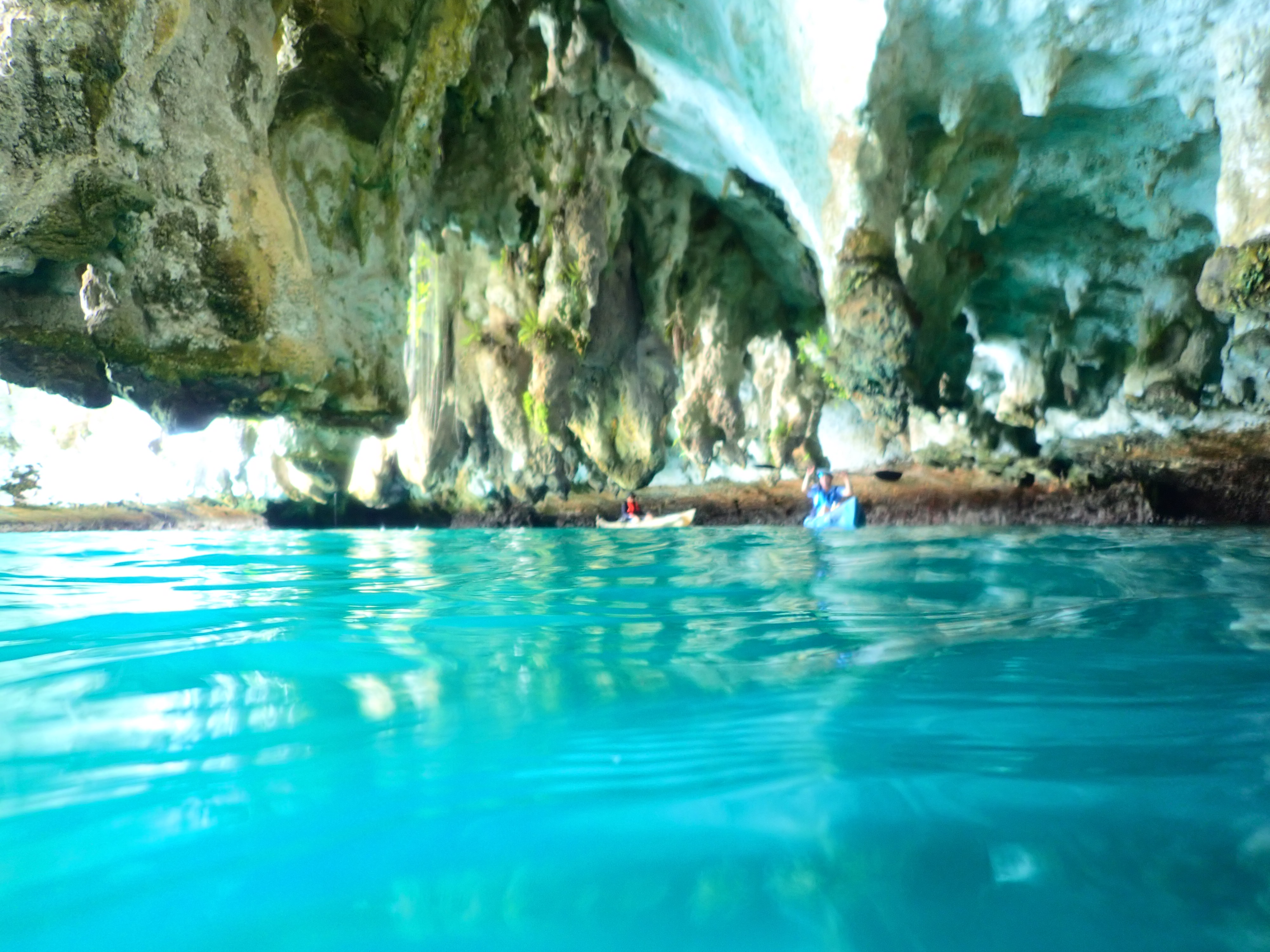 次に向かったのは海中と陸上の間にある小さな洞窟。カヤックではこういった狭い場所でも訪れる事が出来るのも魅力です。