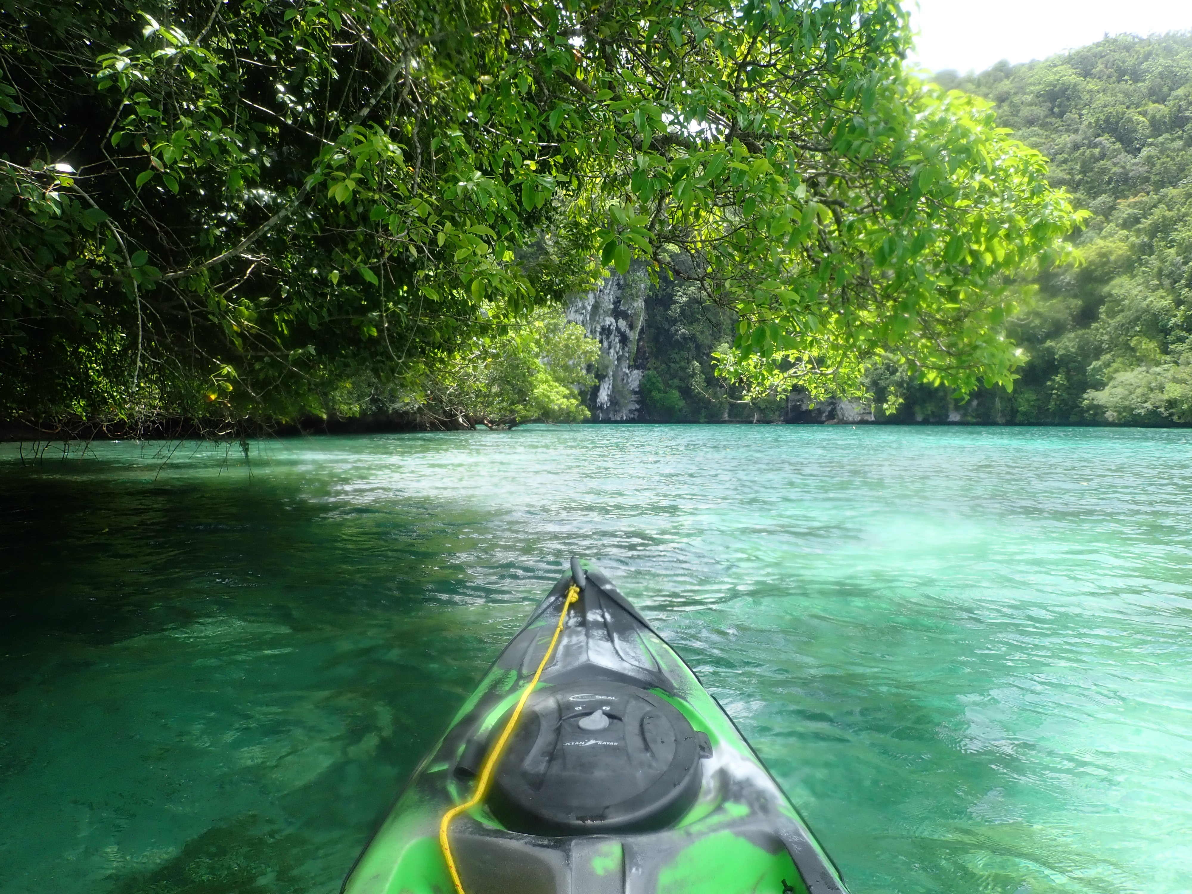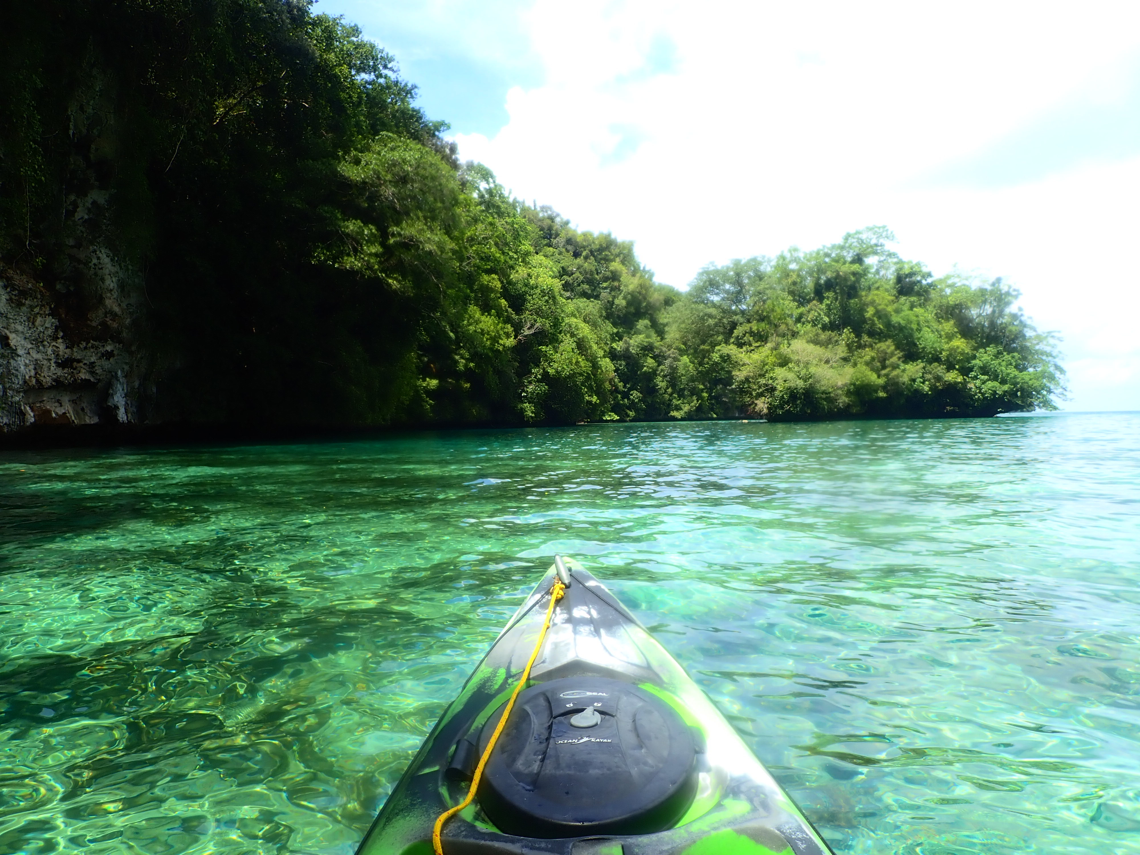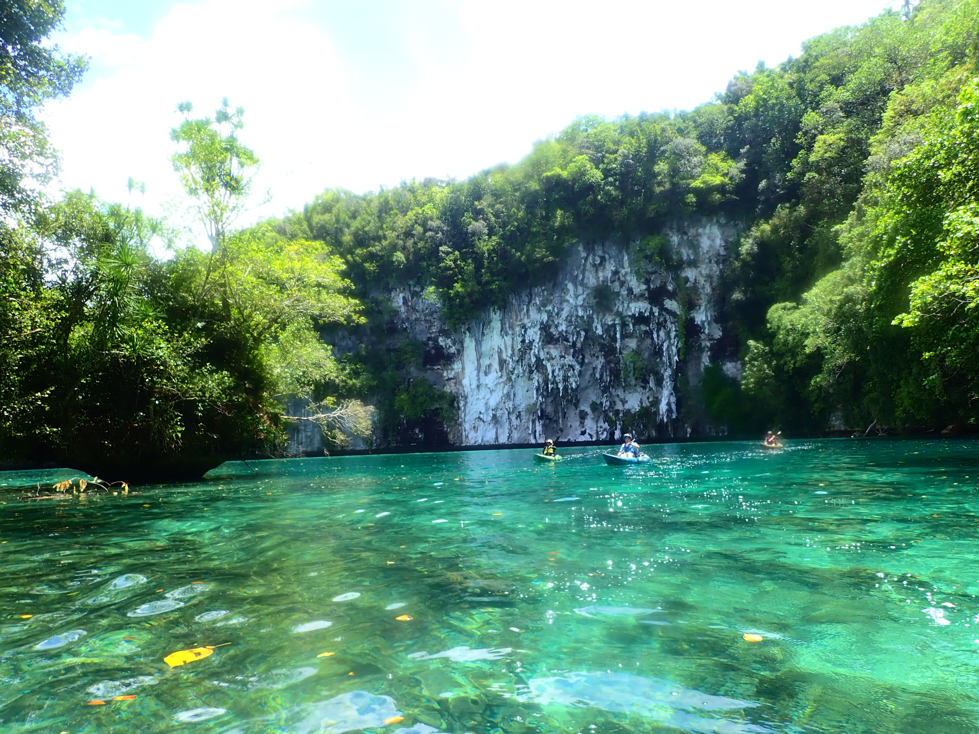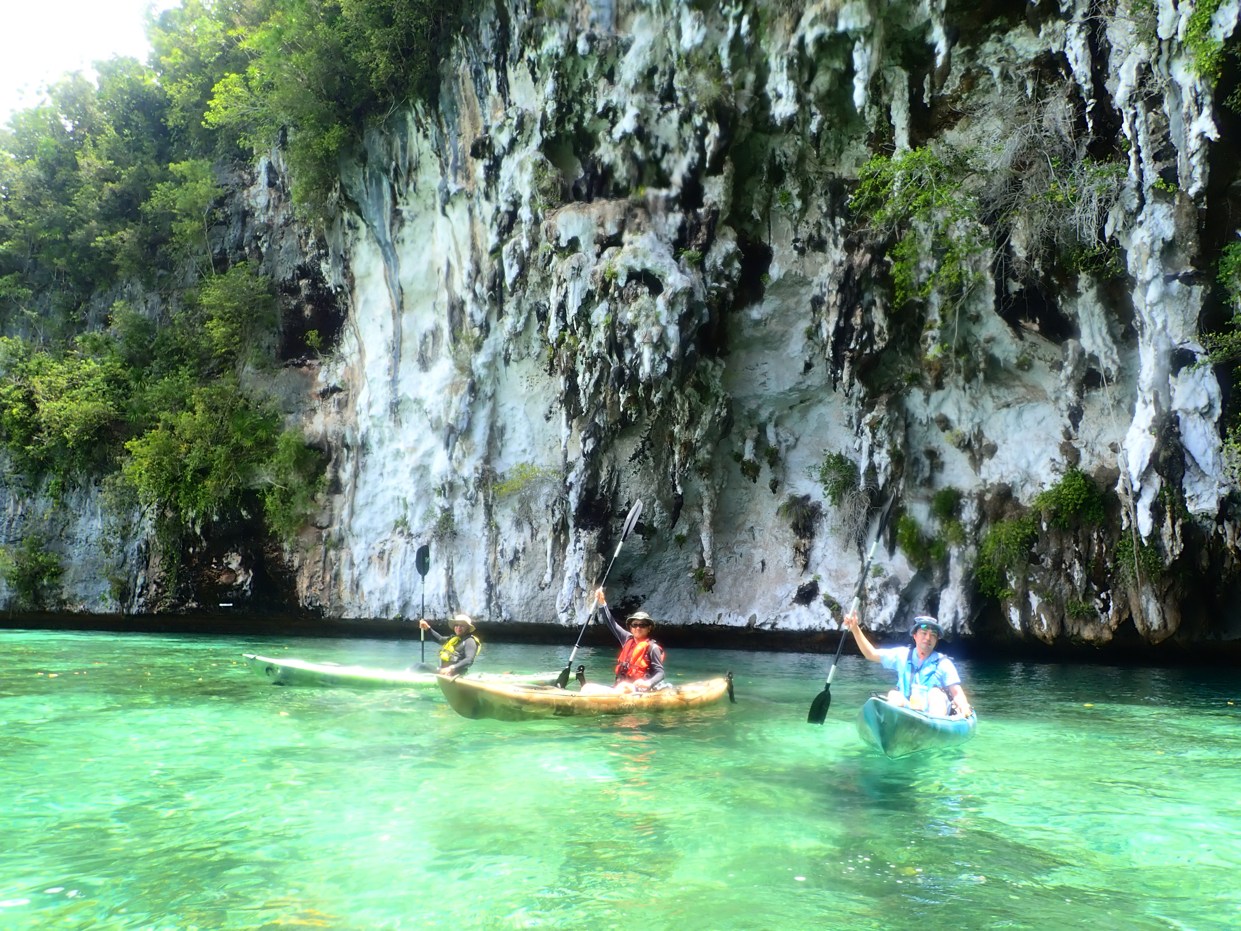 アイライのロックアイランドに沿って漕ぎ進み、ホワイトウォールへ。いわゆるロックアイランドと呼ばれる島々は隆起した珊瑚島で、その大部分は石灰岩です。