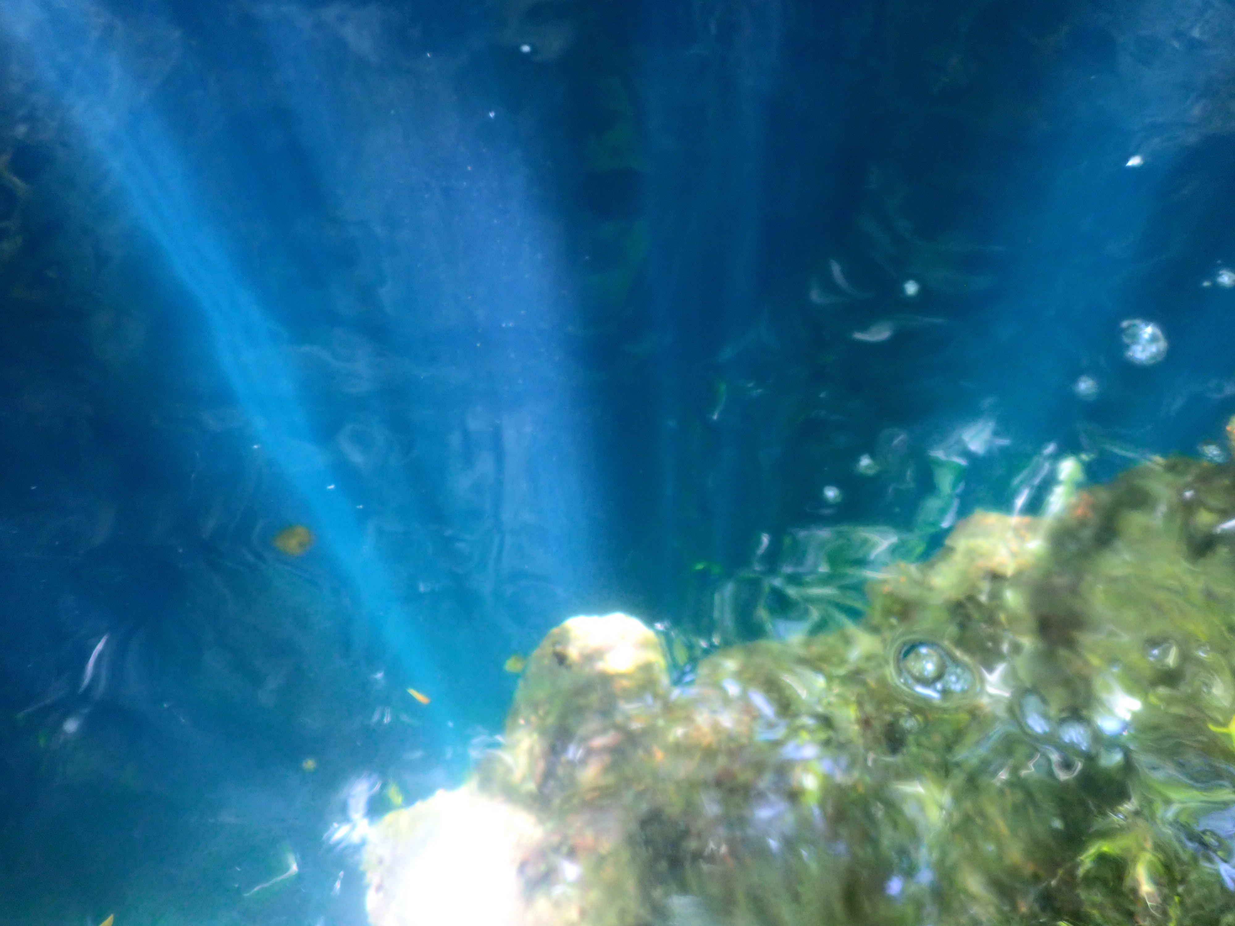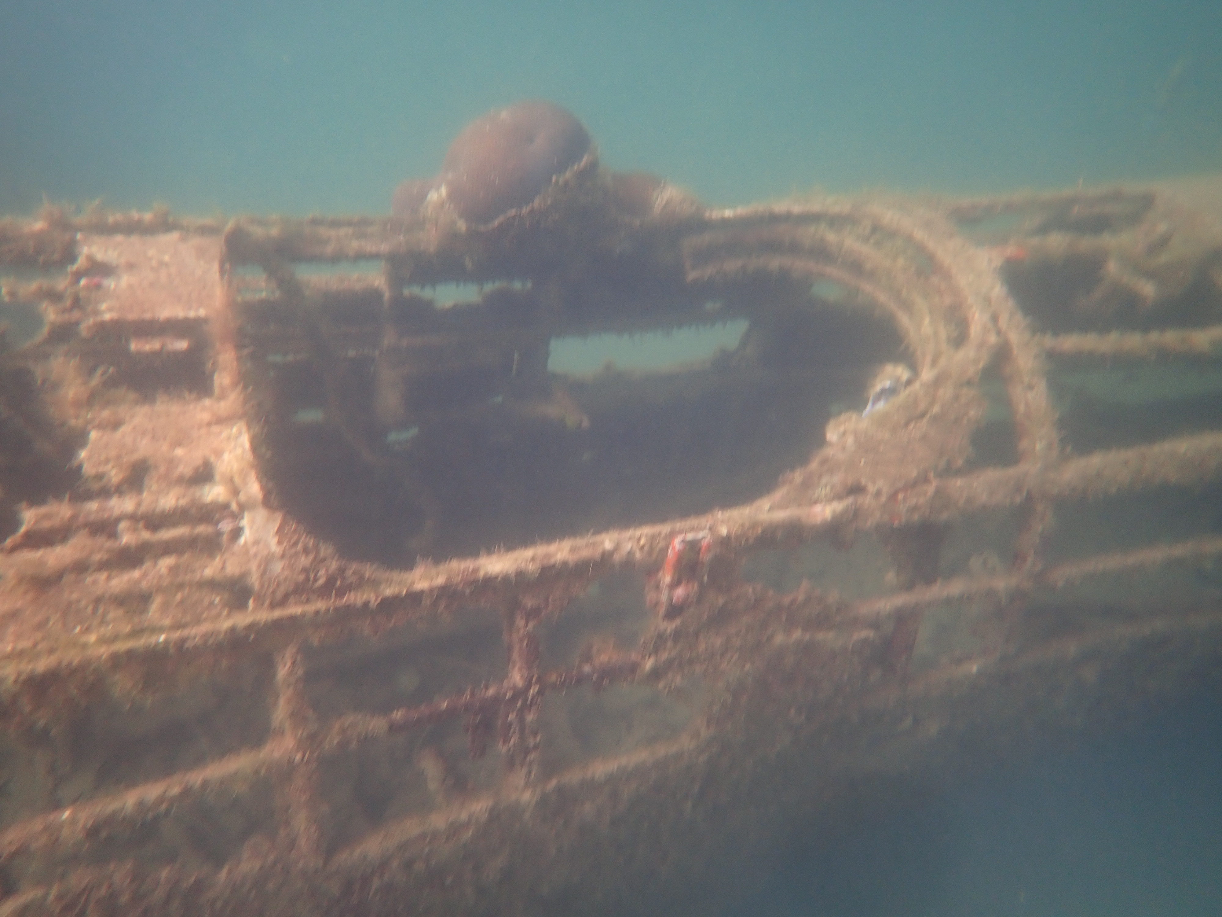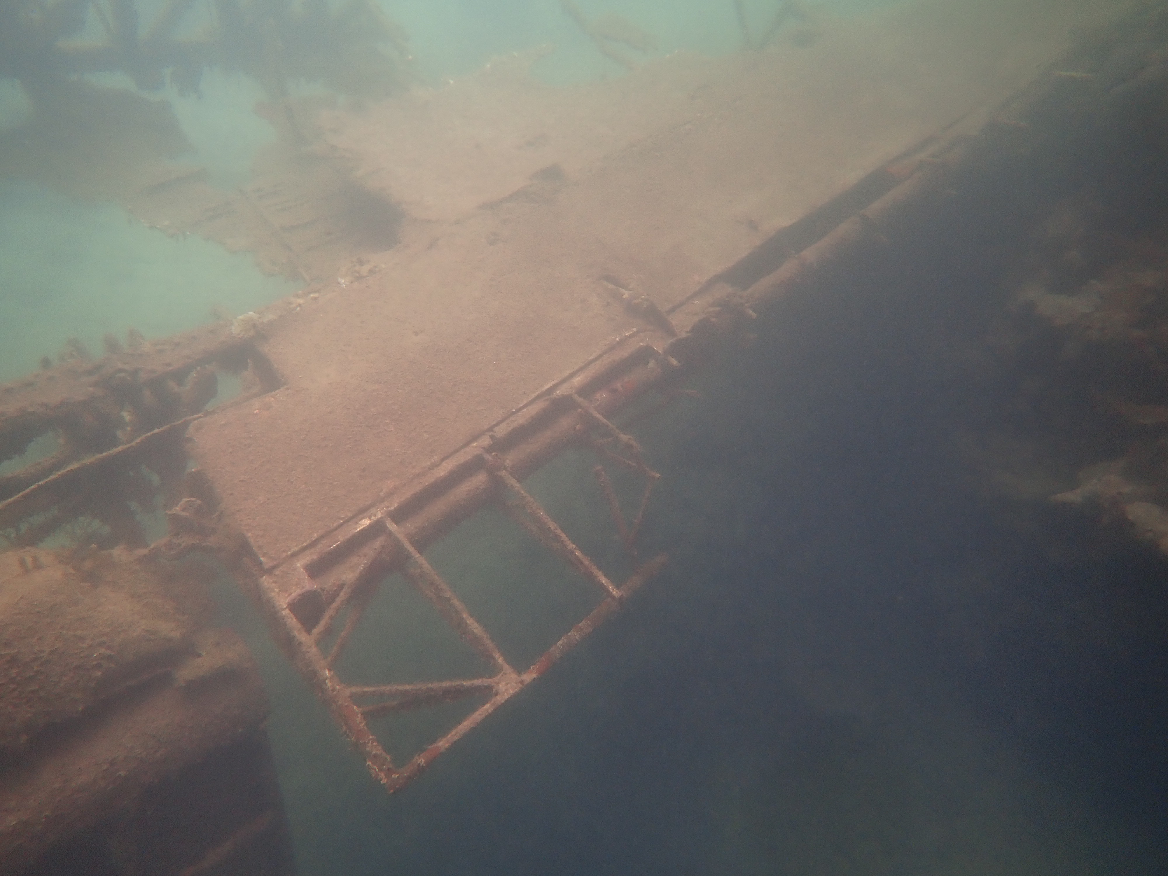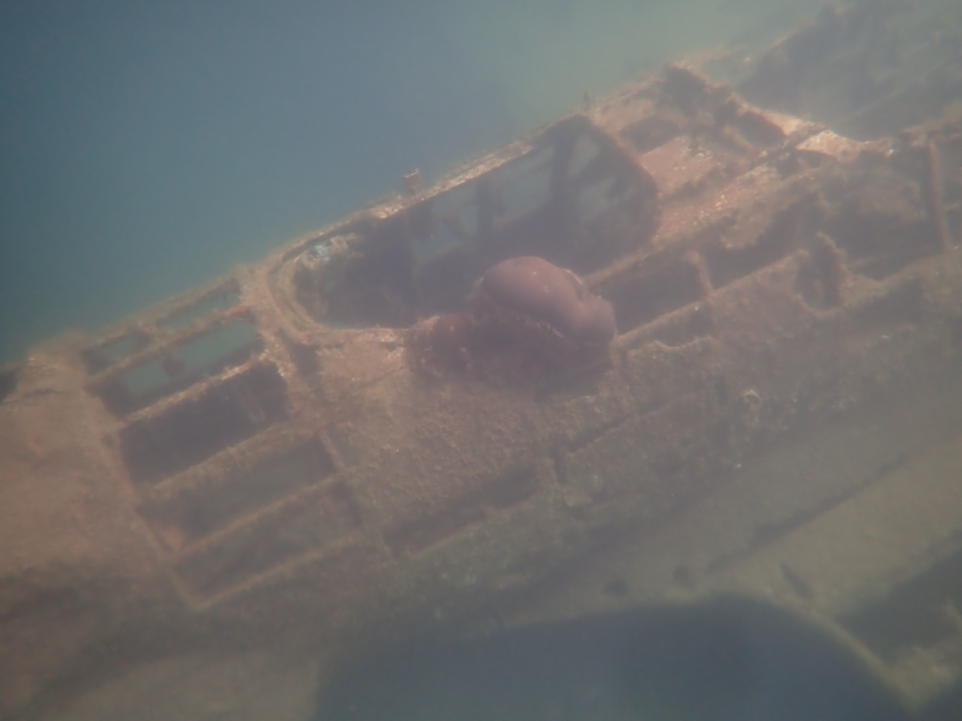 少し移動して、海中に眠る零式三座水上偵察機をスノーケリングで見に行きました。比較的、しっかりと形が残っており、海中で見ると細かな部分まで観察出来ます。この水上飛行機は下部にフロートが付いており、水上で離発着を可能にしていました。3枚目の写真がそのフロート部分です。