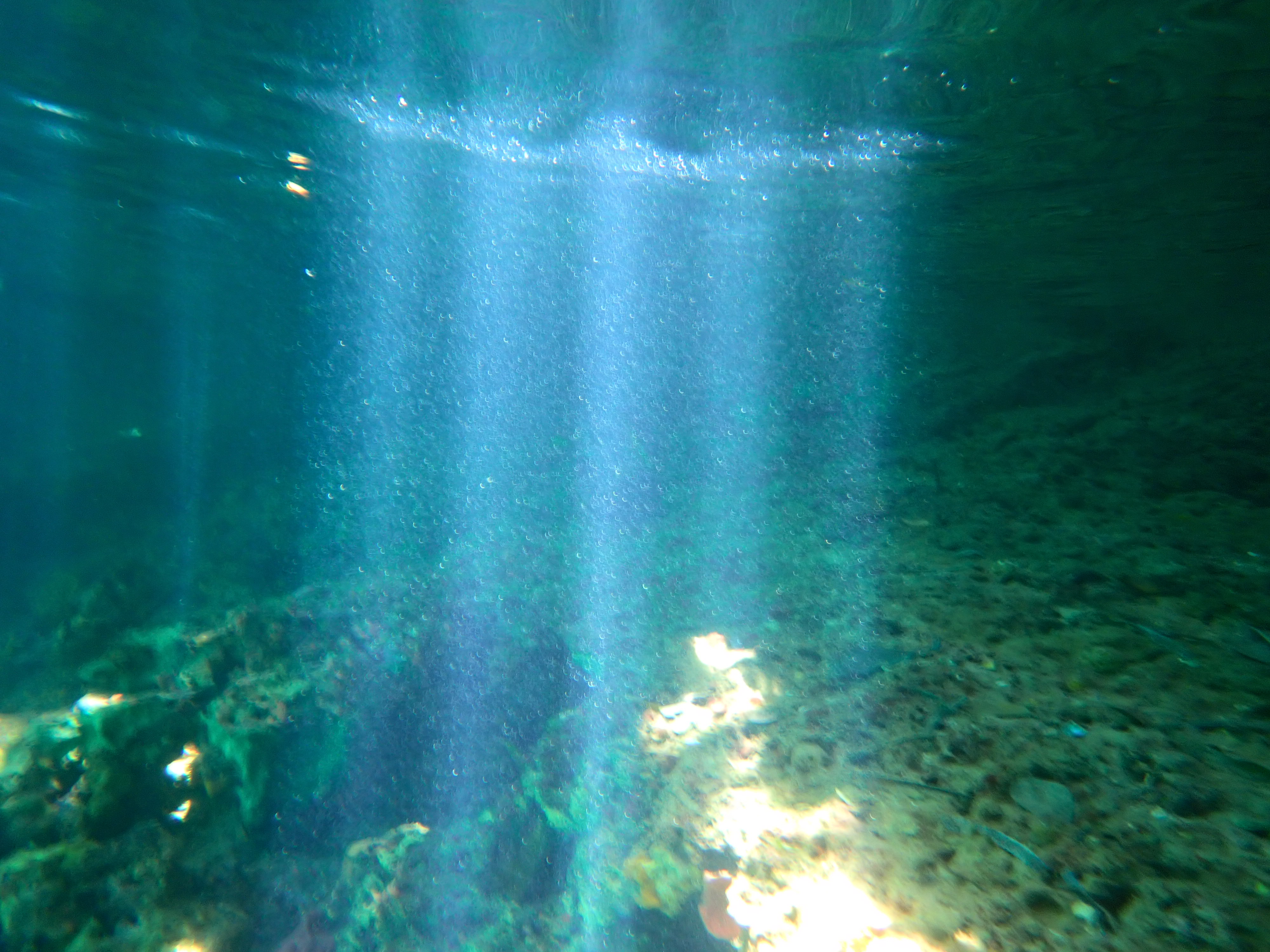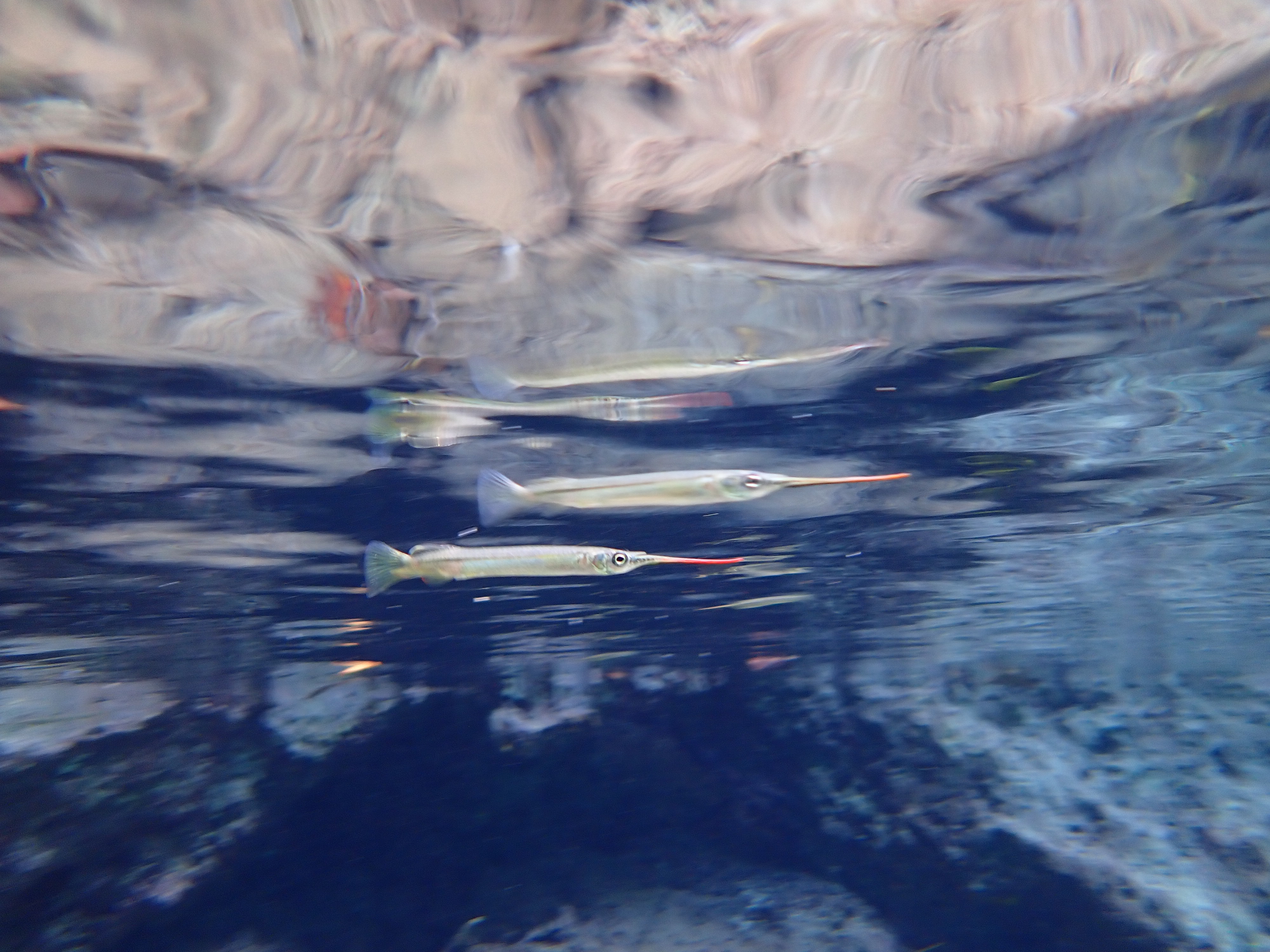 A few squalls fell, but when they stopped, the clouds drifted away and the sun came out. After all, it is really beautiful when the sunlight shines through. In the ocean, laser beam-like rays of light illuminated the seafloor, which was also a nice atmosphere.