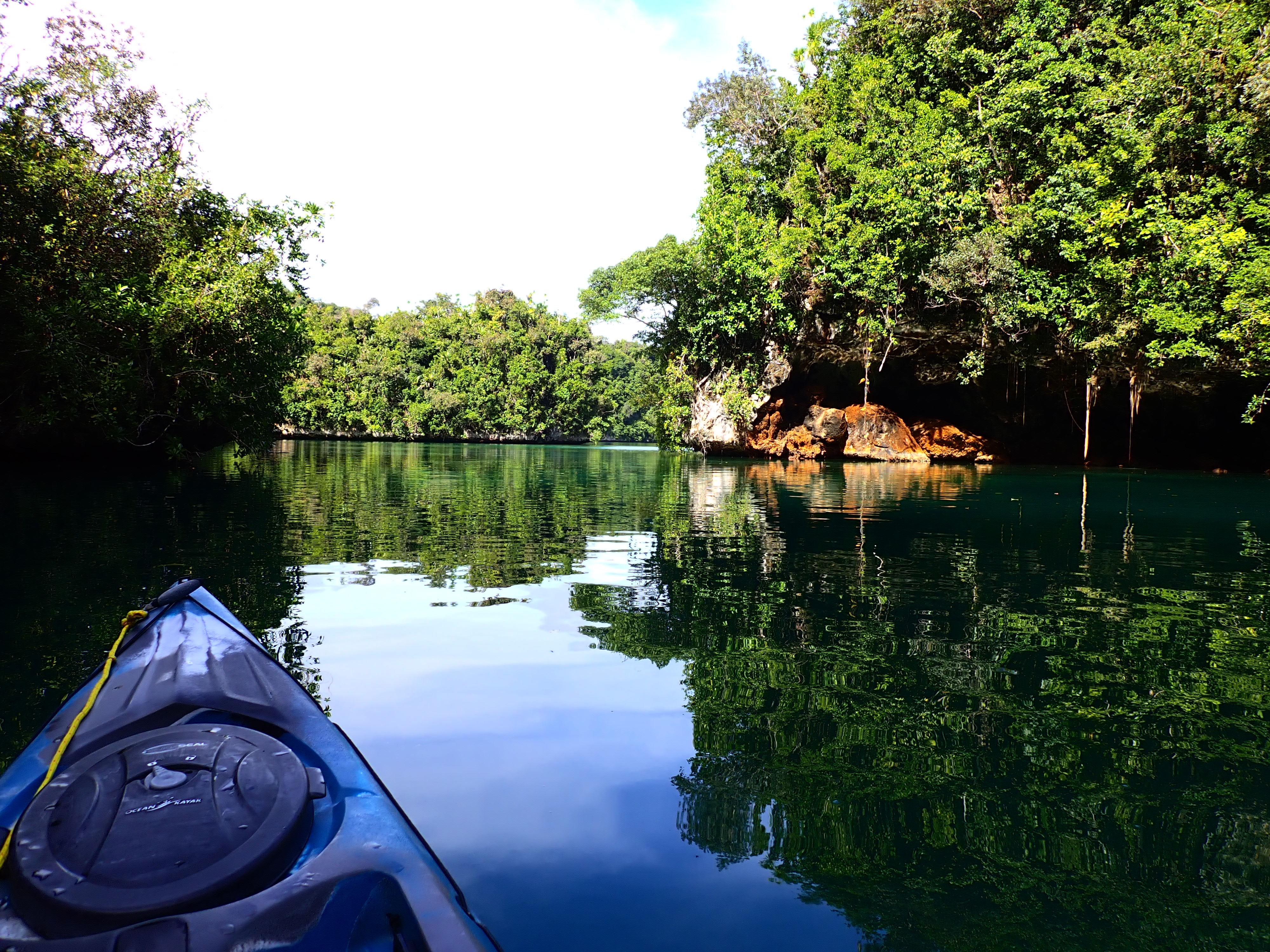 Today’s weather was typical Palau blue sky, calm winds and flat water, the best kayaking conditions.