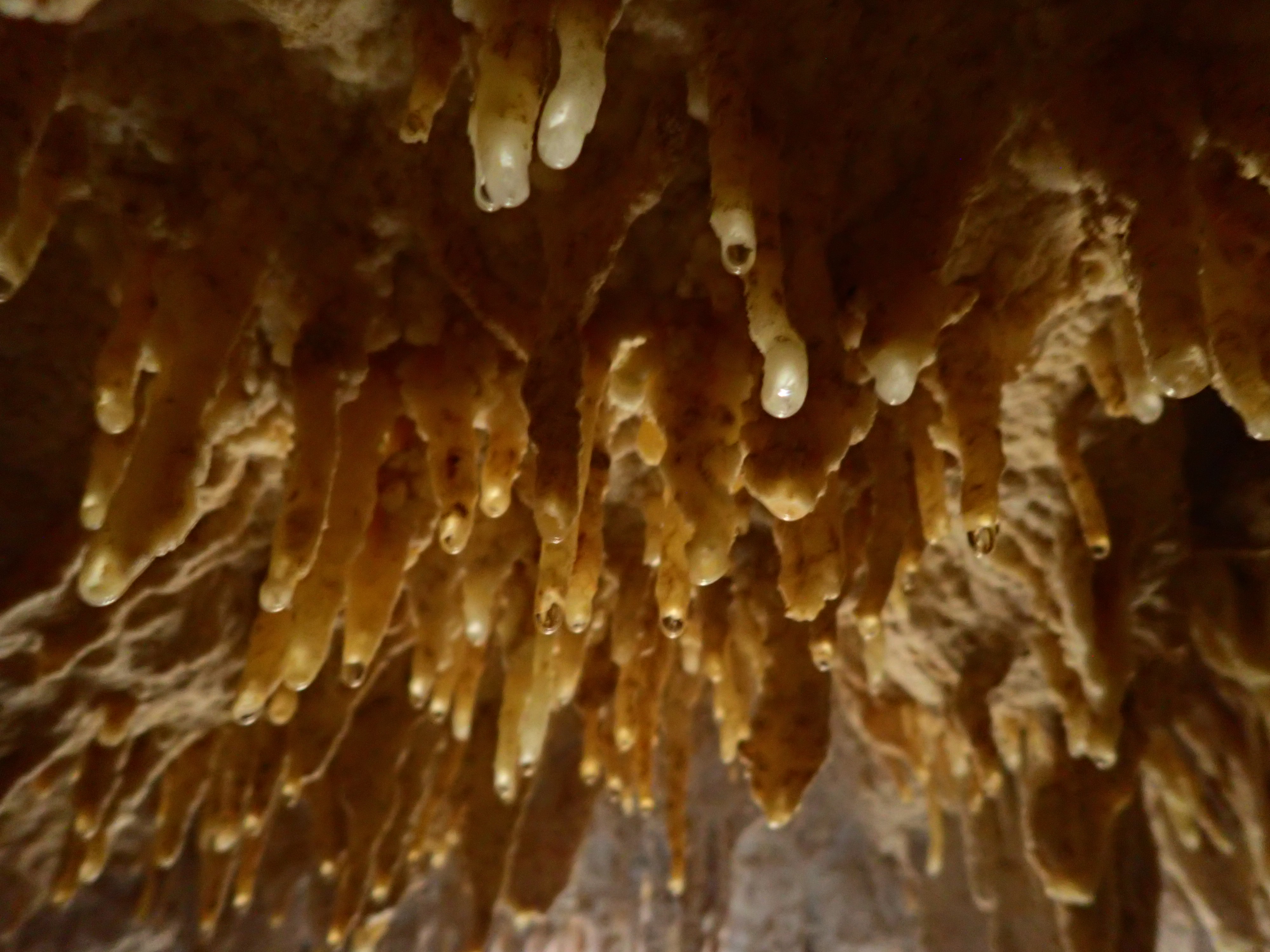 Some stalactites are still growing in the cave. Today’s guests tasted the drops flowing from the stalactites. Of course, it is clear water, but it should be full of minerals.