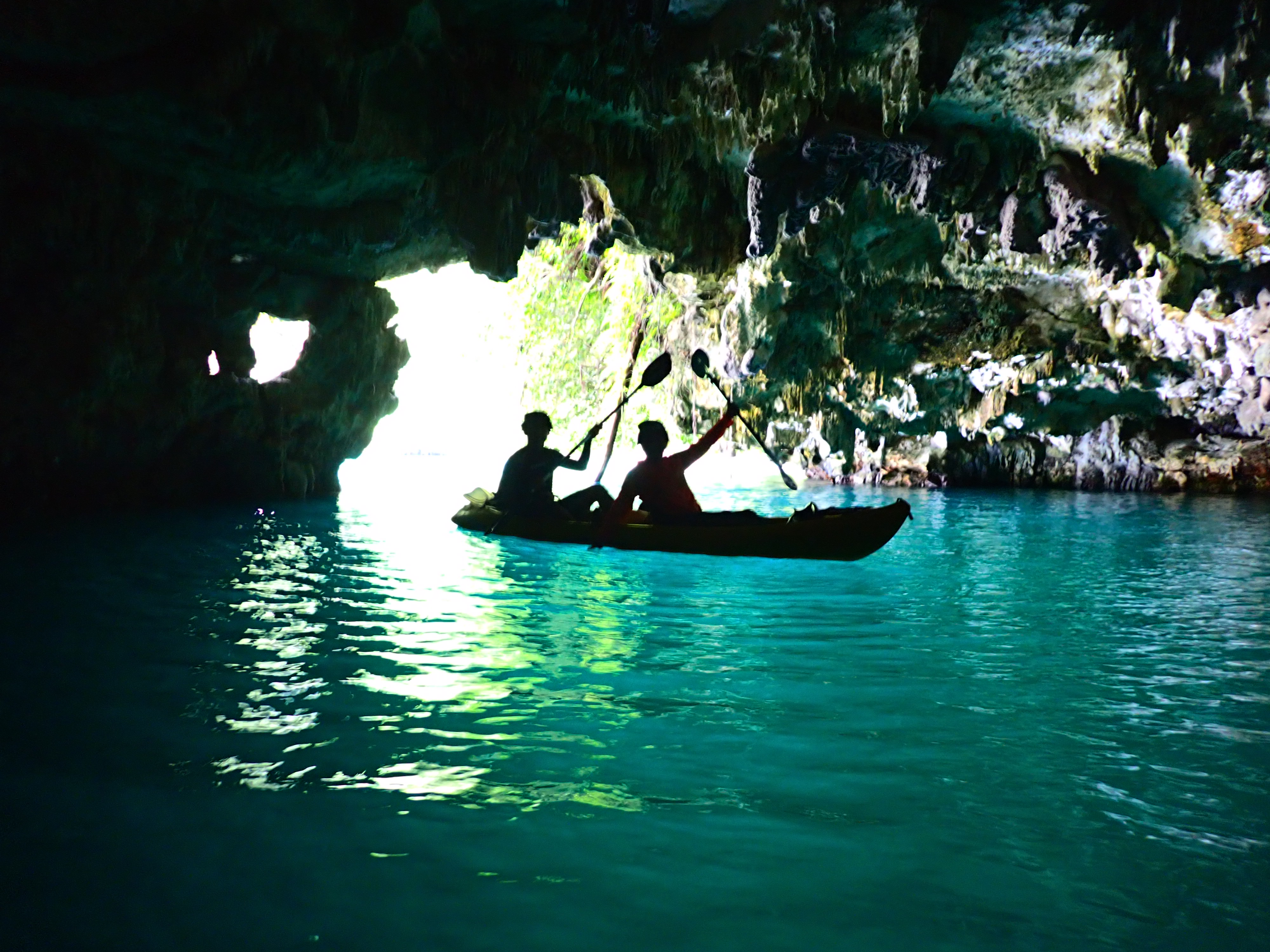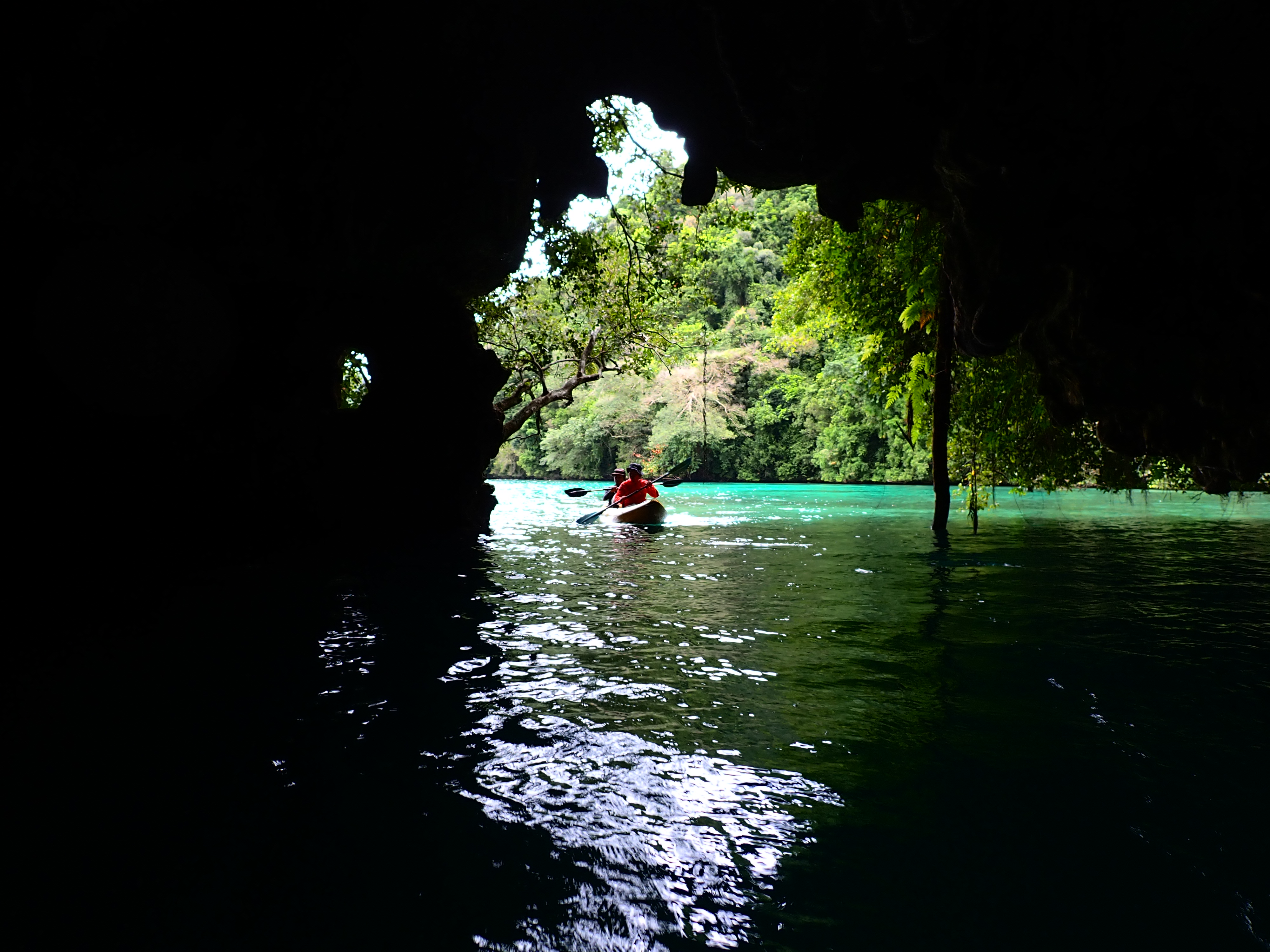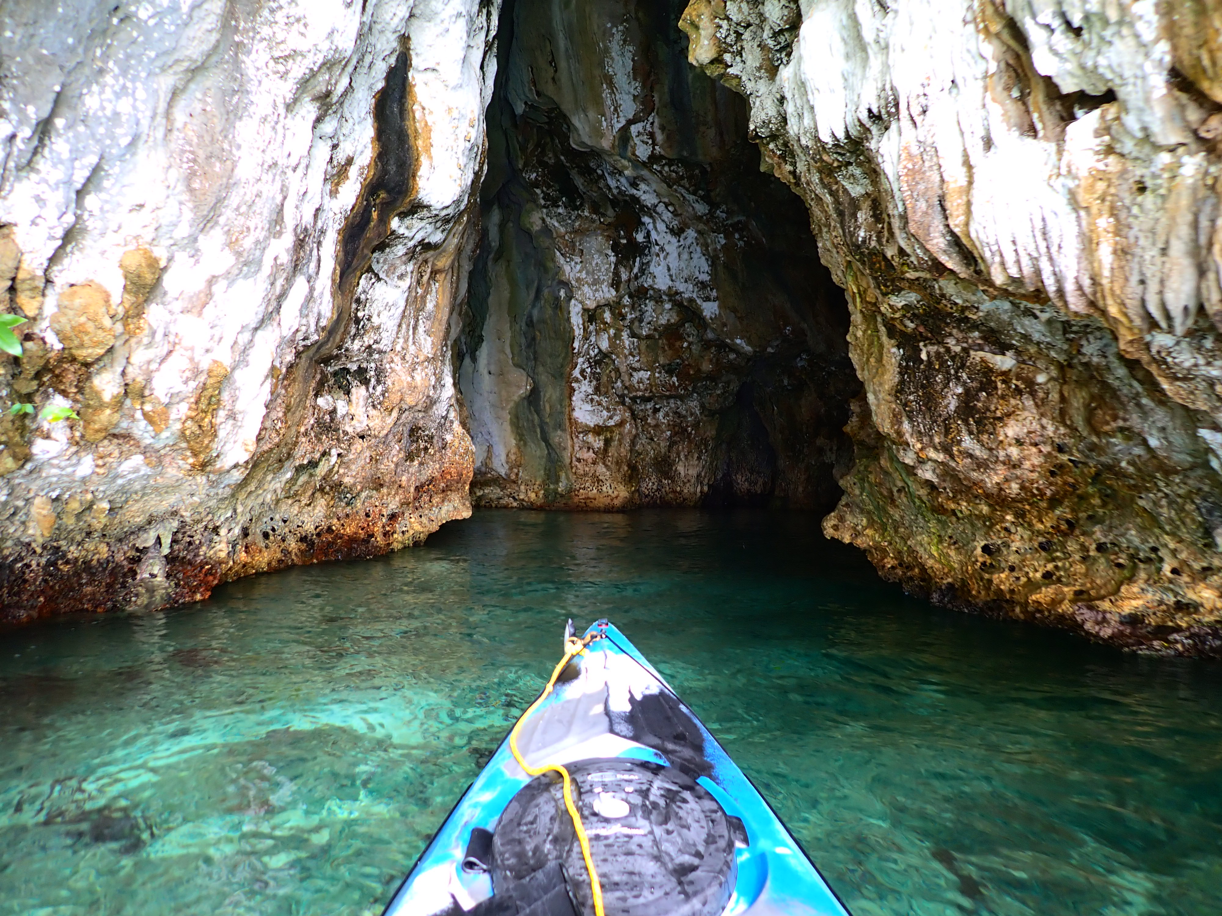 Here is the next cave we headed to, a fun spot where you can kayak through. There is no specific name for it, but the light shining through the cave’s exit looks like a cross when reflected on the surface of the water. So, I think I will call it the Cross Cave.