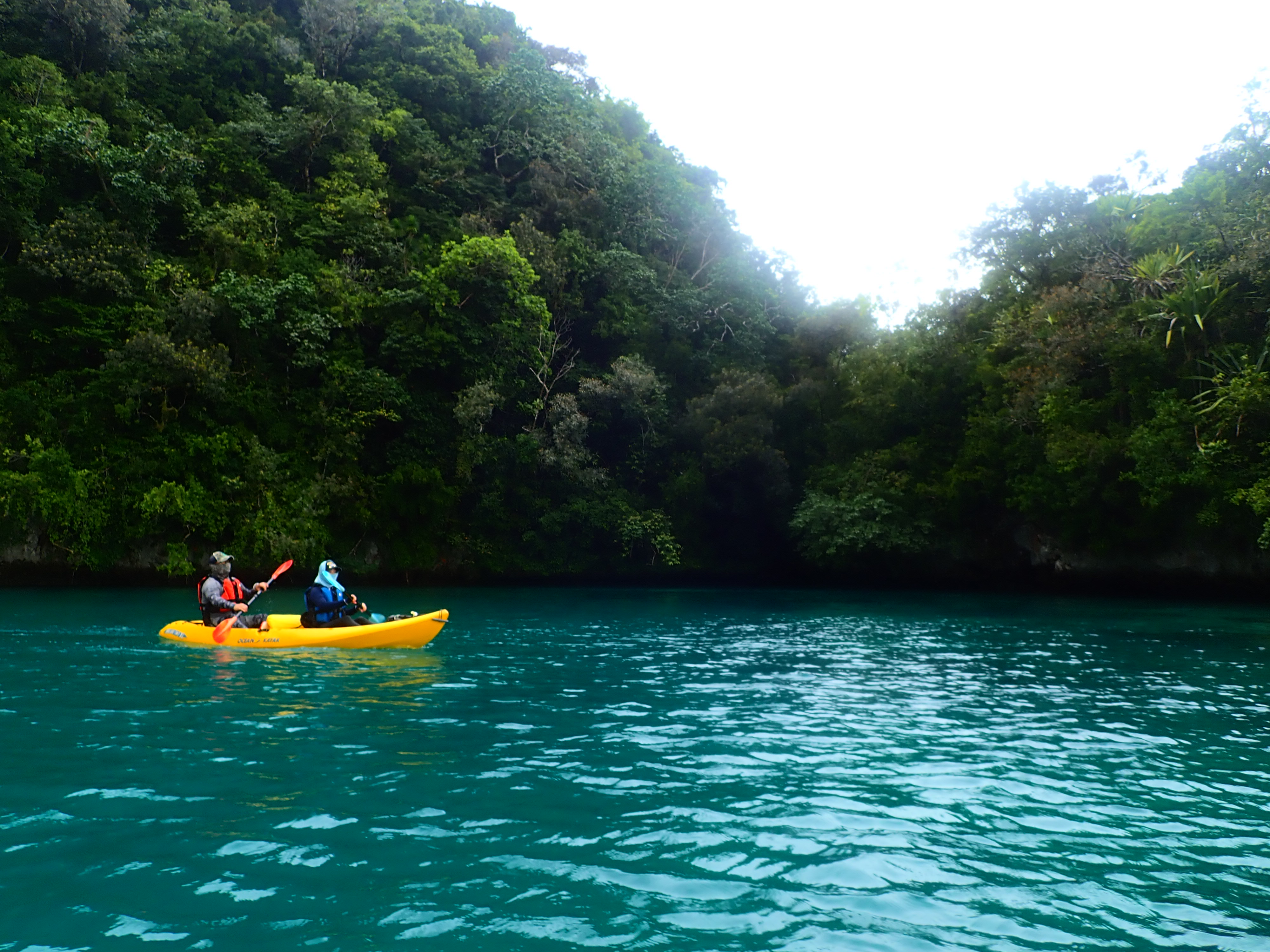 今日は少々天気が悪かったのですが、こんな日でも十分にカヤックやスノーケル、ちょっとした探検等を楽しめるパラオ松島。パラオに来られた際、天気が悪くても楽しめるコースはあります。海のツアーに行きたいけど、波風が強く、ボートのツアーは大変そう..そんな時は是非、パラオ松島がおススメです!