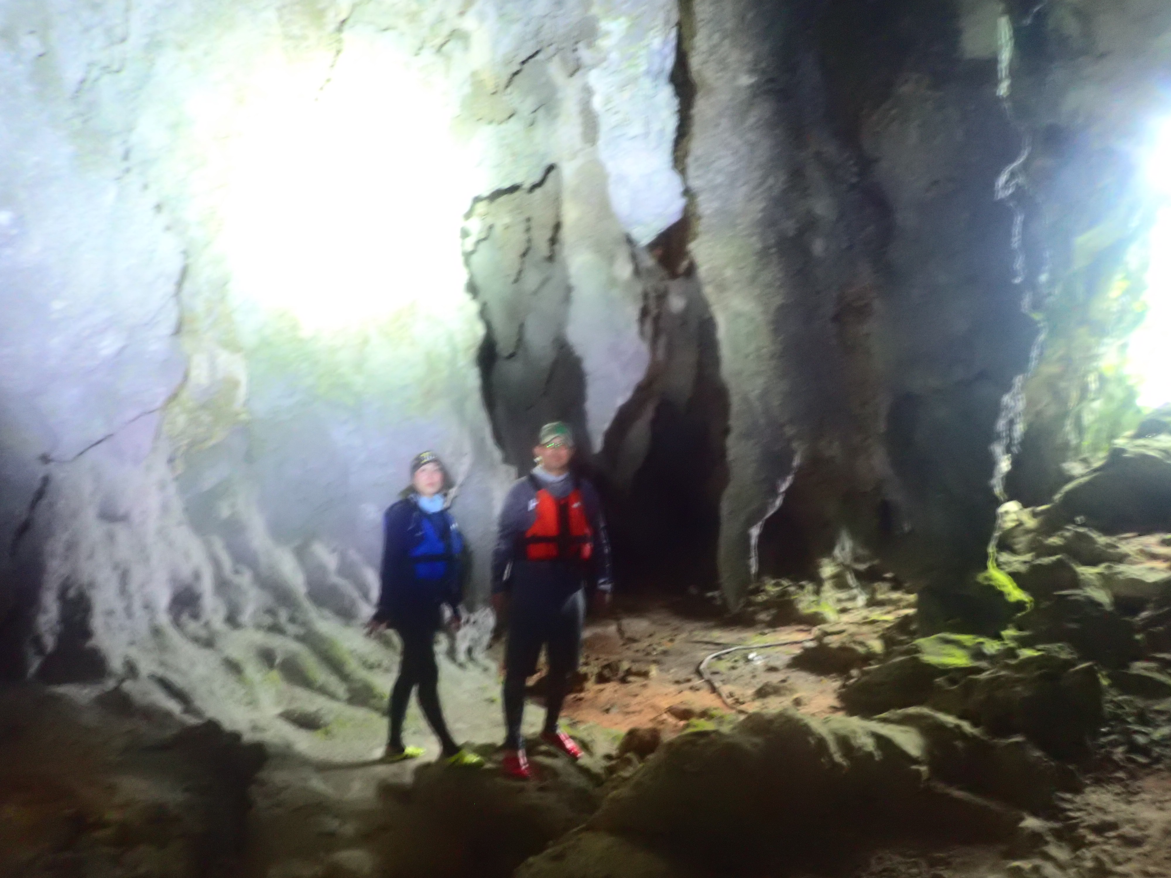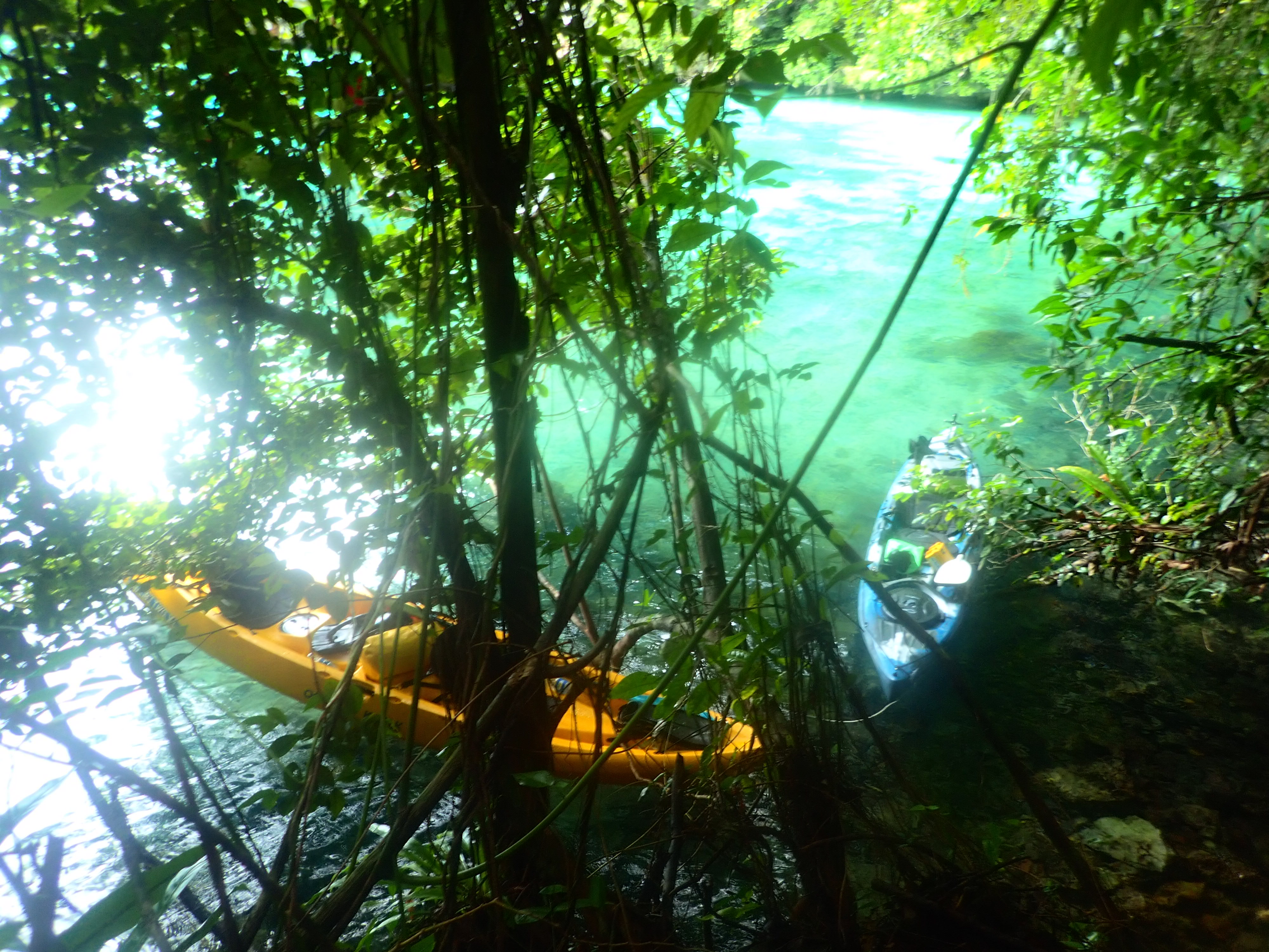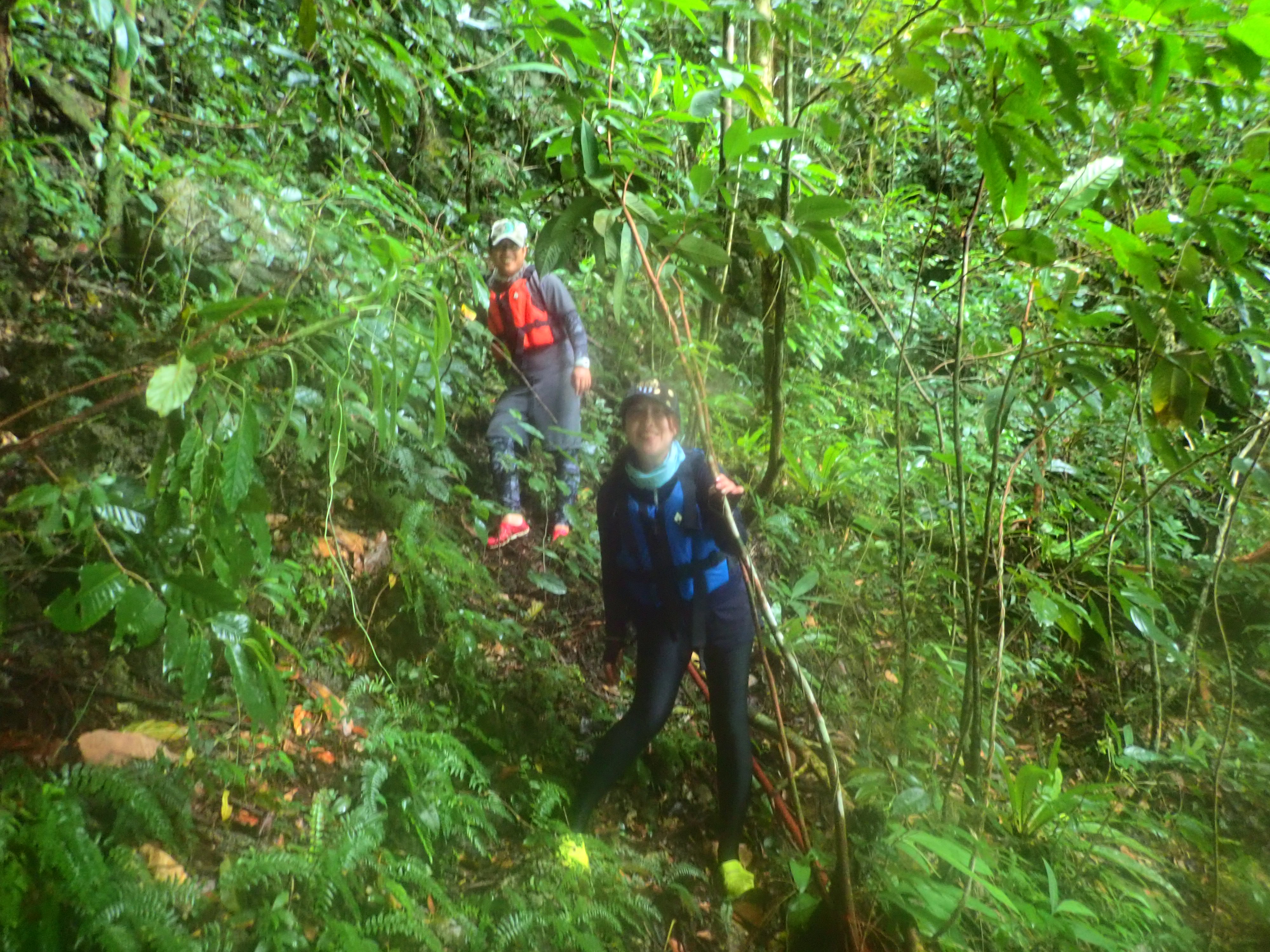 入江でカヤックを止めて、ジャングルトレッキングというかクライミング。その先にあるのは..