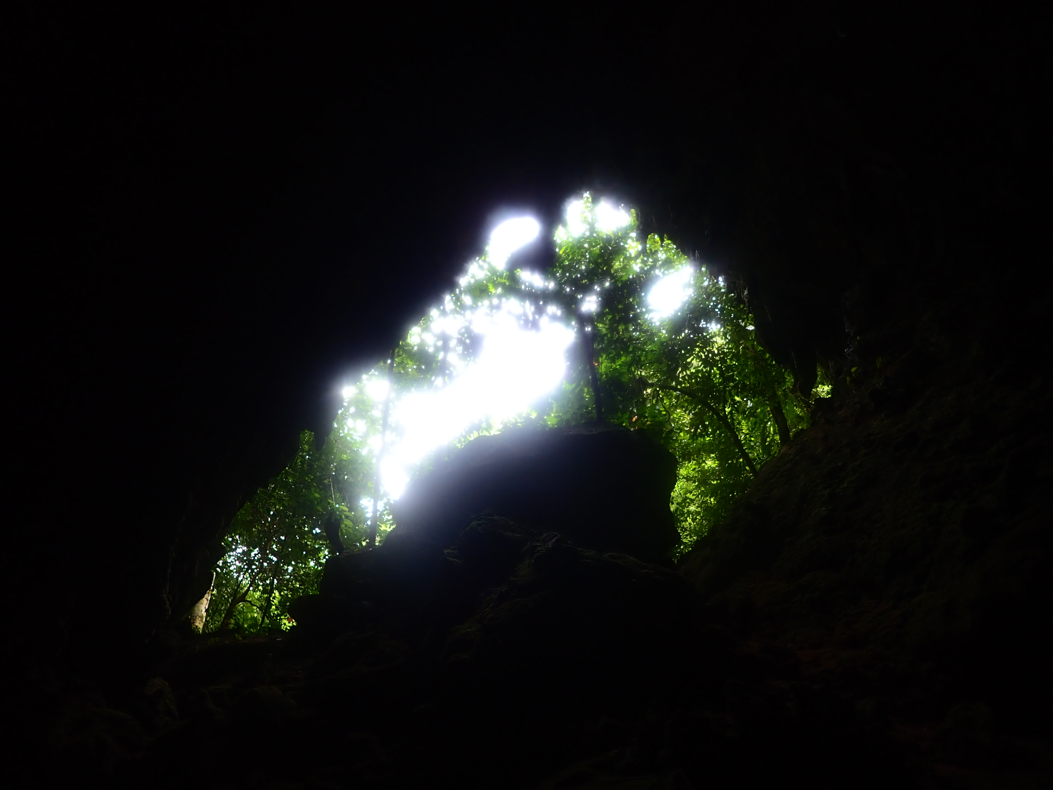 こんな洞窟がジャングル内にあったりします。パラオ松島内は多数の洞窟があり、すべてに入る事は難しいですが、一部岸の近くの洞窟には訪れる事も出来ます。