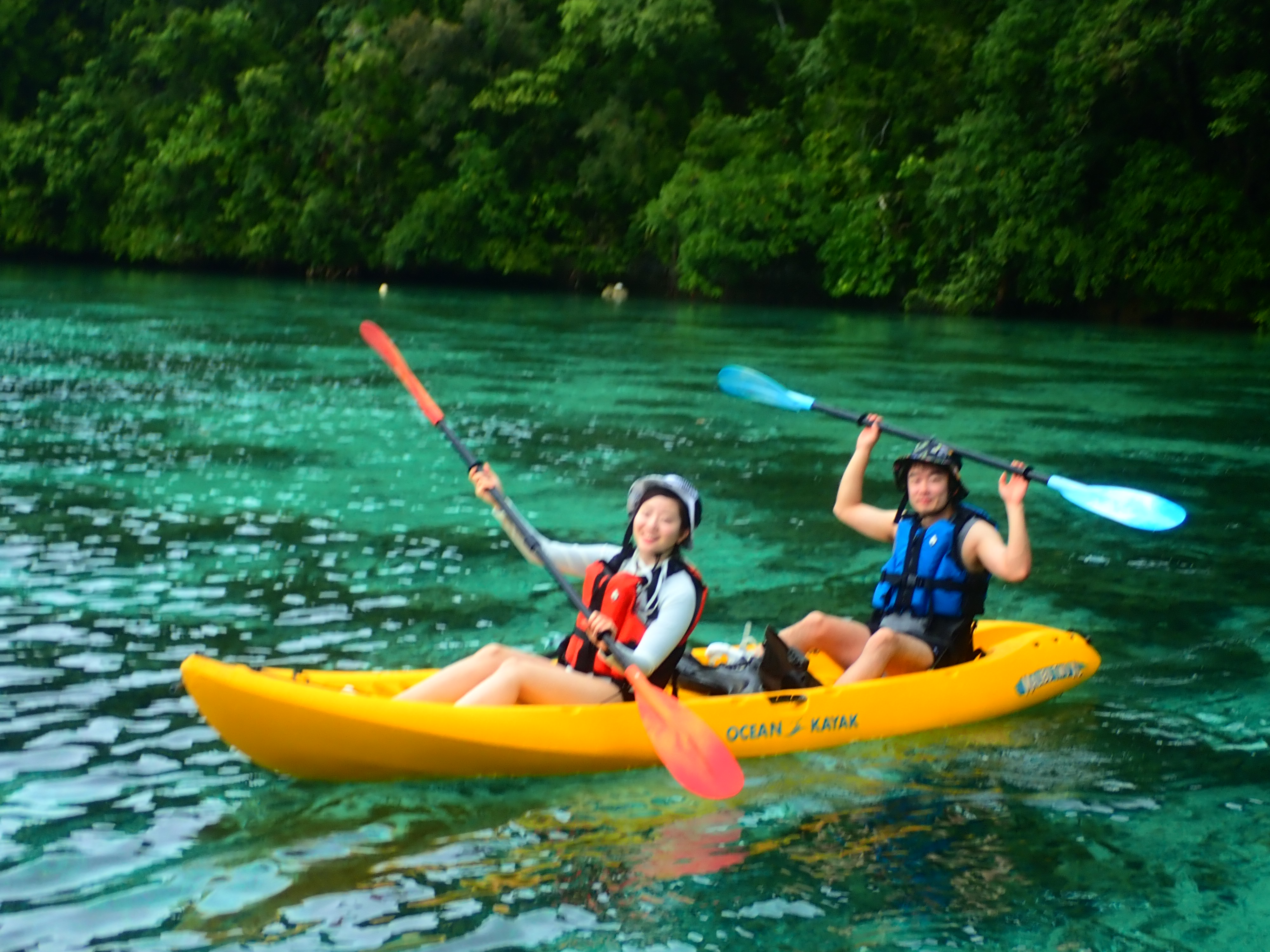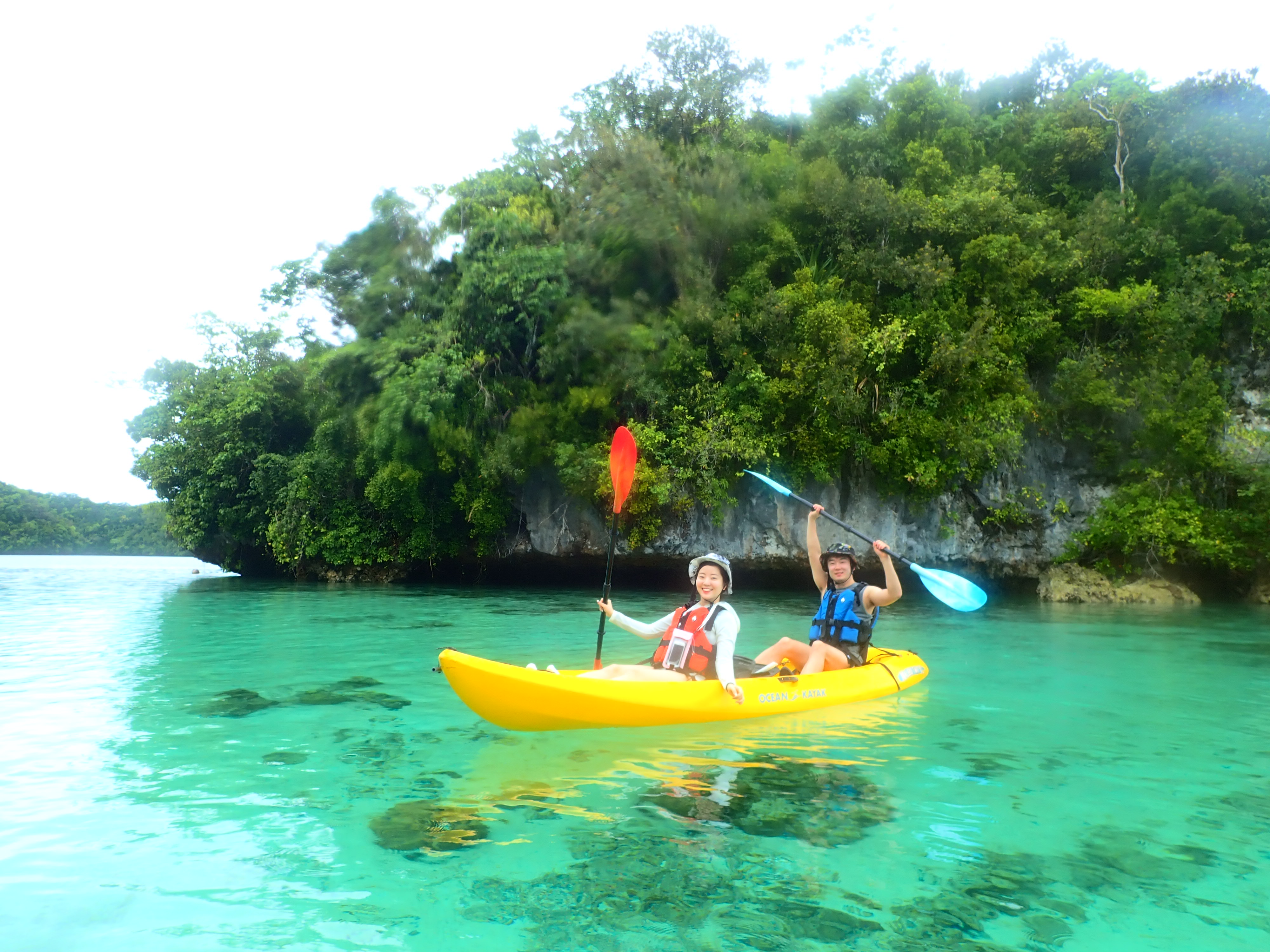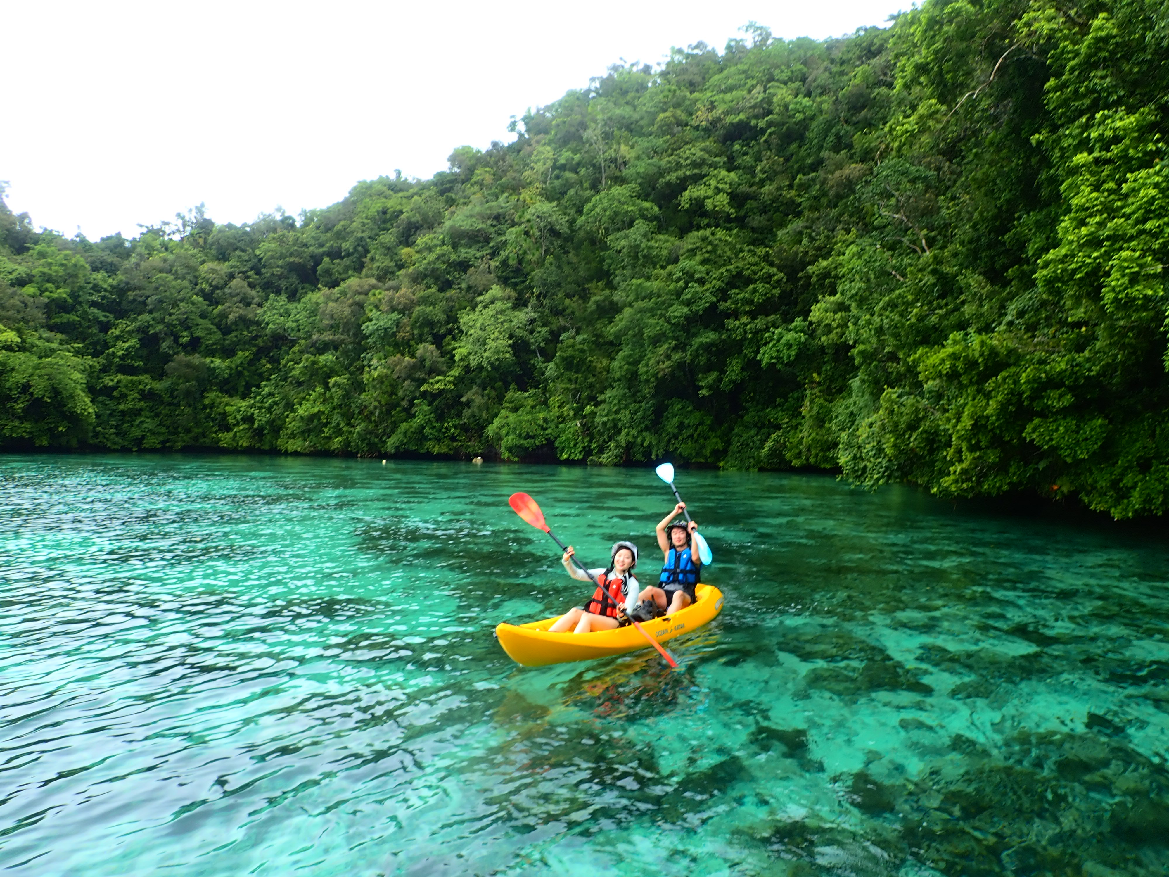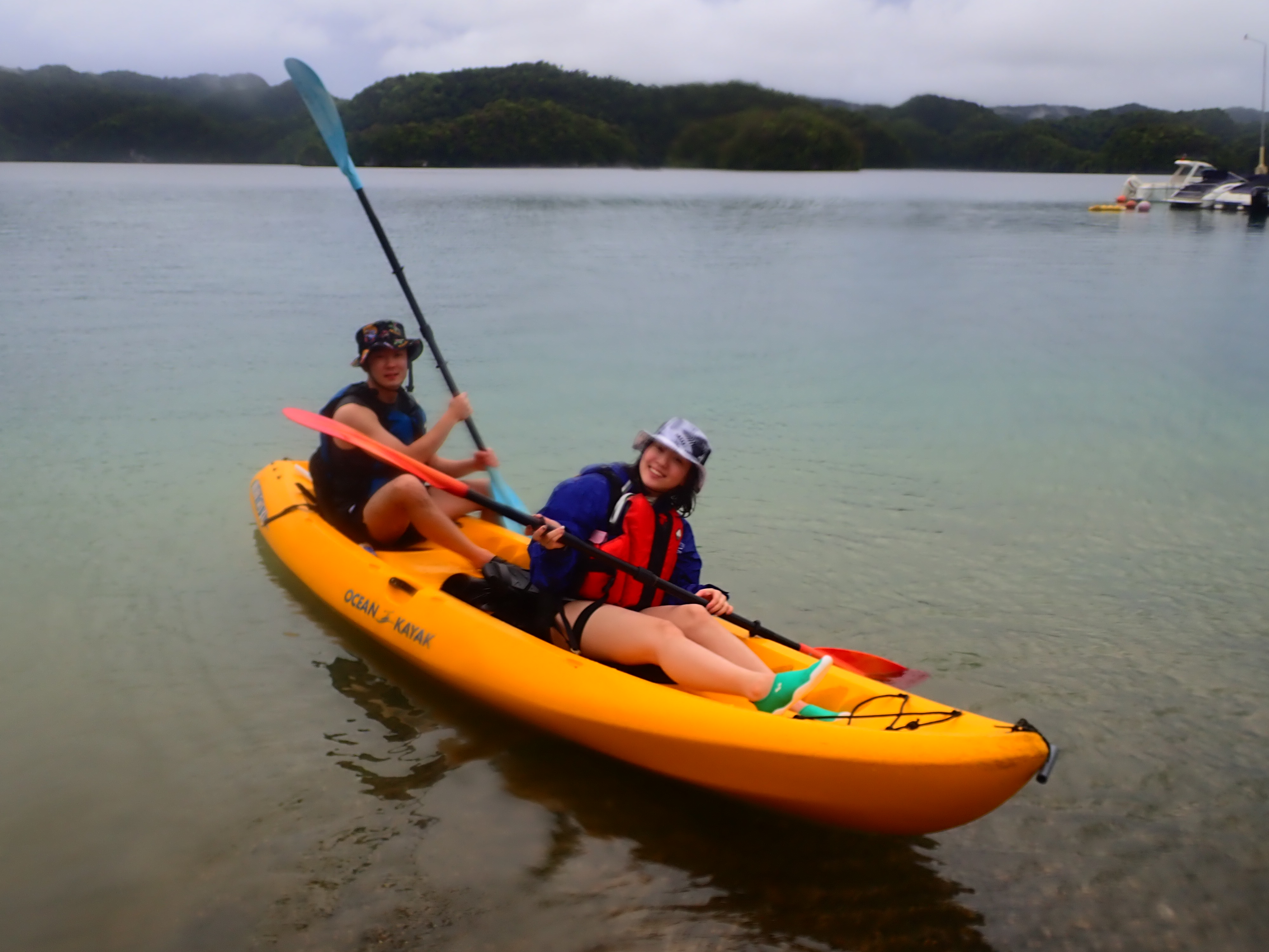 The weather is cloudy, sometimes rainy, but Nikko Bay is always calm so it is no problem to enjoy kayaking.