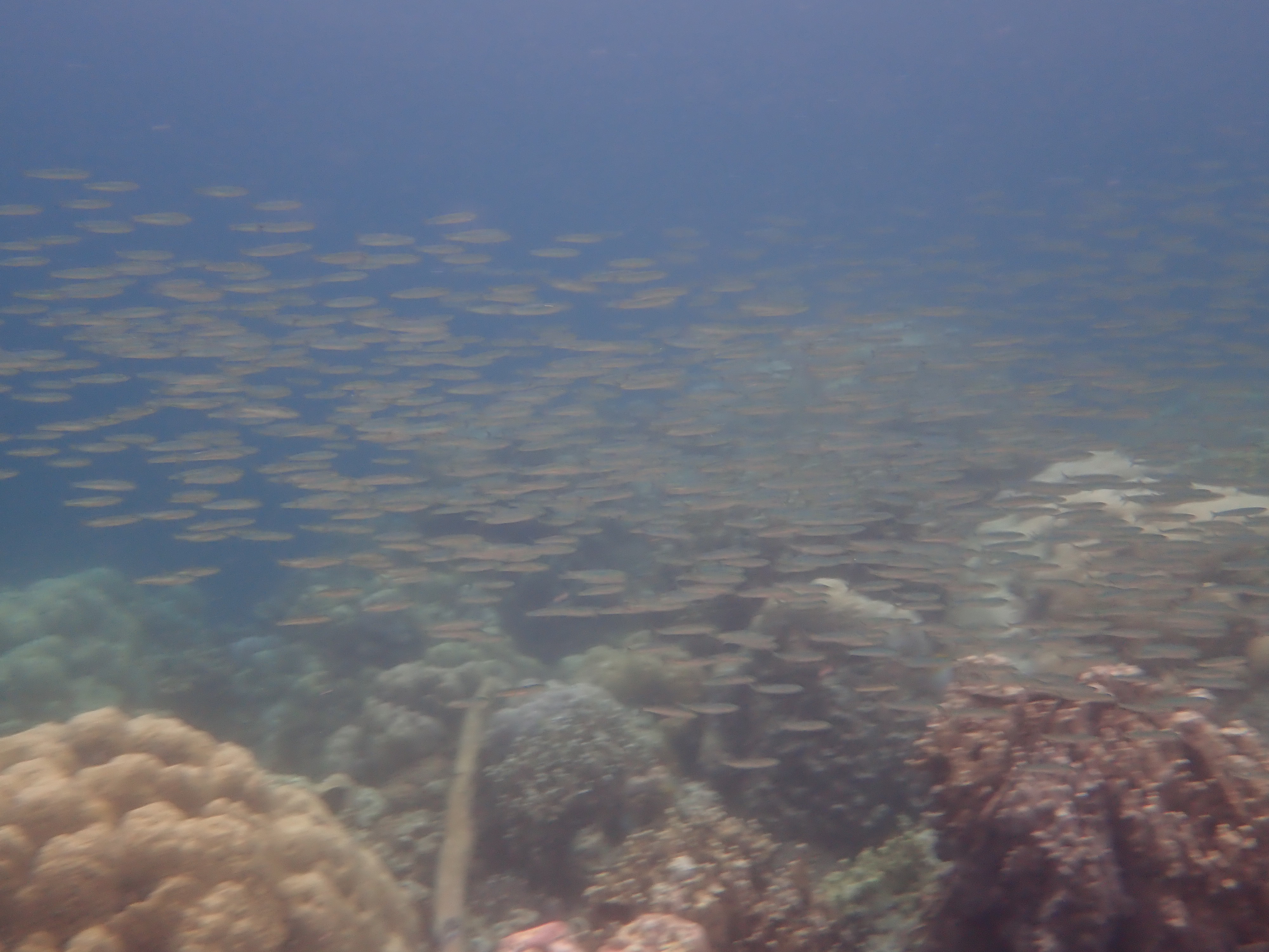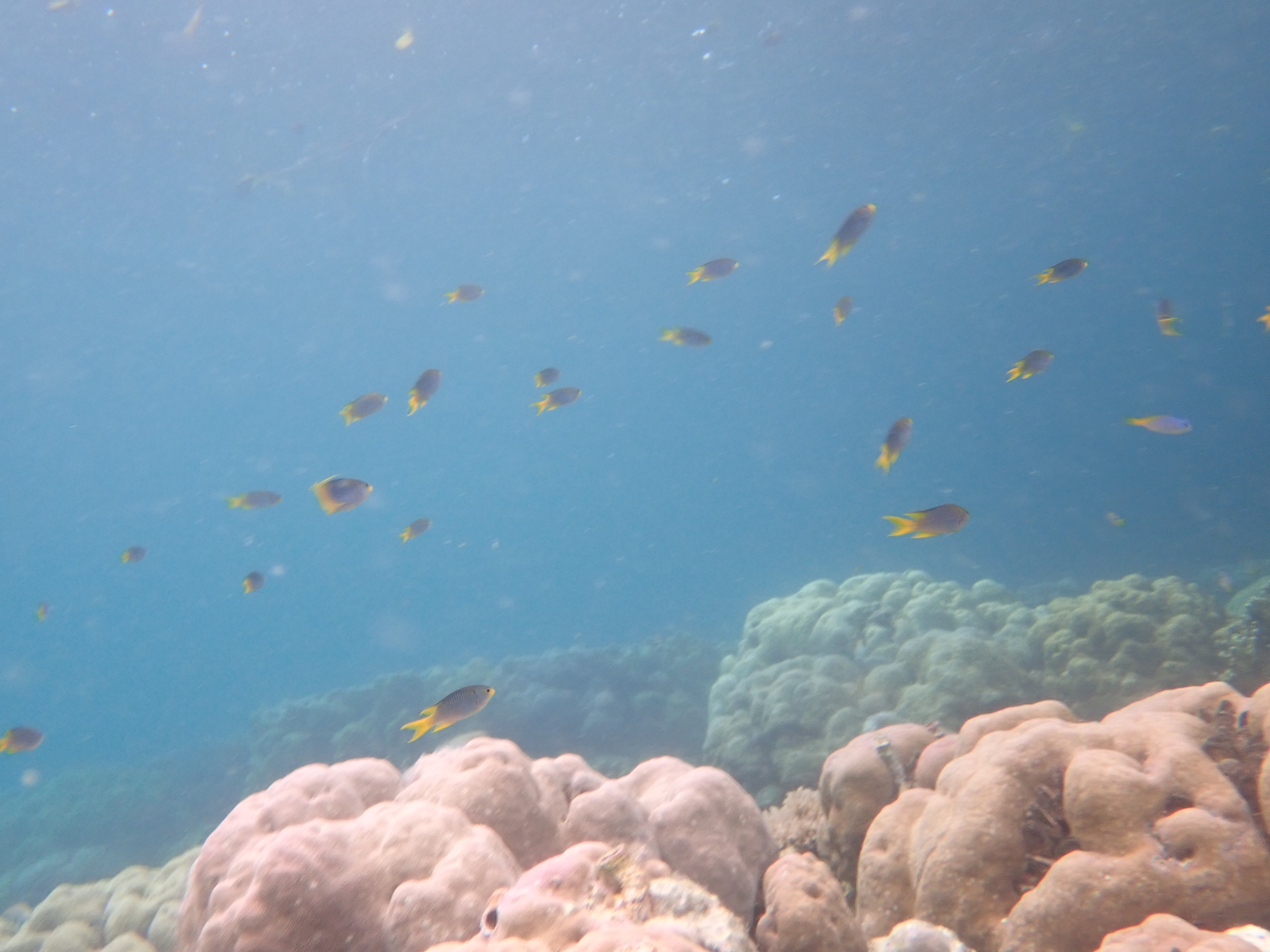 Snorkel in my favorite cove.A group of sardines was swimming well and We enjoyed the underwater world of small fish.
