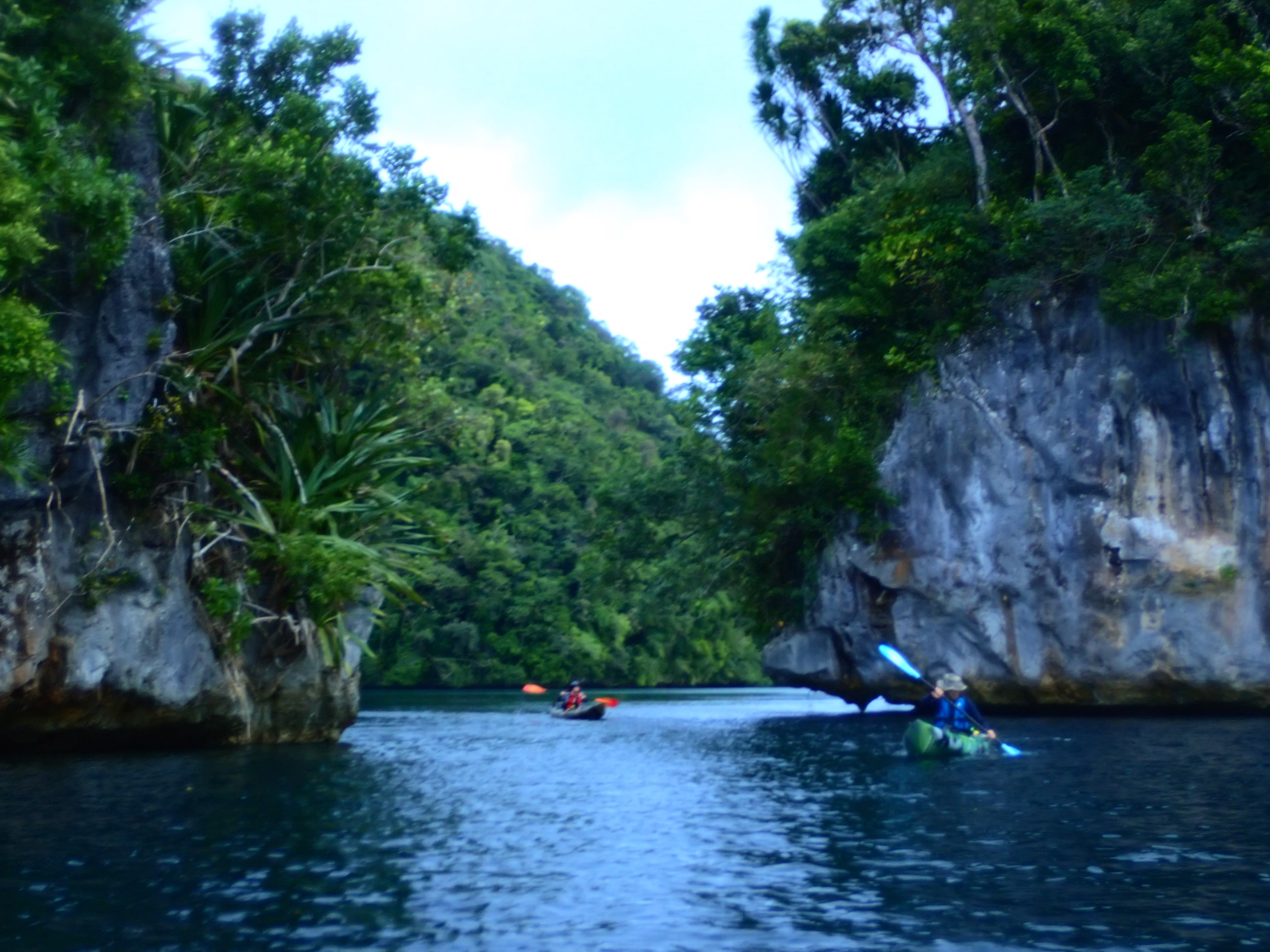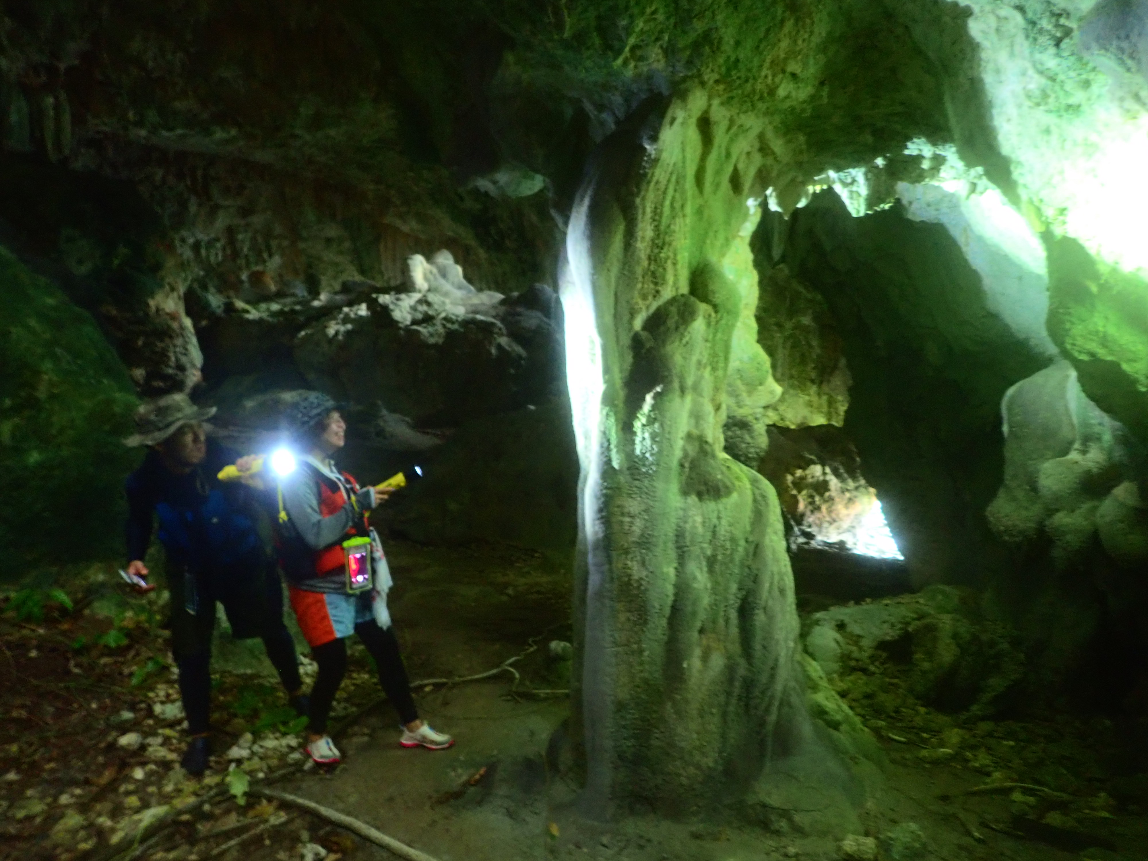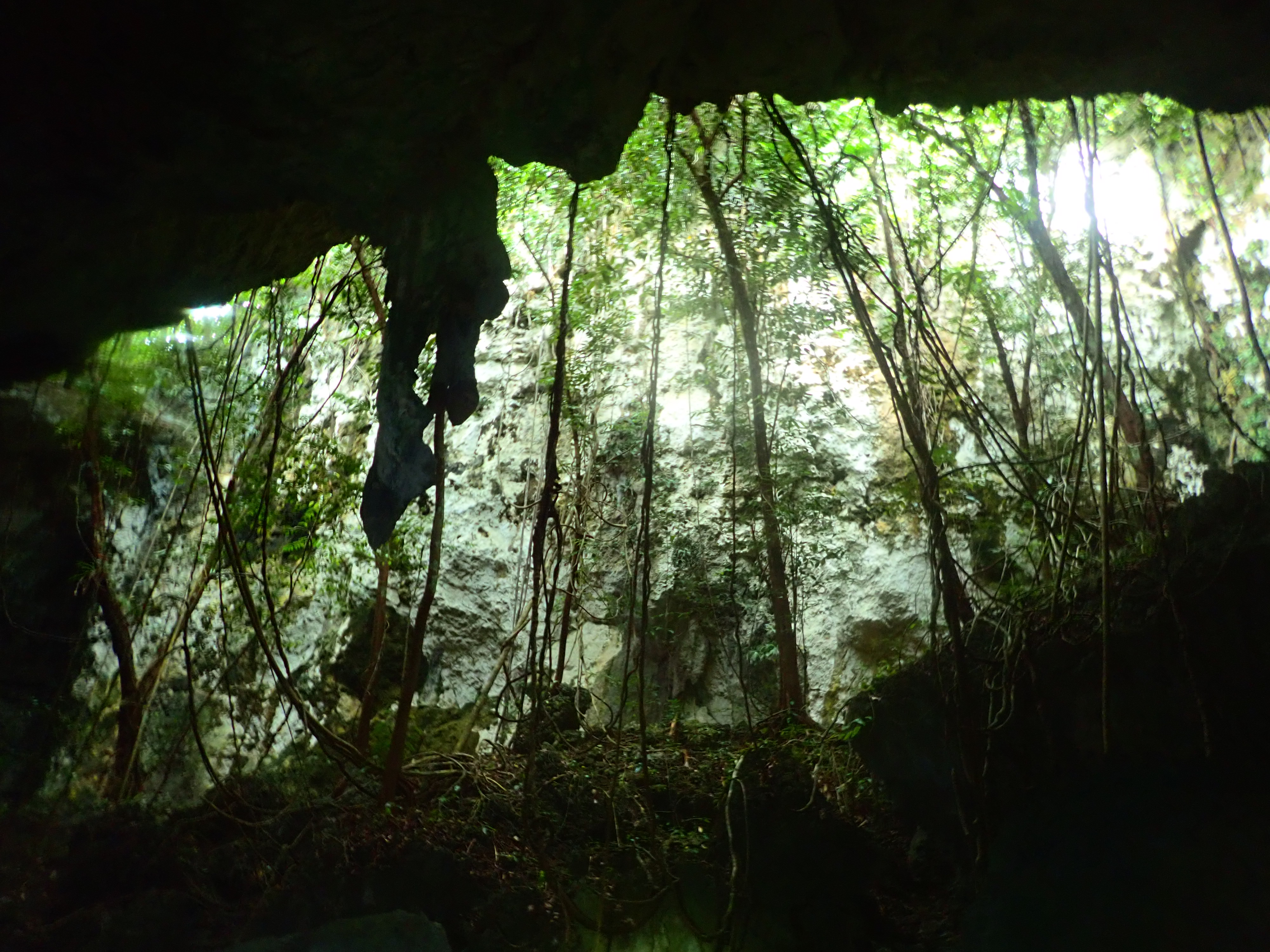 半日で洞窟巡りをしたい!というリクエストにお答えし、パラオ松島の洞窟を巡りました。一か所目はスカイライトケイヴ。日の光が洞窟に差し込むと綺麗な洞窟です。