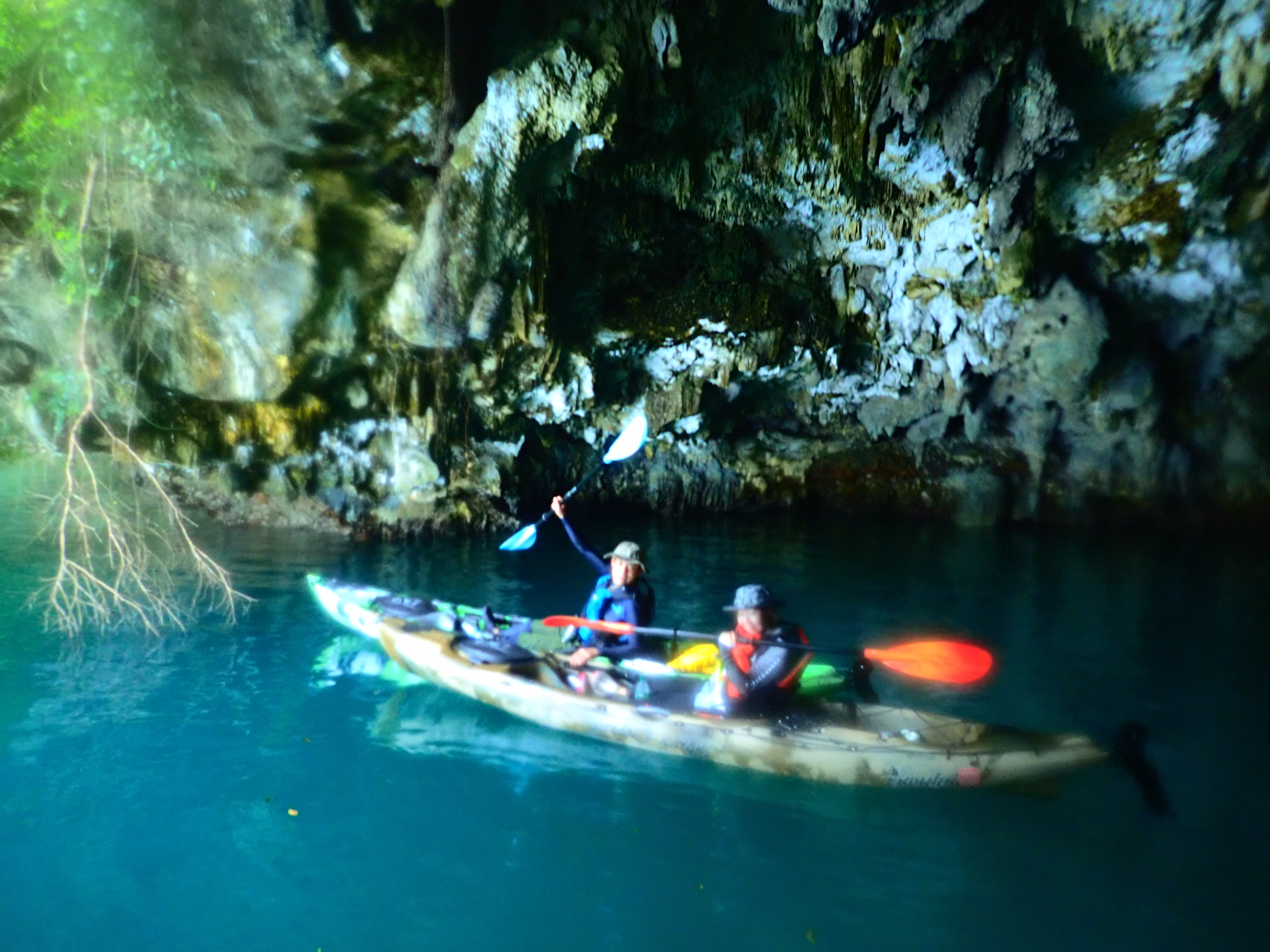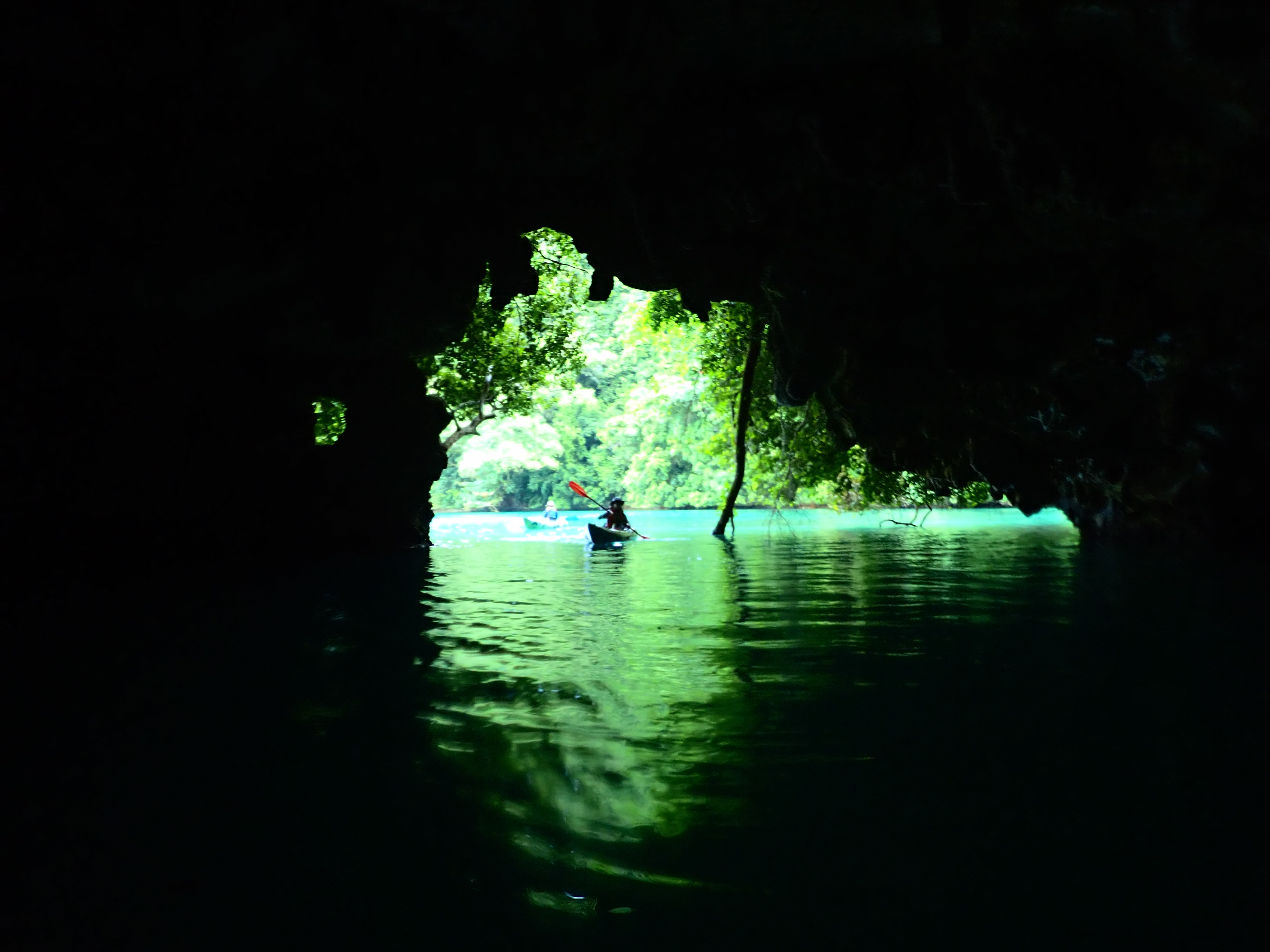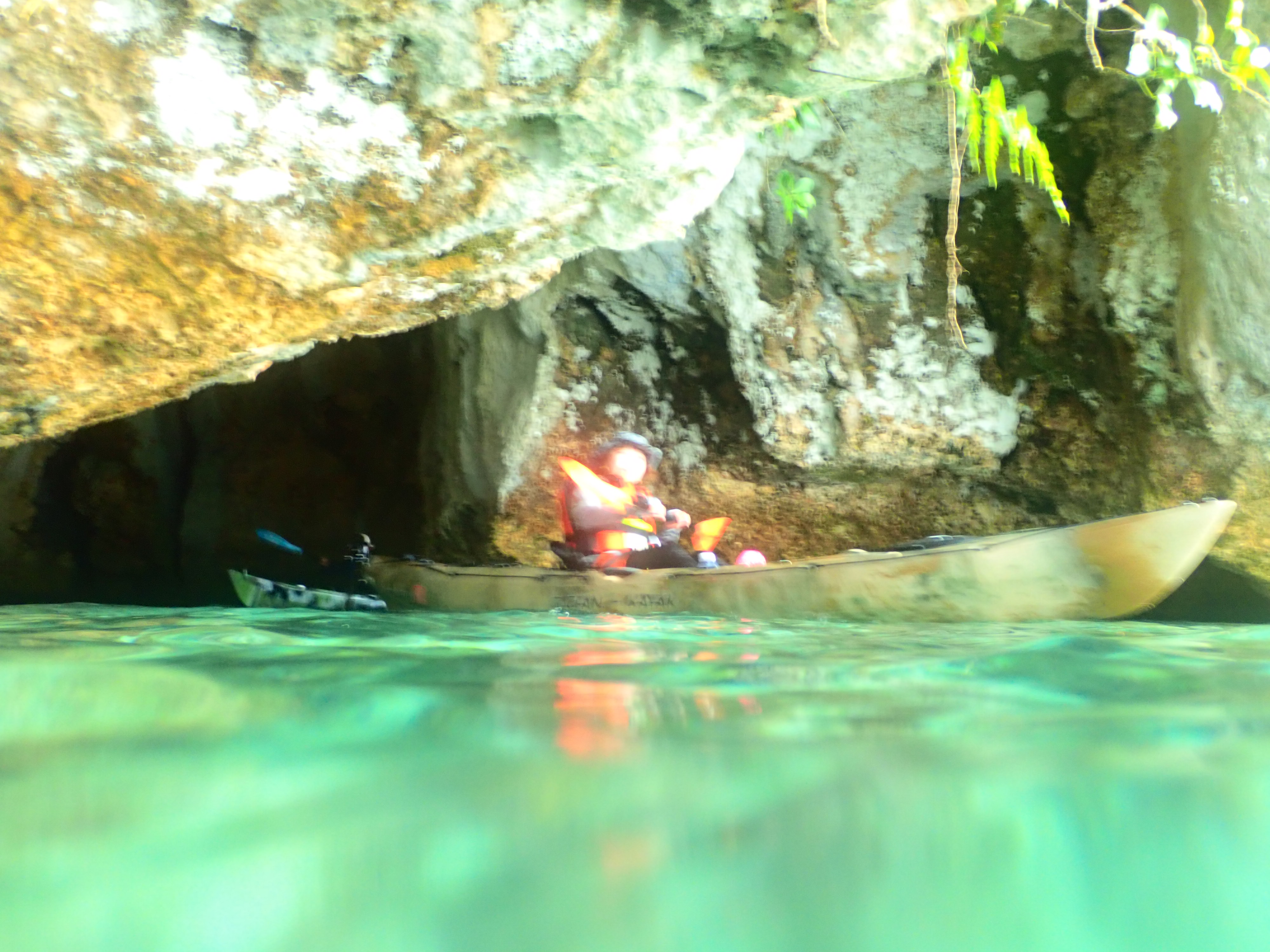 二つ目の洞窟はターザンケイヴ。ここはカヤックを降りて洞窟を探検しています。