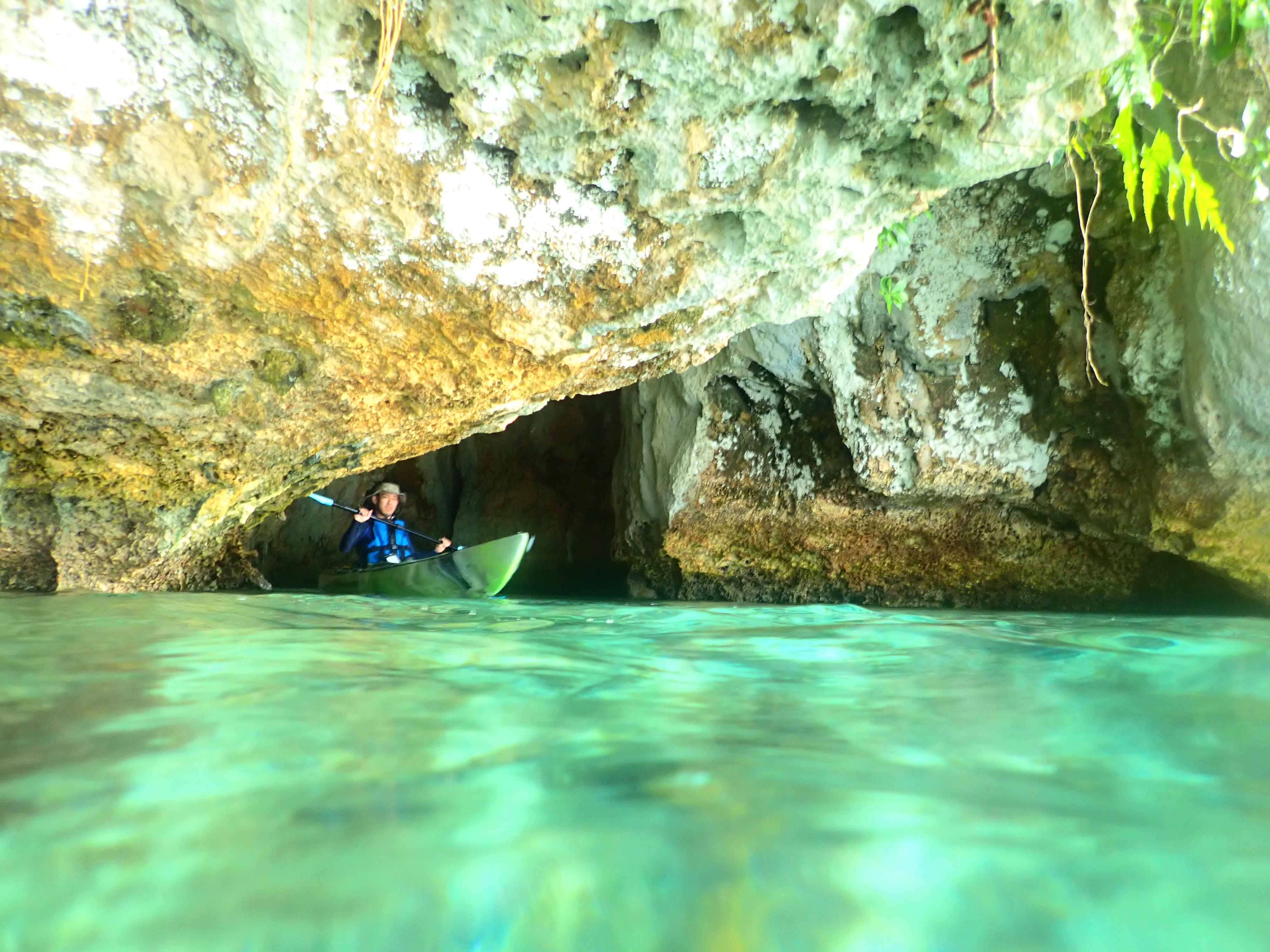 スタート時はシングルカヤックの仕組みに困惑気味でしたが、後半見違えたように上手になっていた今日のお客様。なんとかリクエストの洞窟を巡れて良かったです。ご希望の方はスノーケル無しであれば半日でも洞窟巡り、出来ますよ~♪ただし、体力によります!