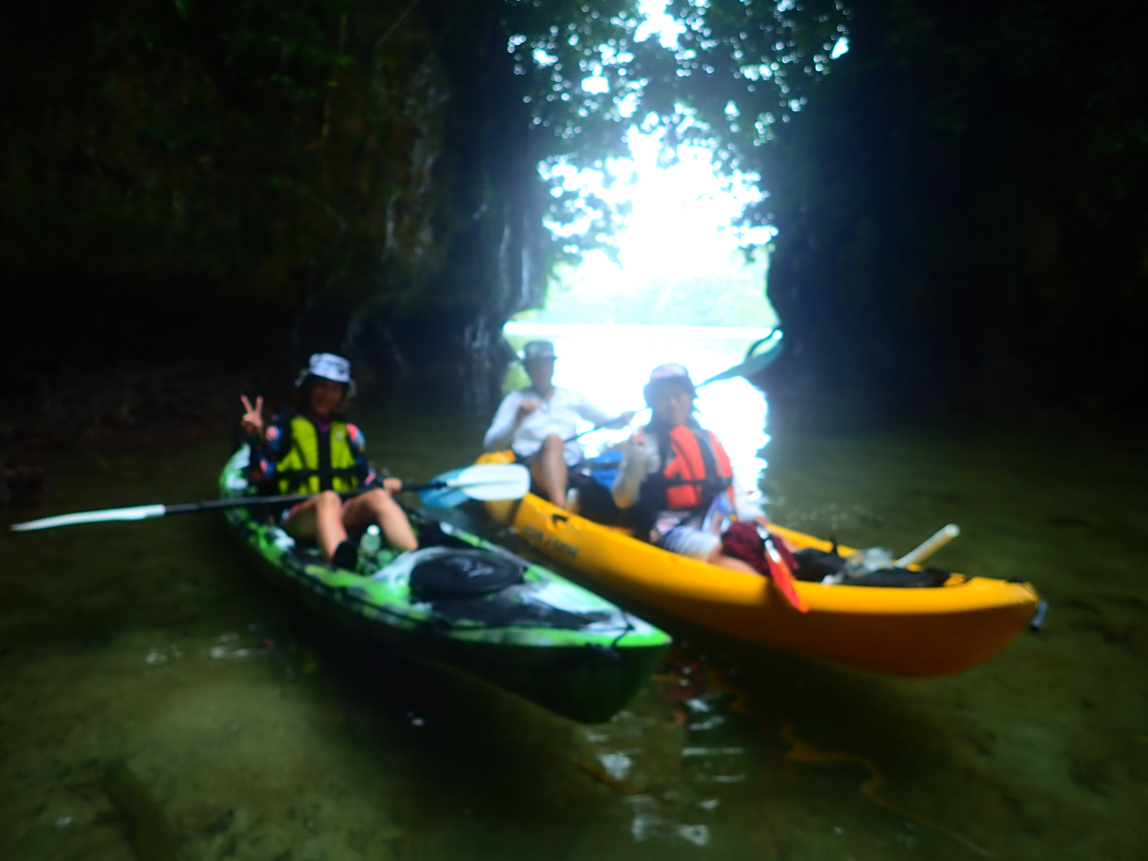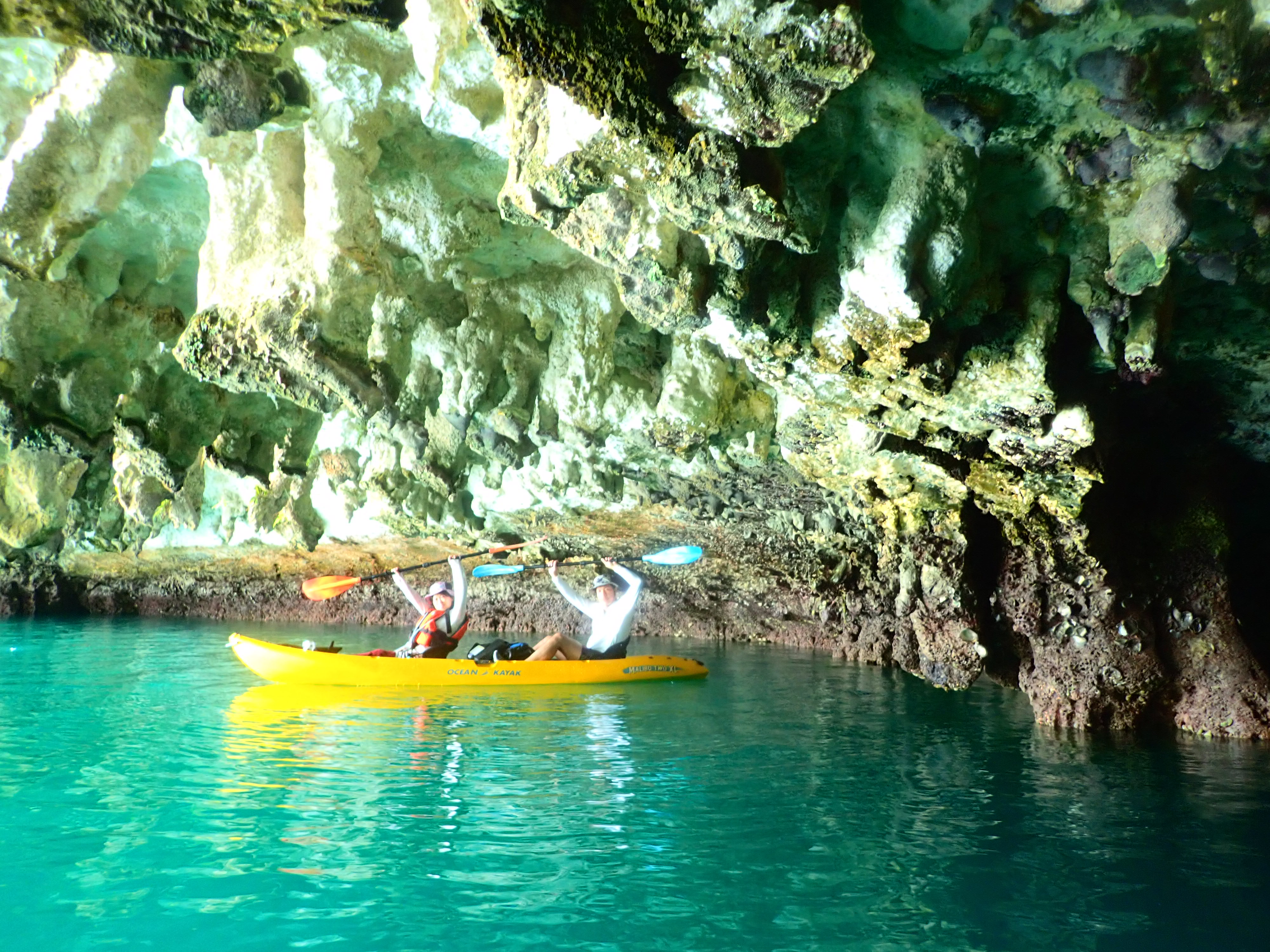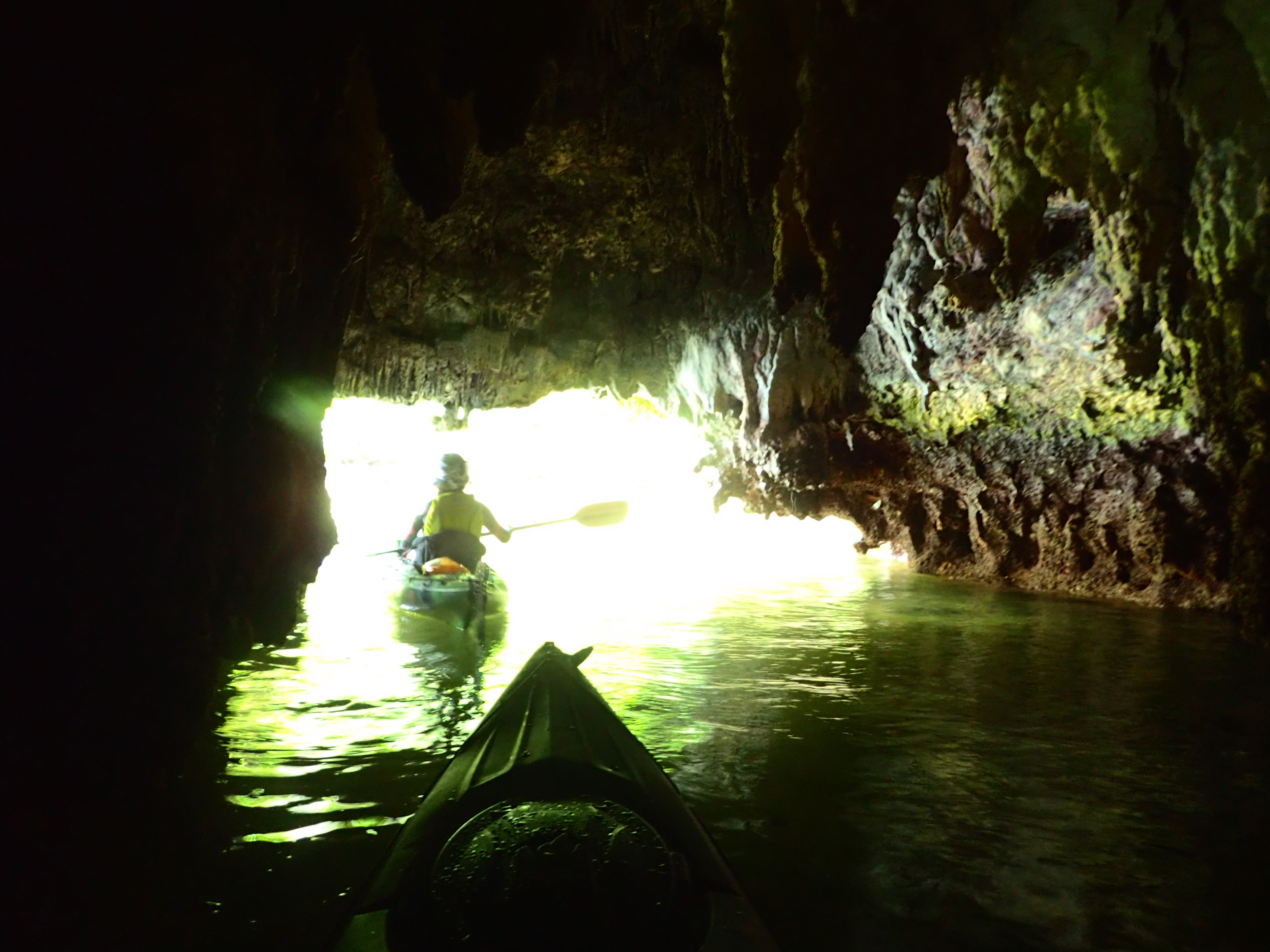 午後はカヤックで入れる洞窟へ。今日は潮位が低かったので、洞窟の奥の方にも行くことが出来ました。