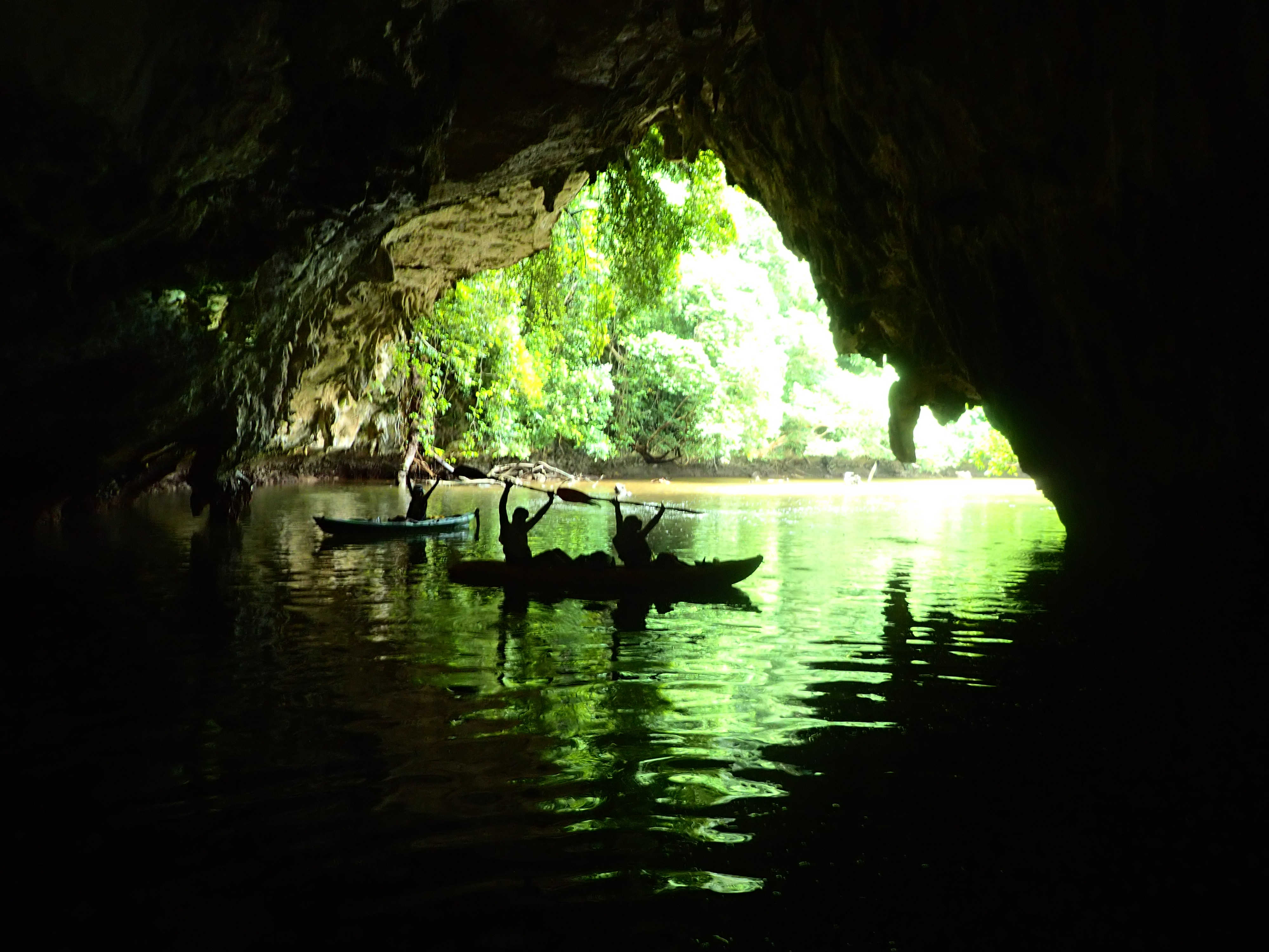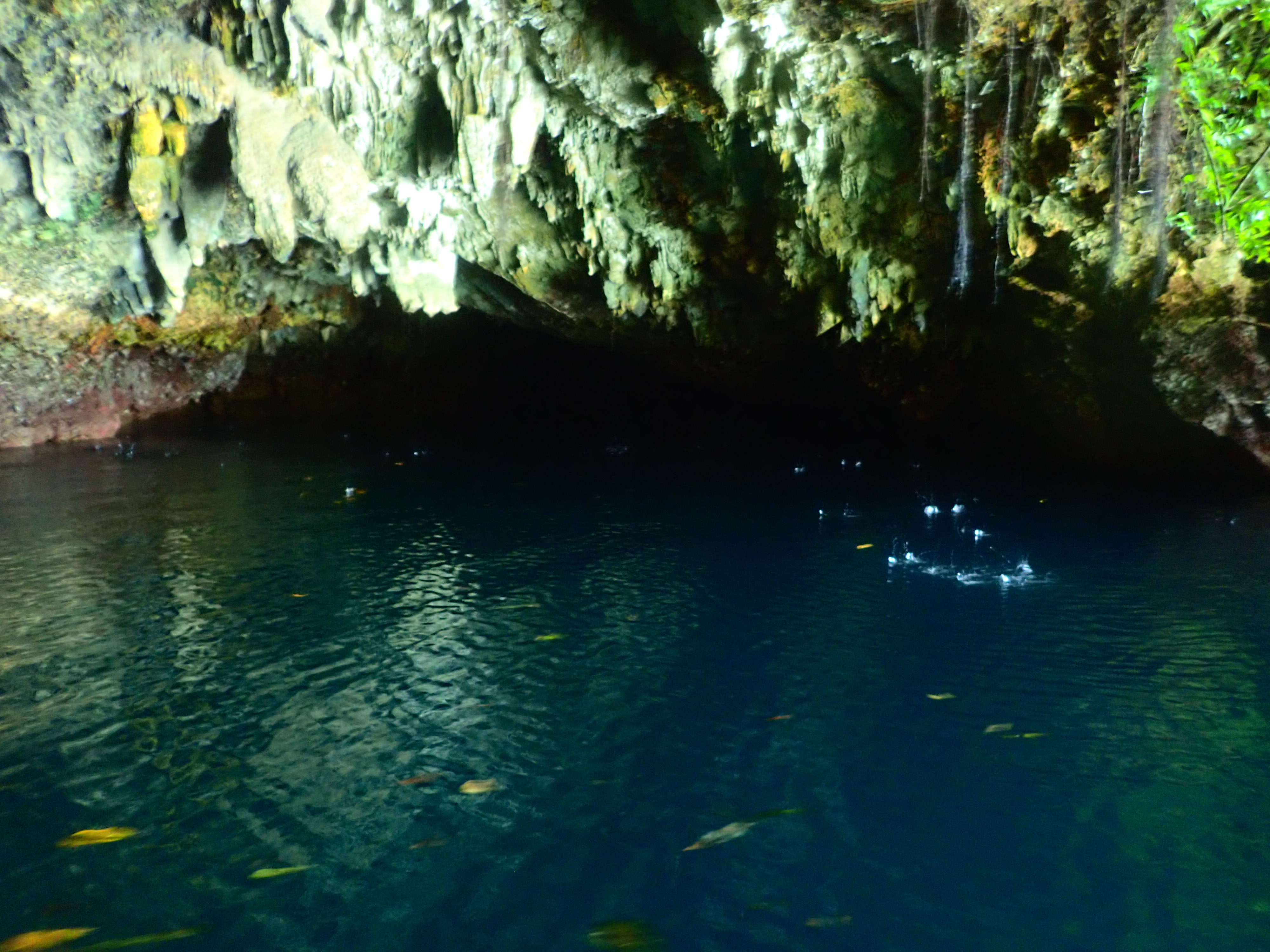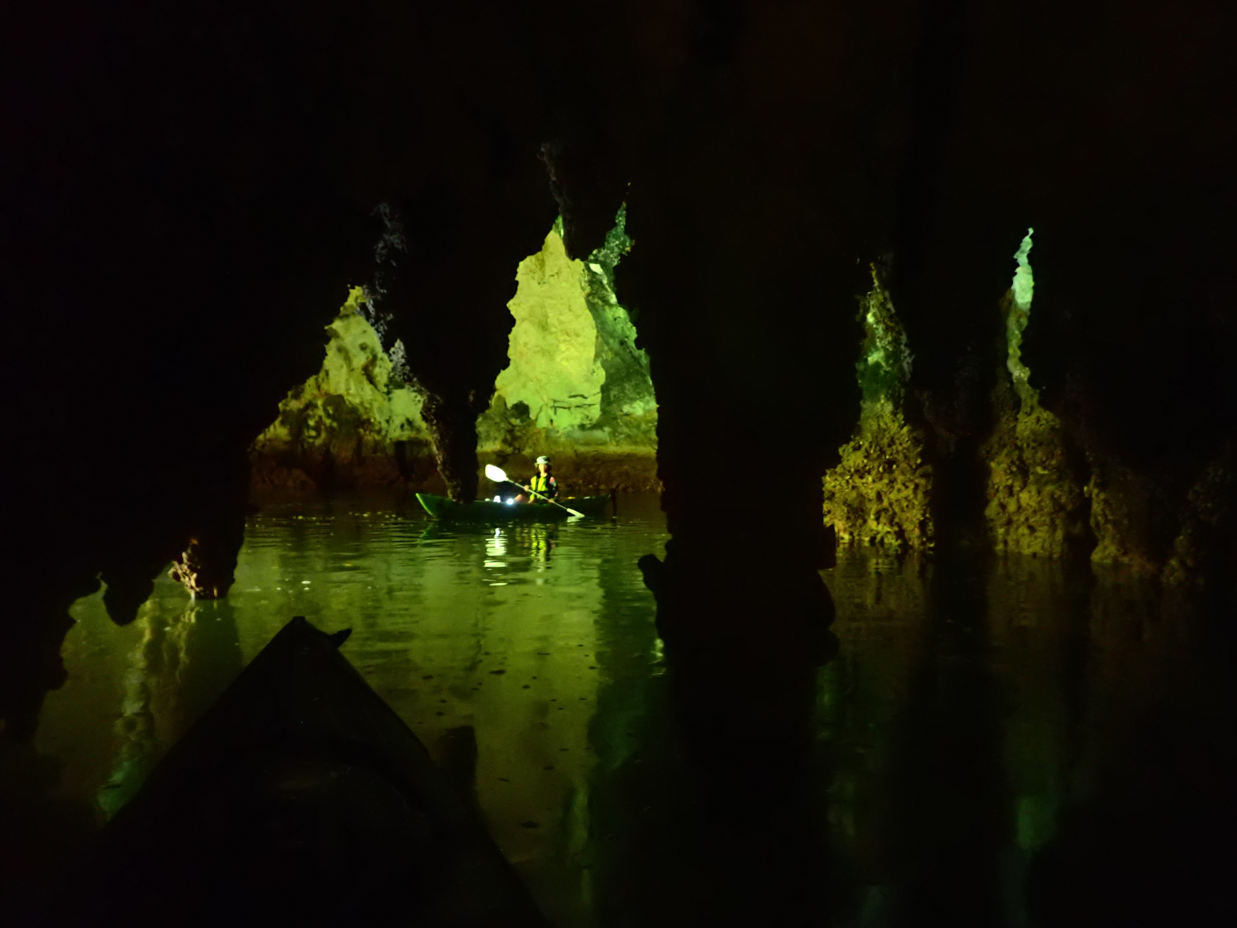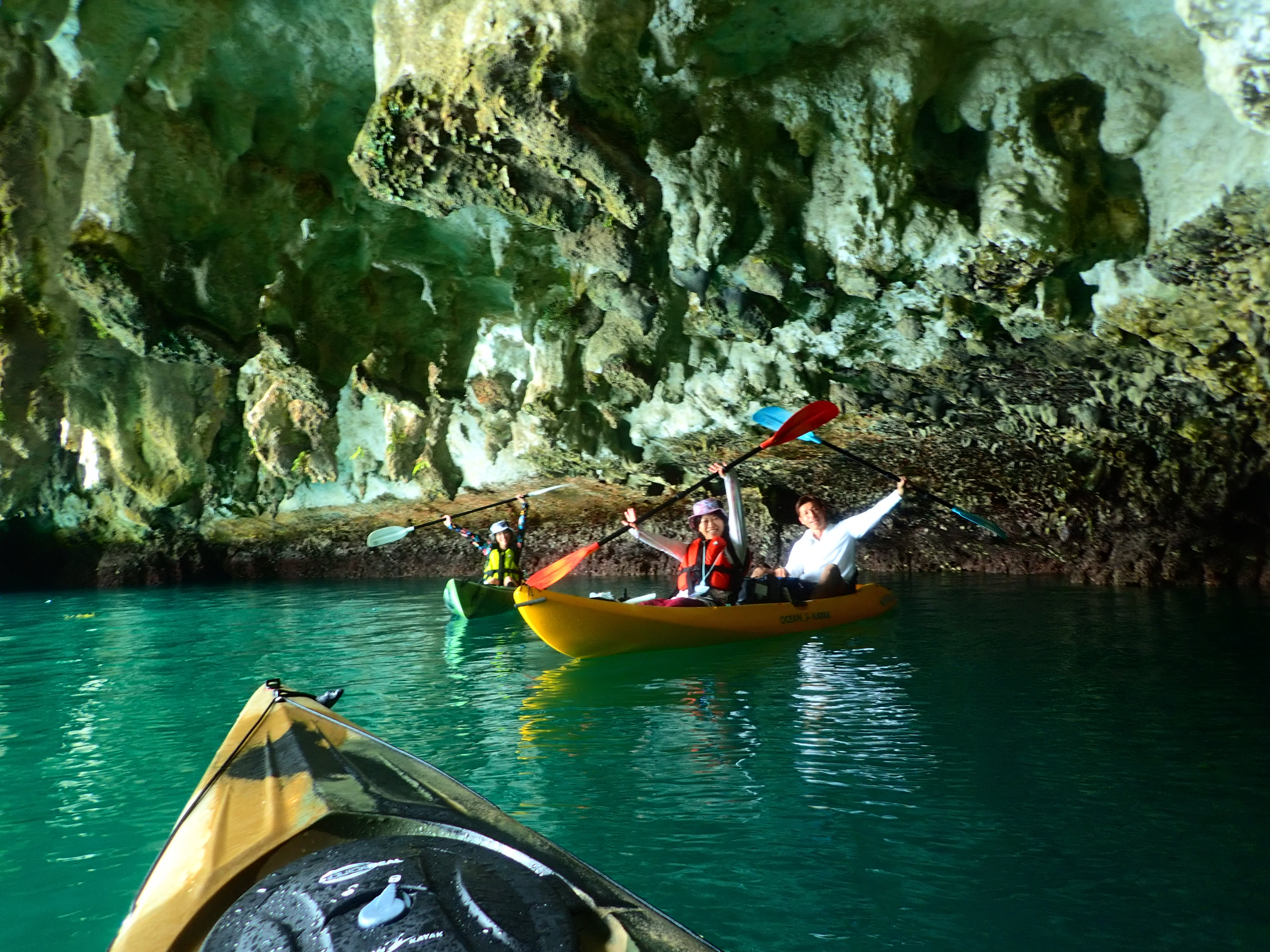 午後はカヤックで入れる洞窟へ。今日は潮位が低かったので、洞窟の奥の方にも行くことが出来ました。