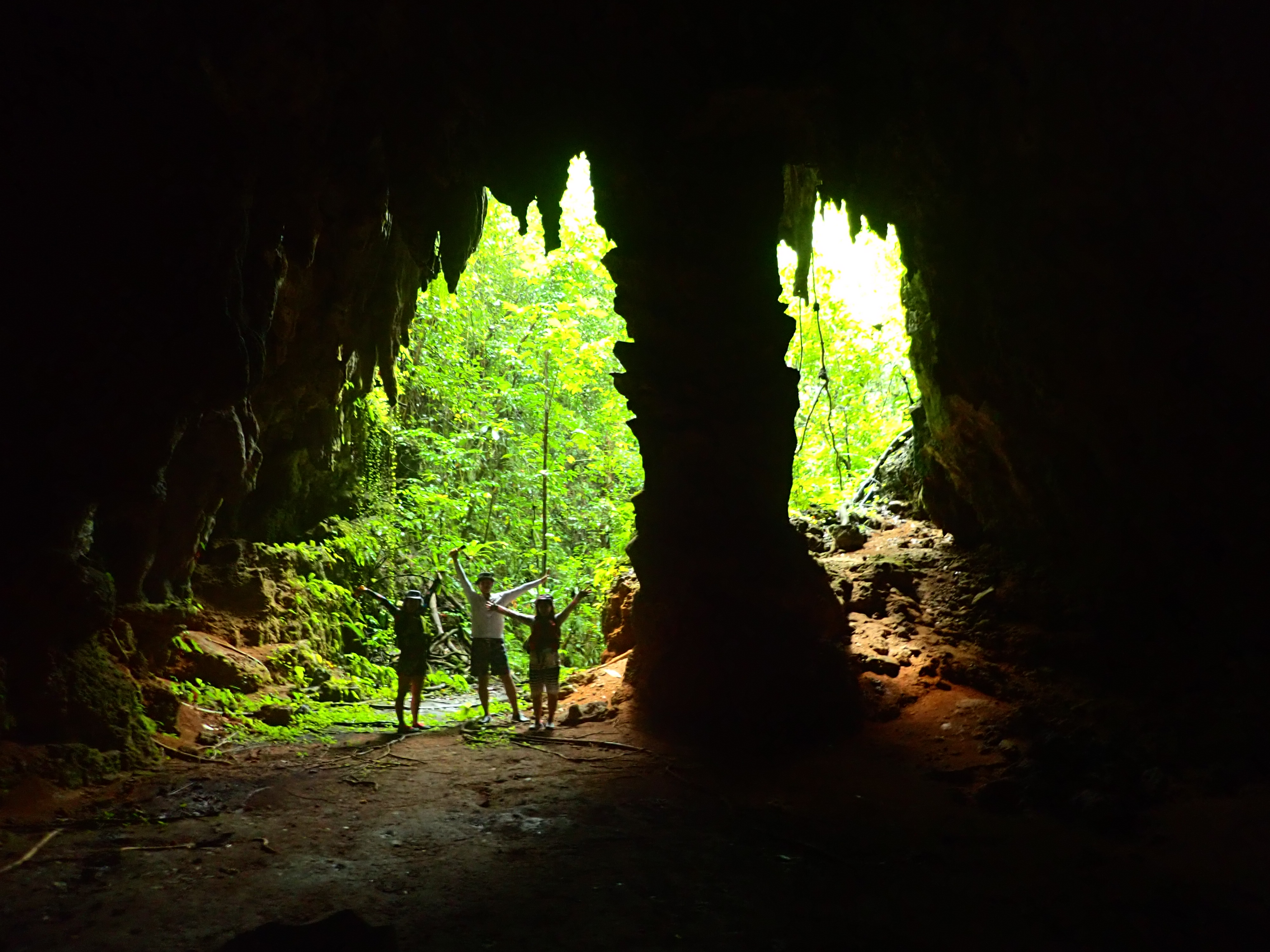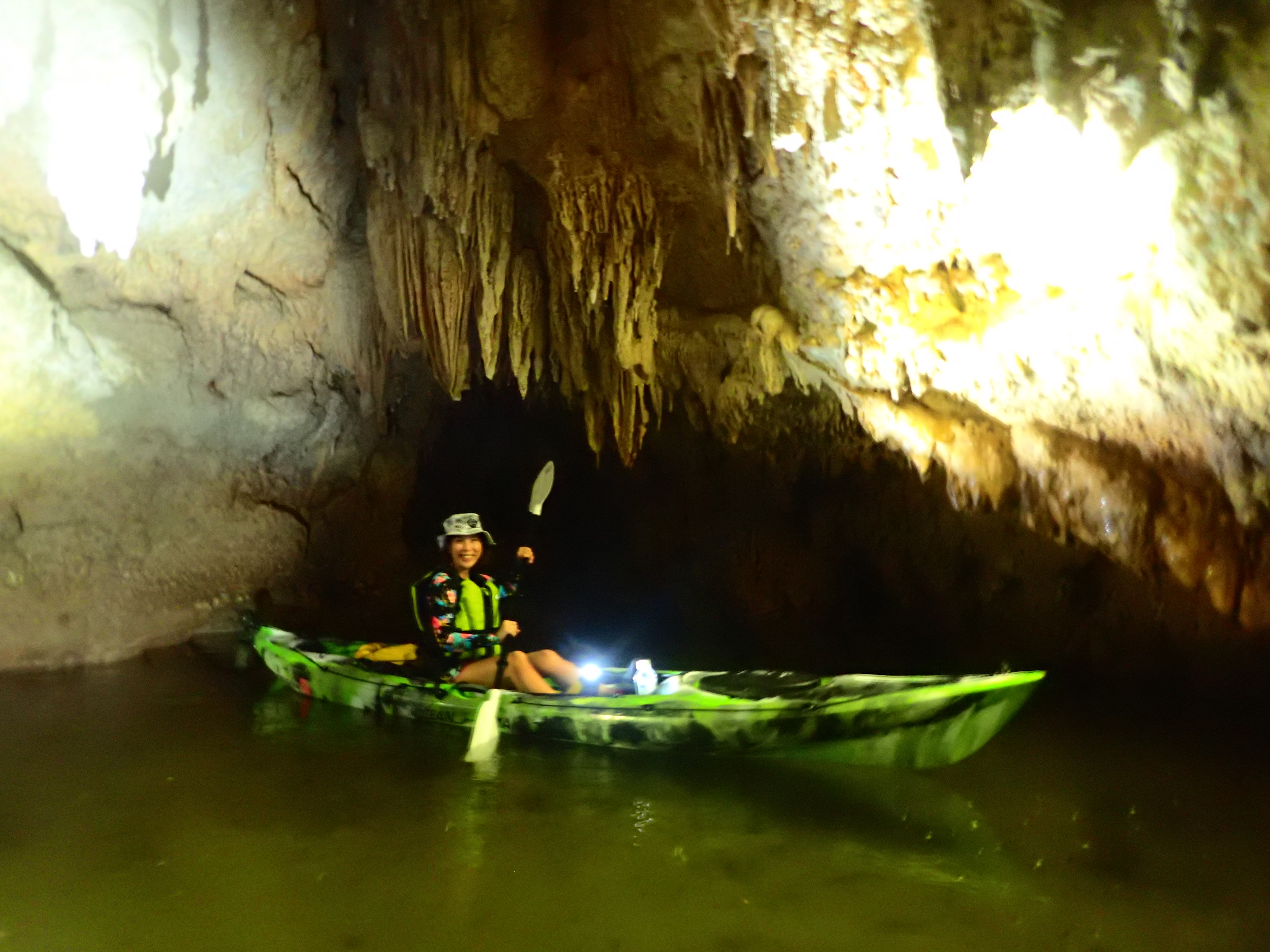 アイライ州は日本統治時代に所縁のある場所が多数あり、カヤックでもそのいくつかに訪れる事ができます。こちらは塩工場跡の洞窟。中は真っ暗ですが、ライトを持っていけば、奥の方まで散策する事ができます。