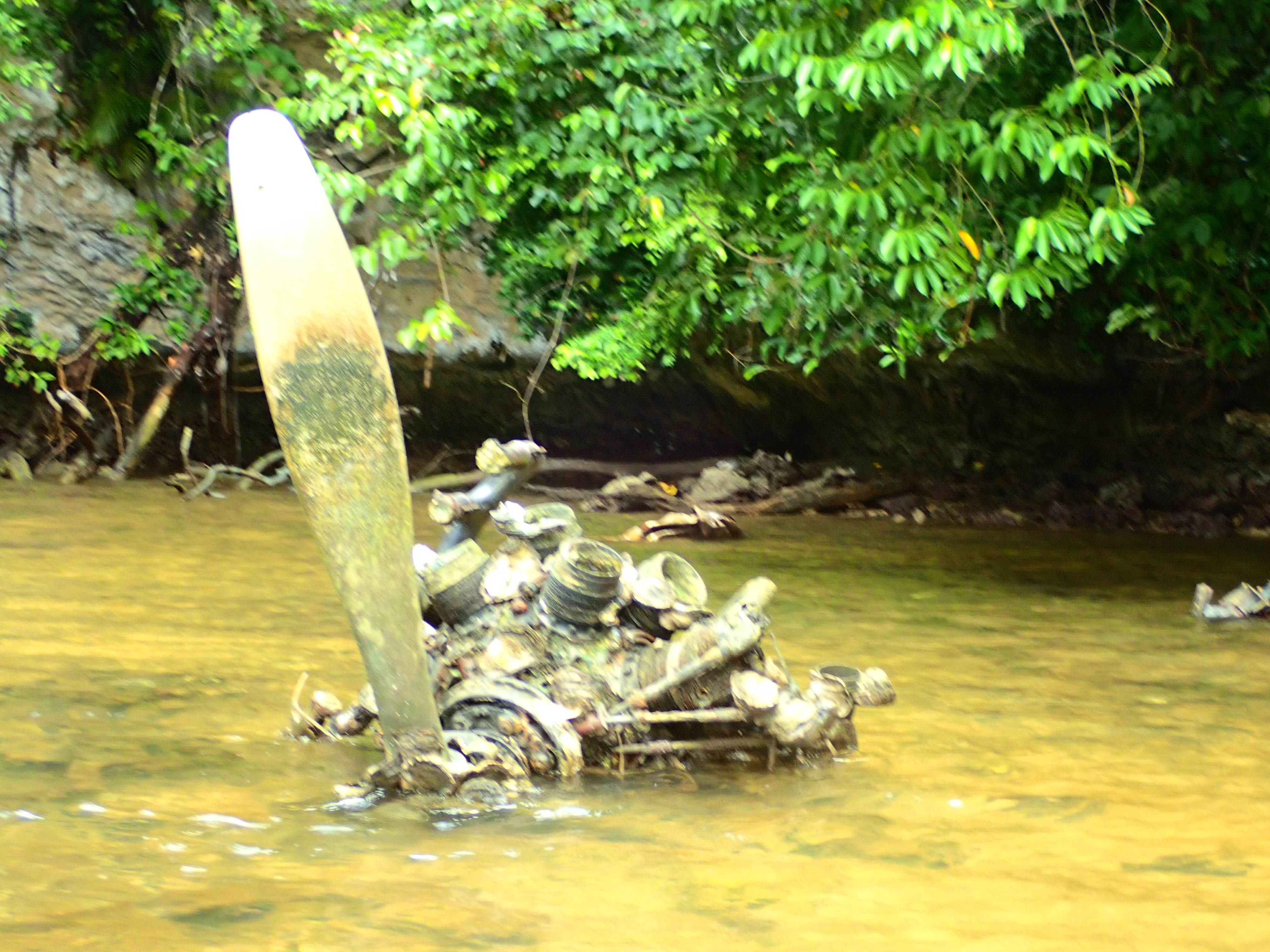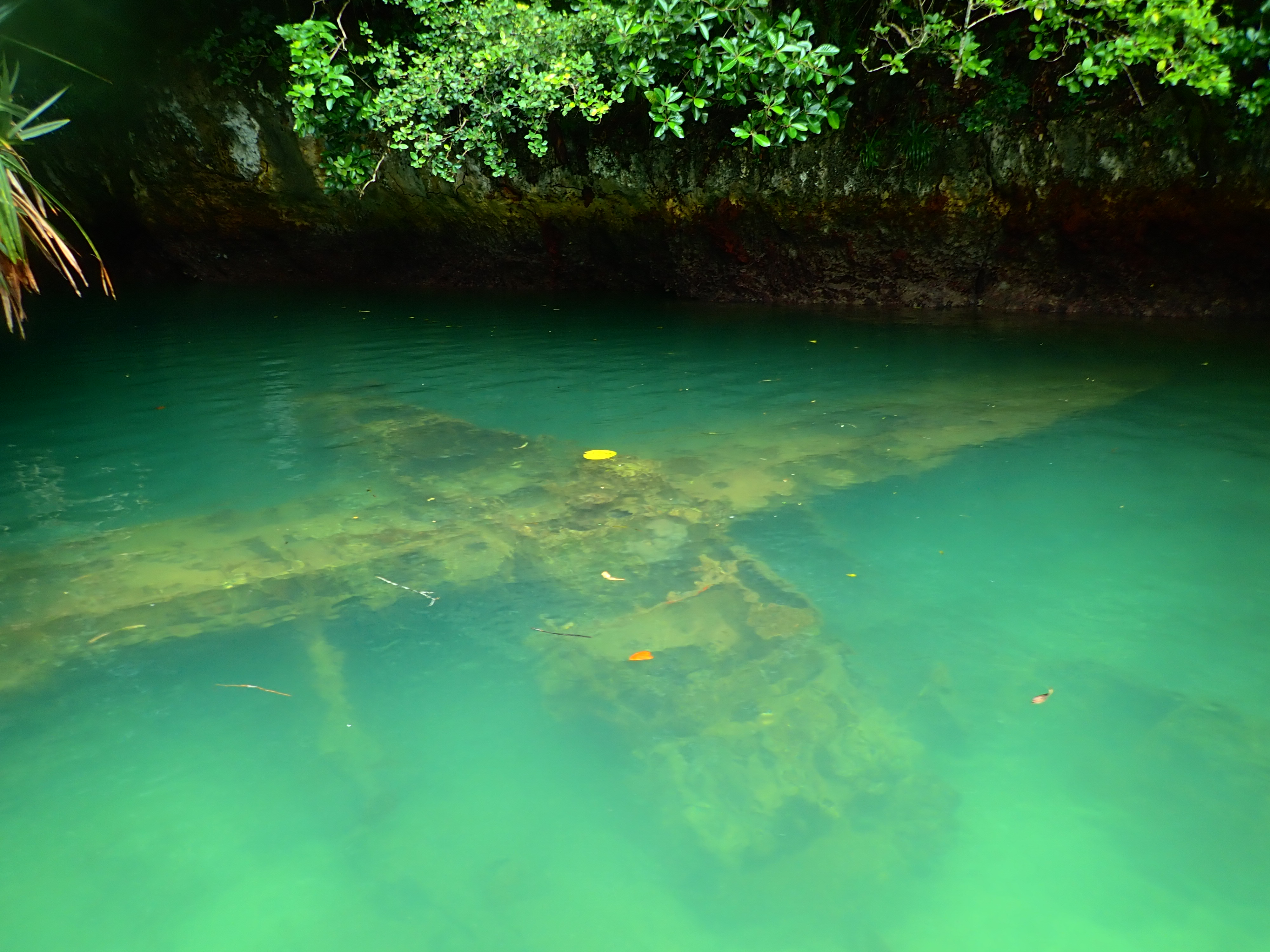 海に沈んだ太平洋戦争の戦跡、零式水偵。形がしっかりと今も残っています。今日は潮位が低くスノーケルしなくても良く見えました。ご希望の方はスノーケルで見る事も出来ます。