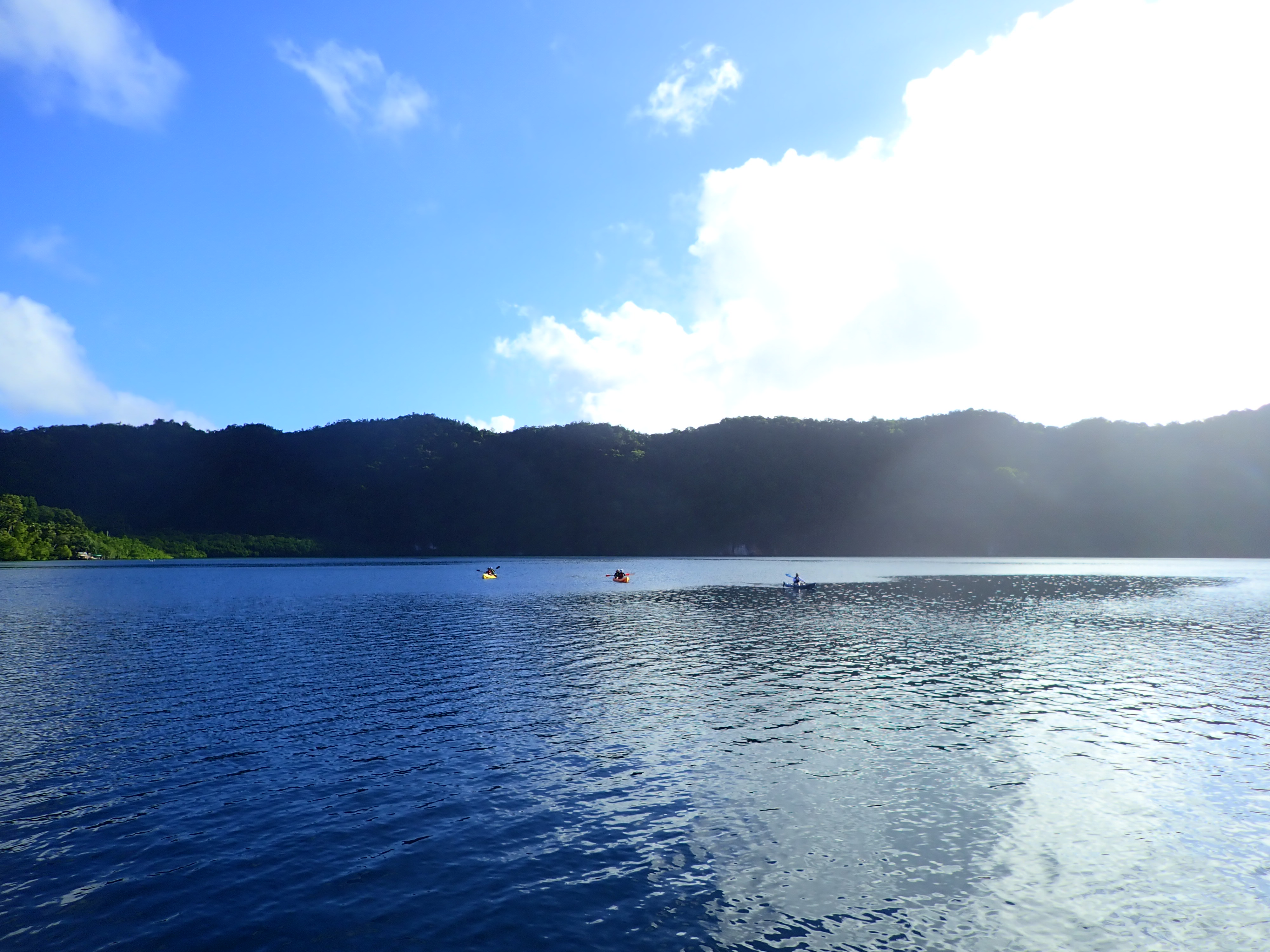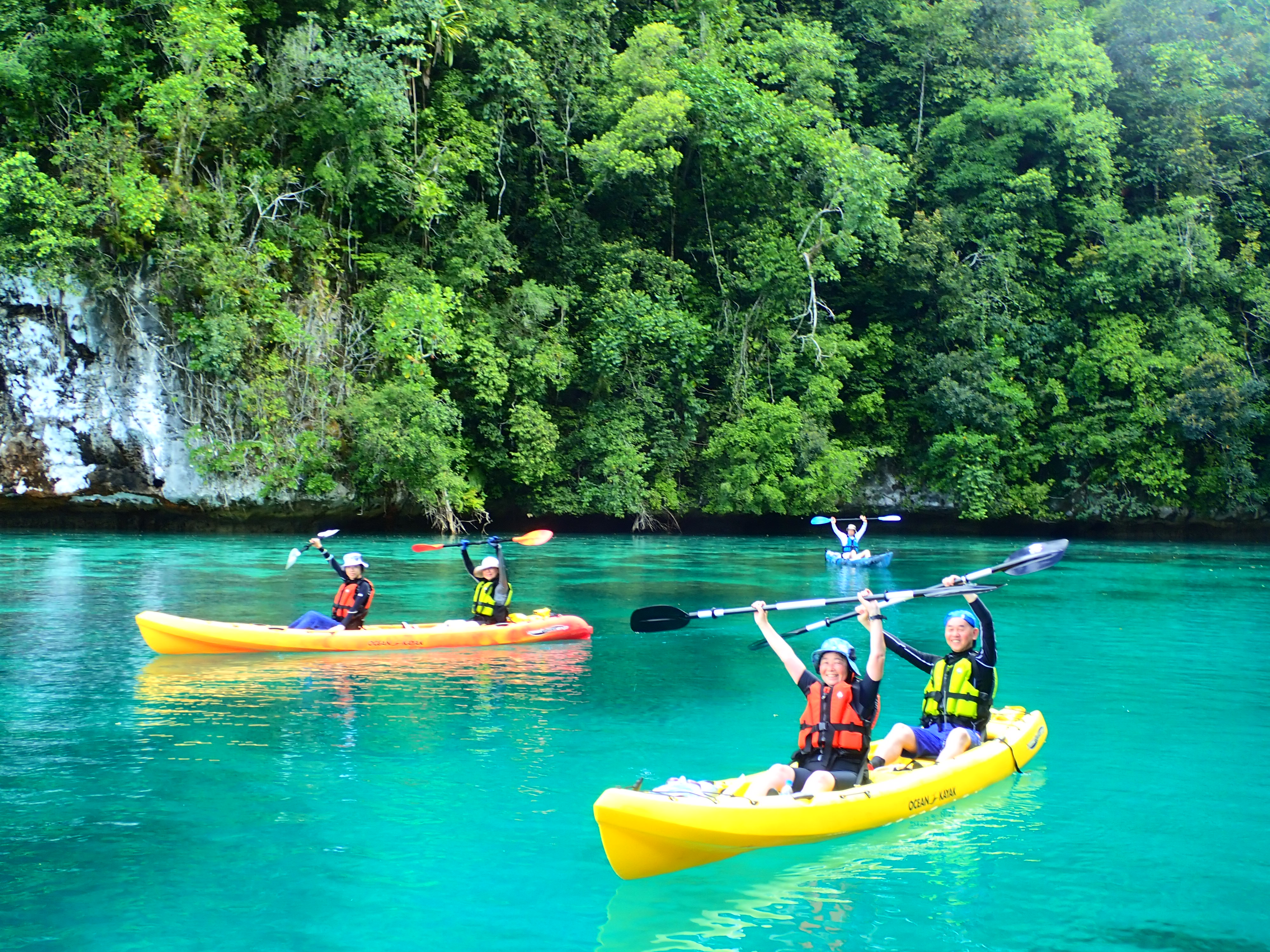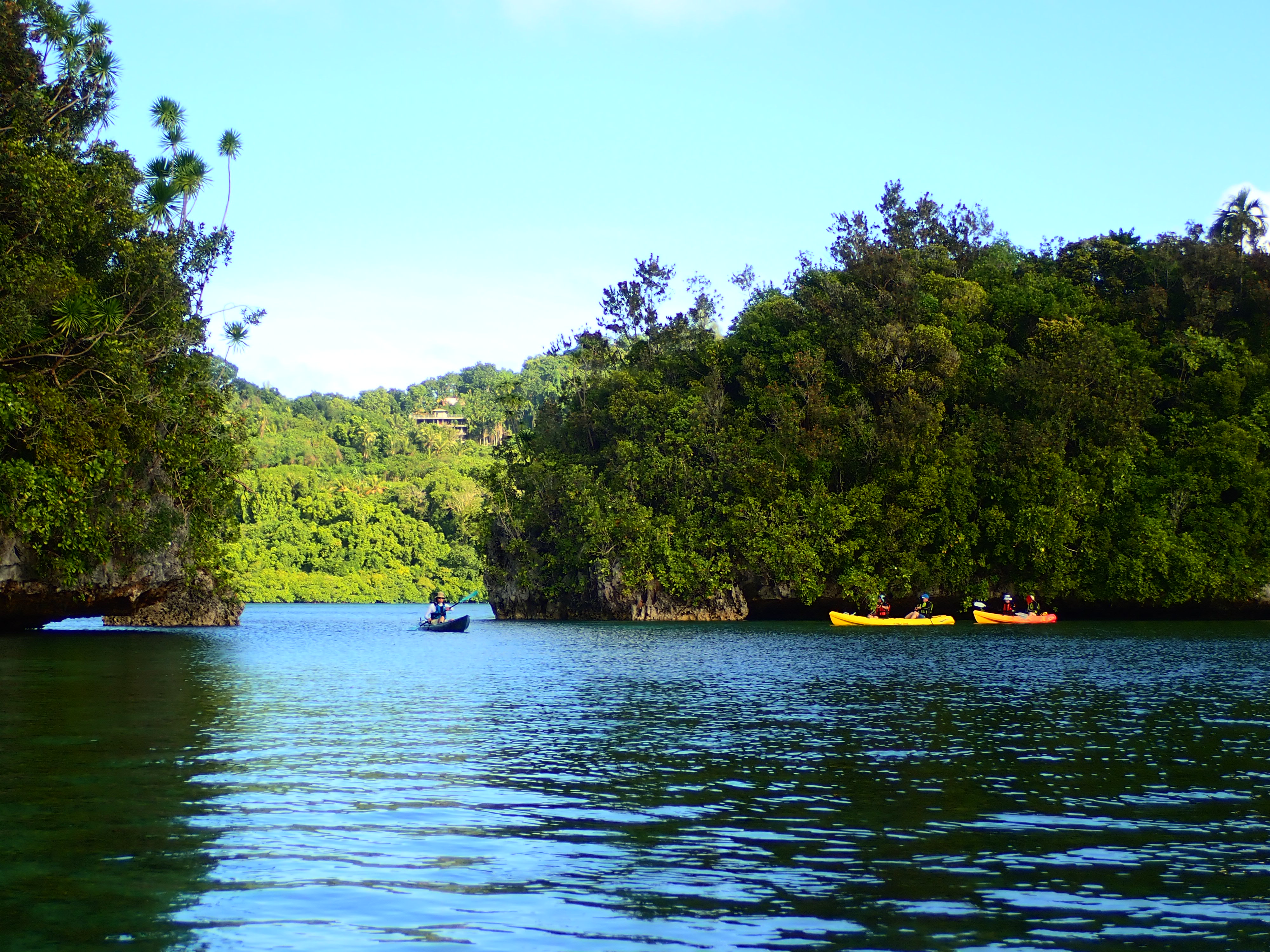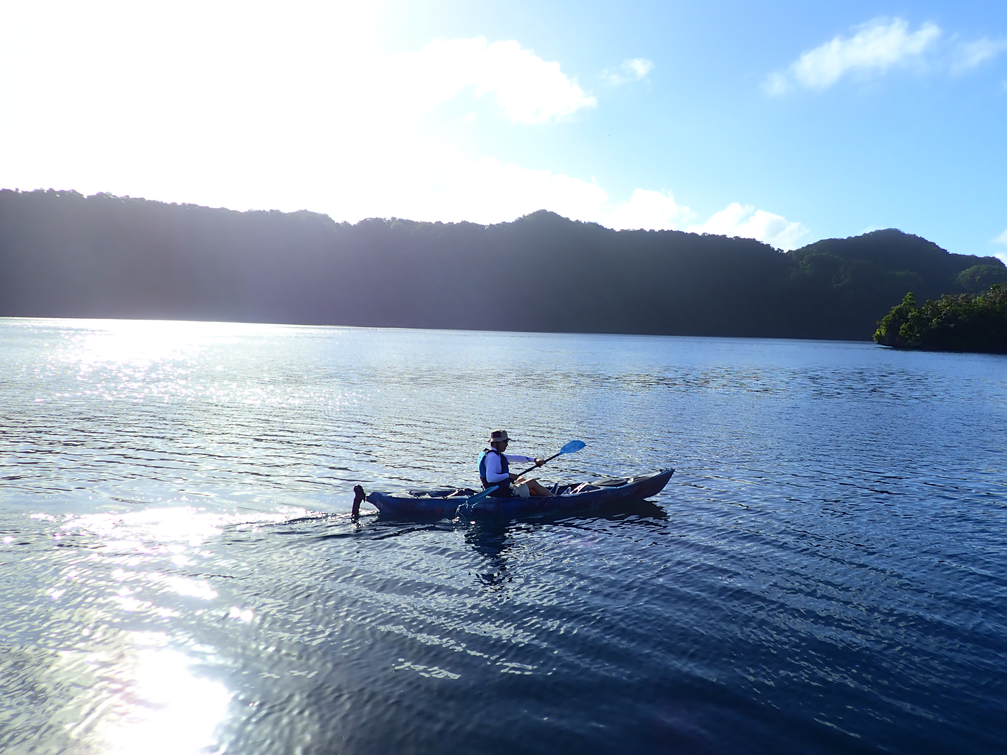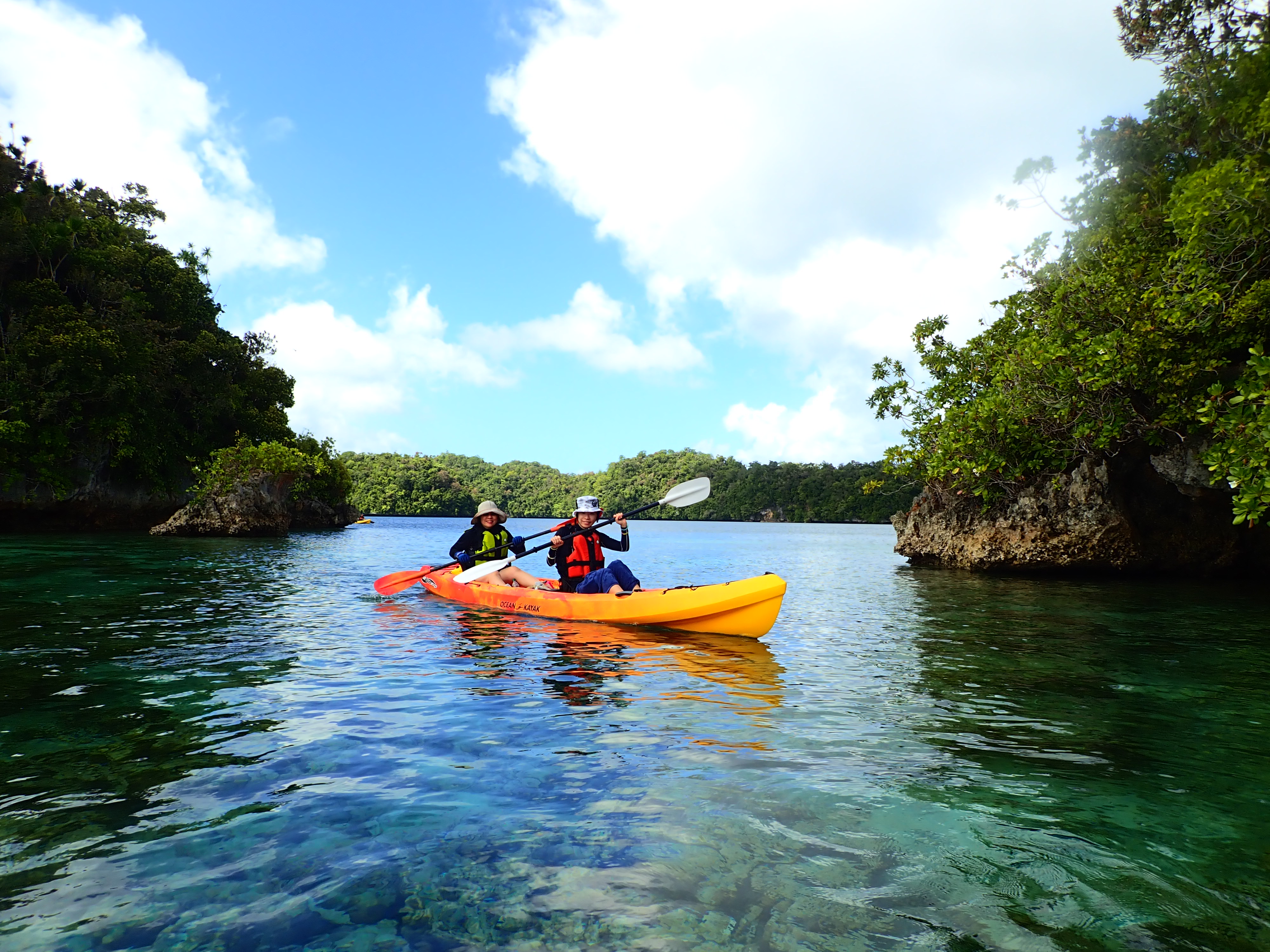 午前のお客様は皆さま帰国が同日午後という事で少々早いスタートのツアーになりました。いつもより少し早い時間のパラオ松島、朝の清々しい空気の中のカヤックは気持ちが良いです。
