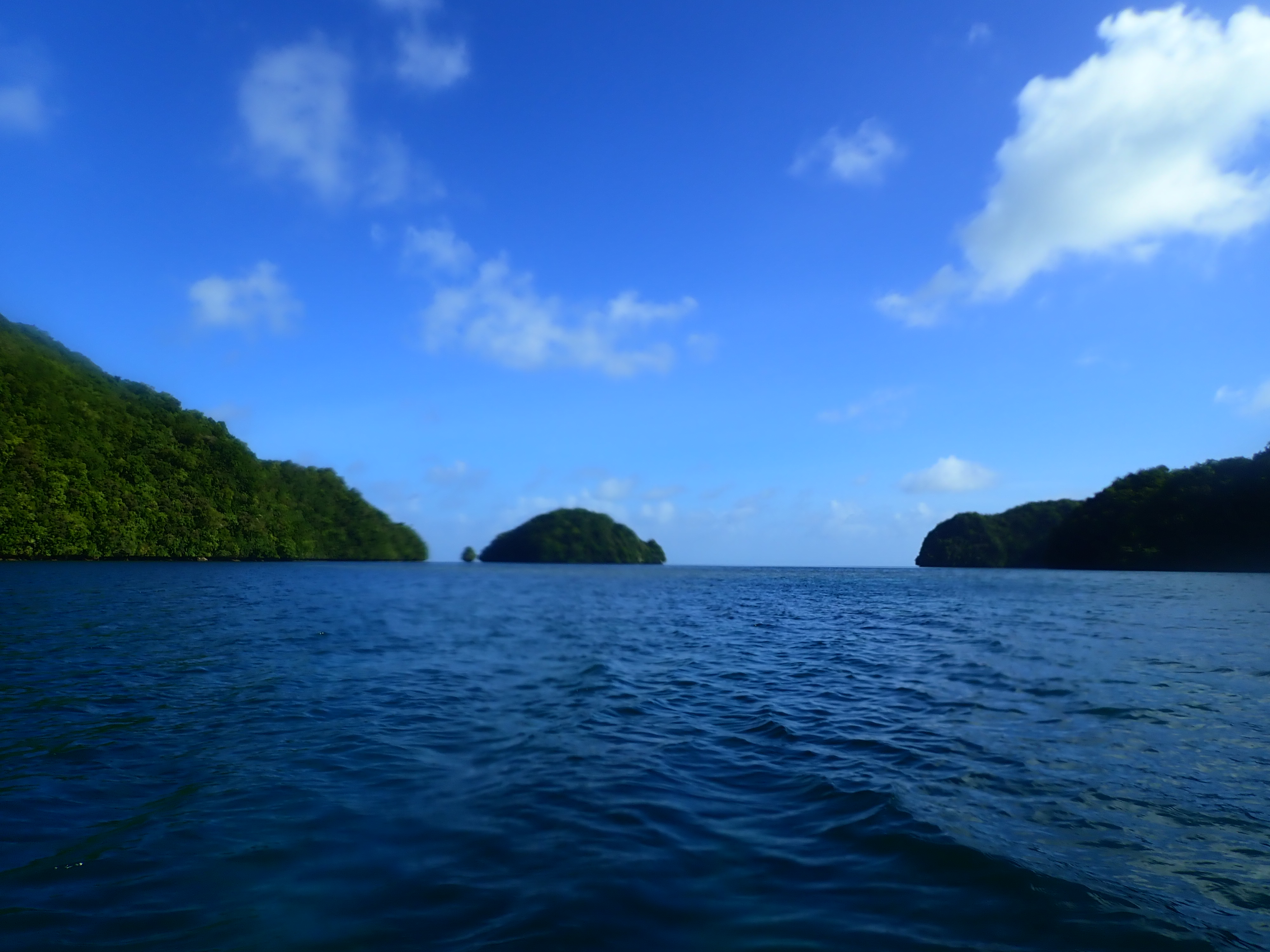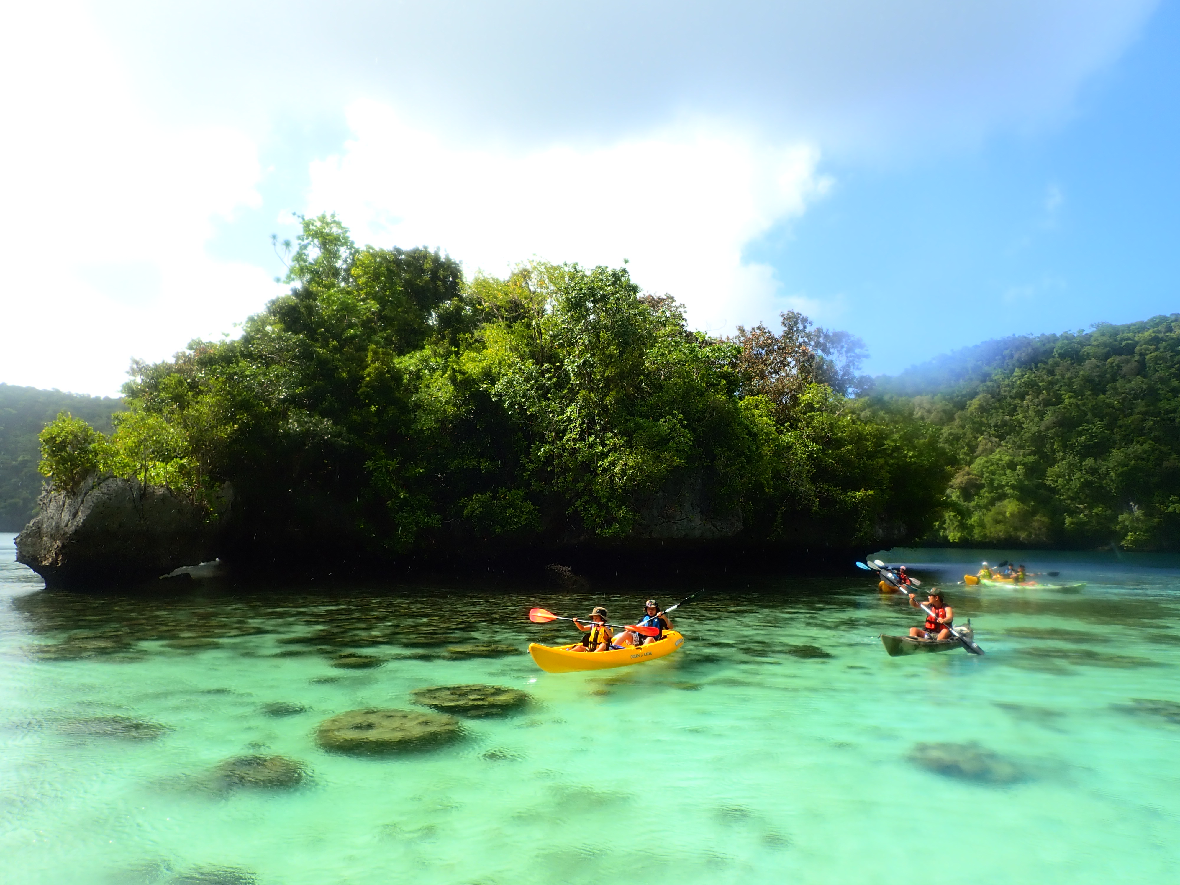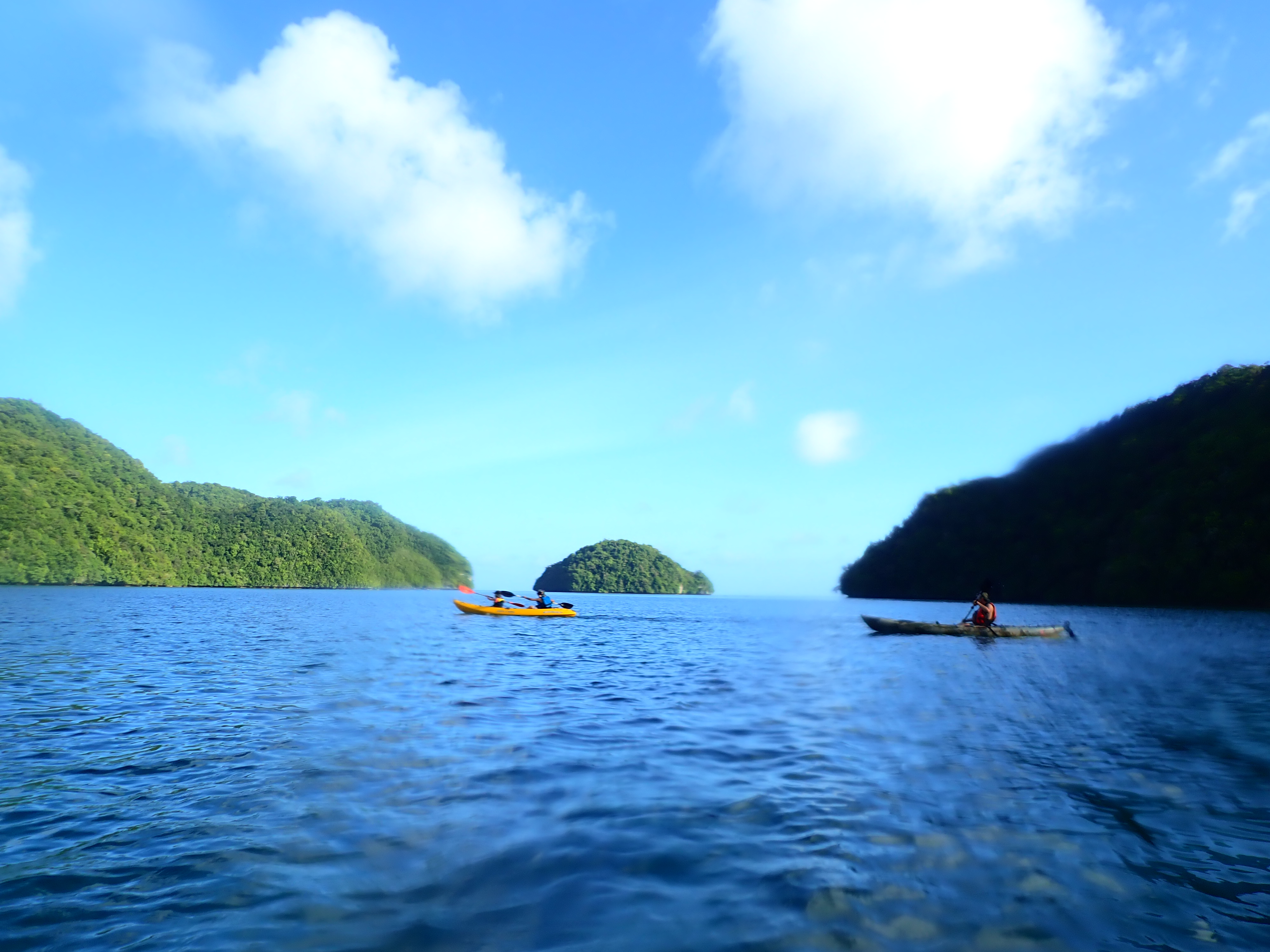 ちょっと傾いてきた西日に向かって、元気に漕ぎました。やはり晴れの日のパラオは綺麗です。今回のお正月は前半天気に恵まれず、今日は今年一番の青空になりました。