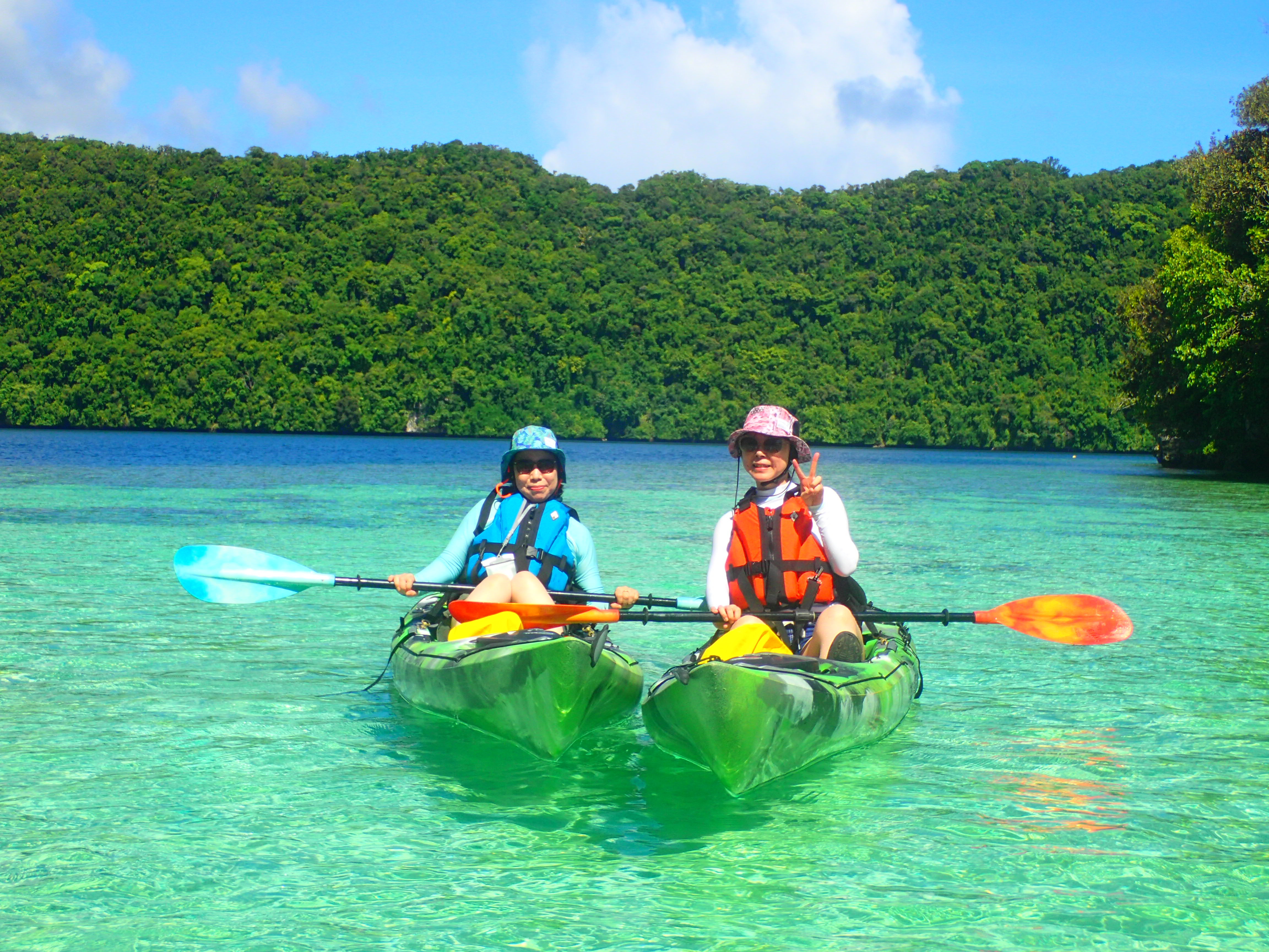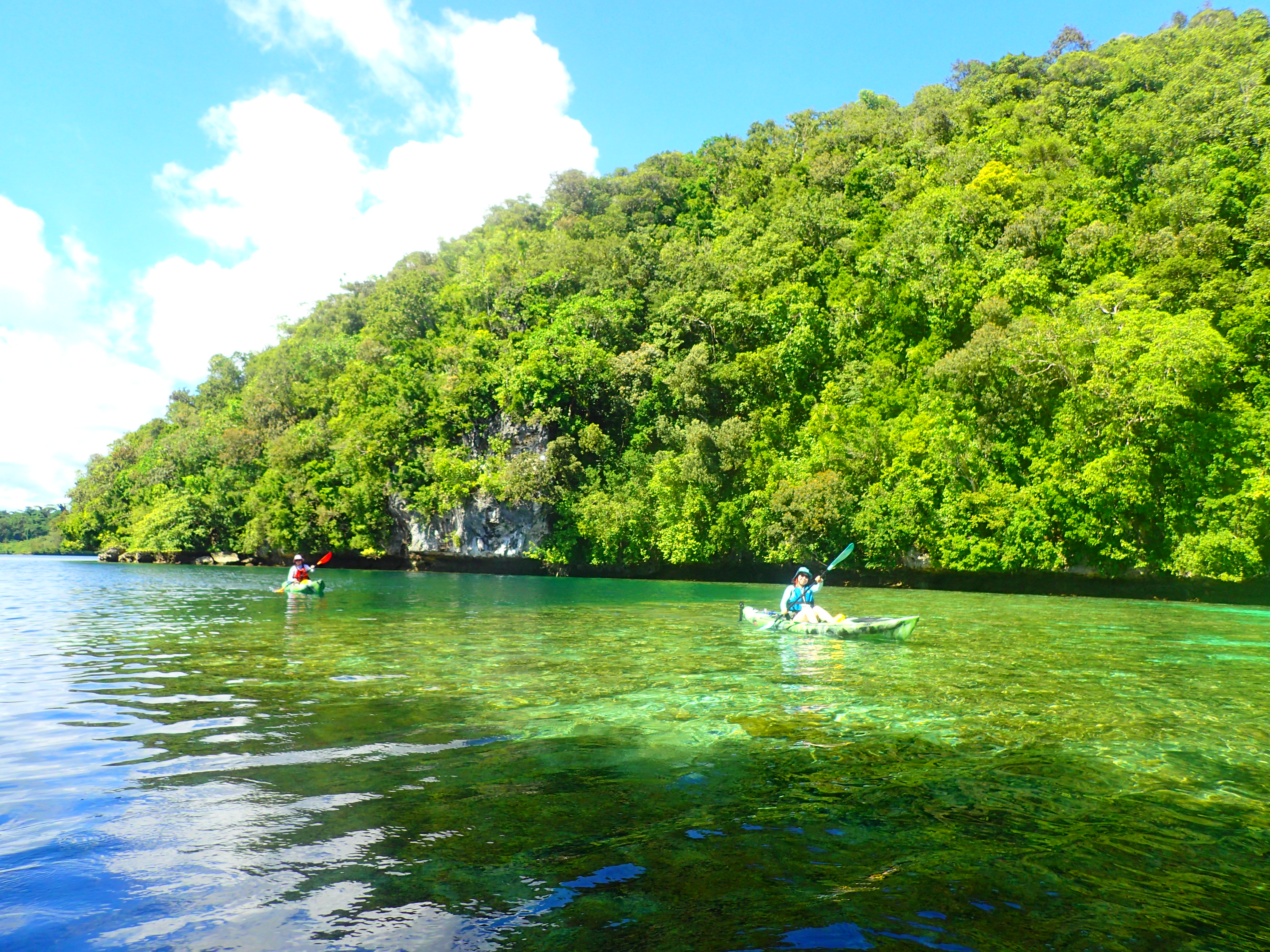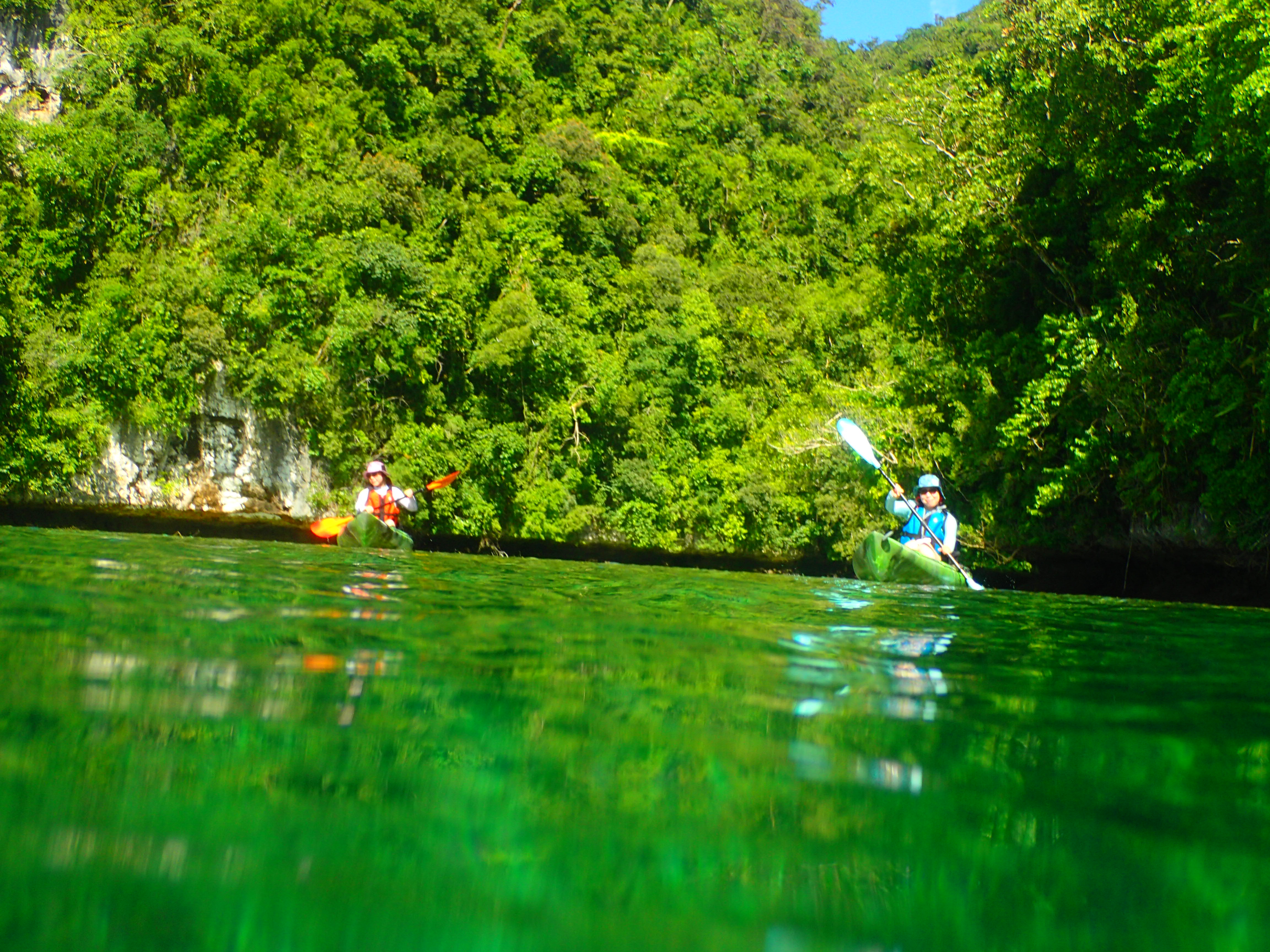 のんびりとパラオ松島を眺めながら、カヤック。透明度も抜群です。