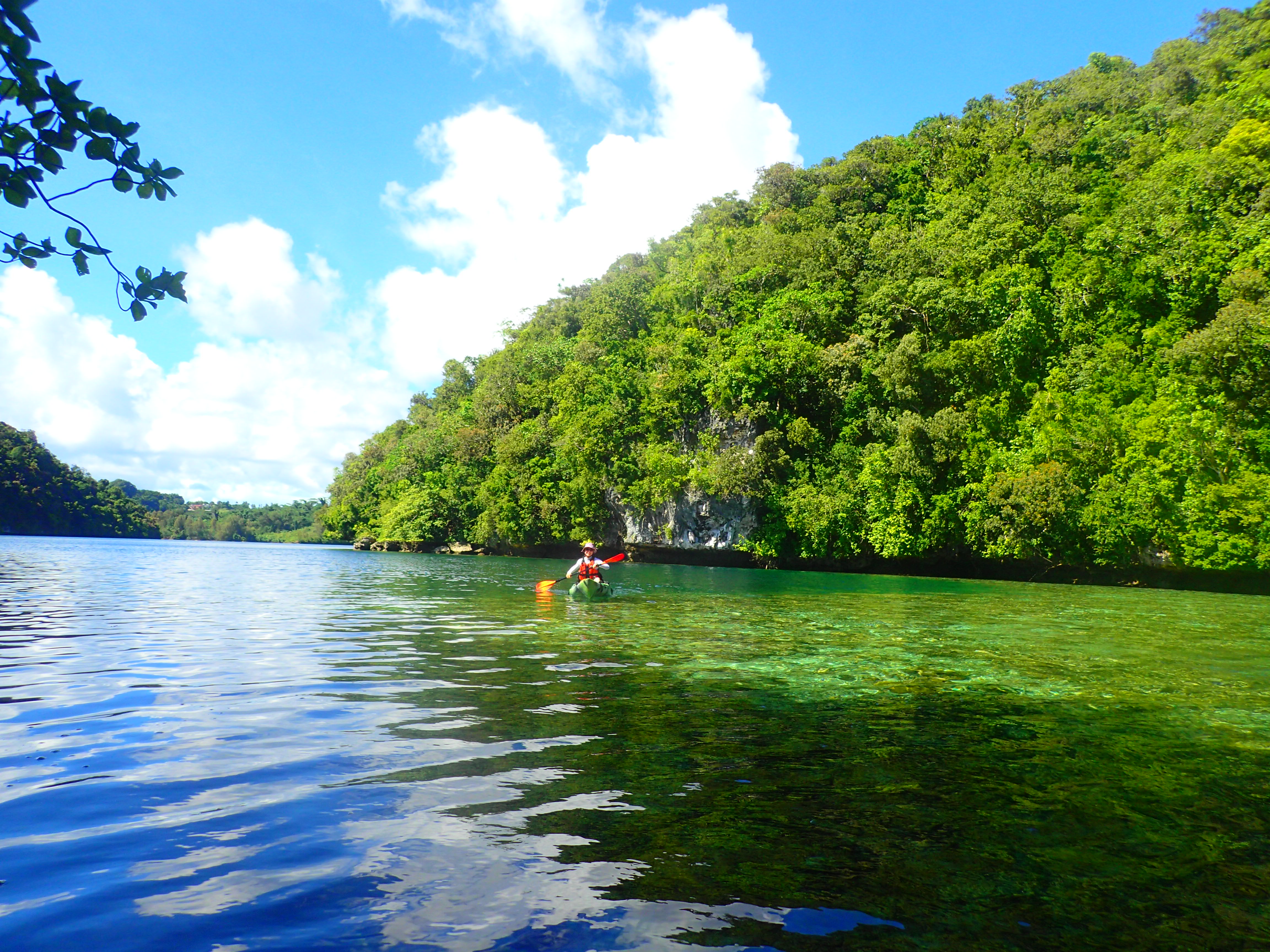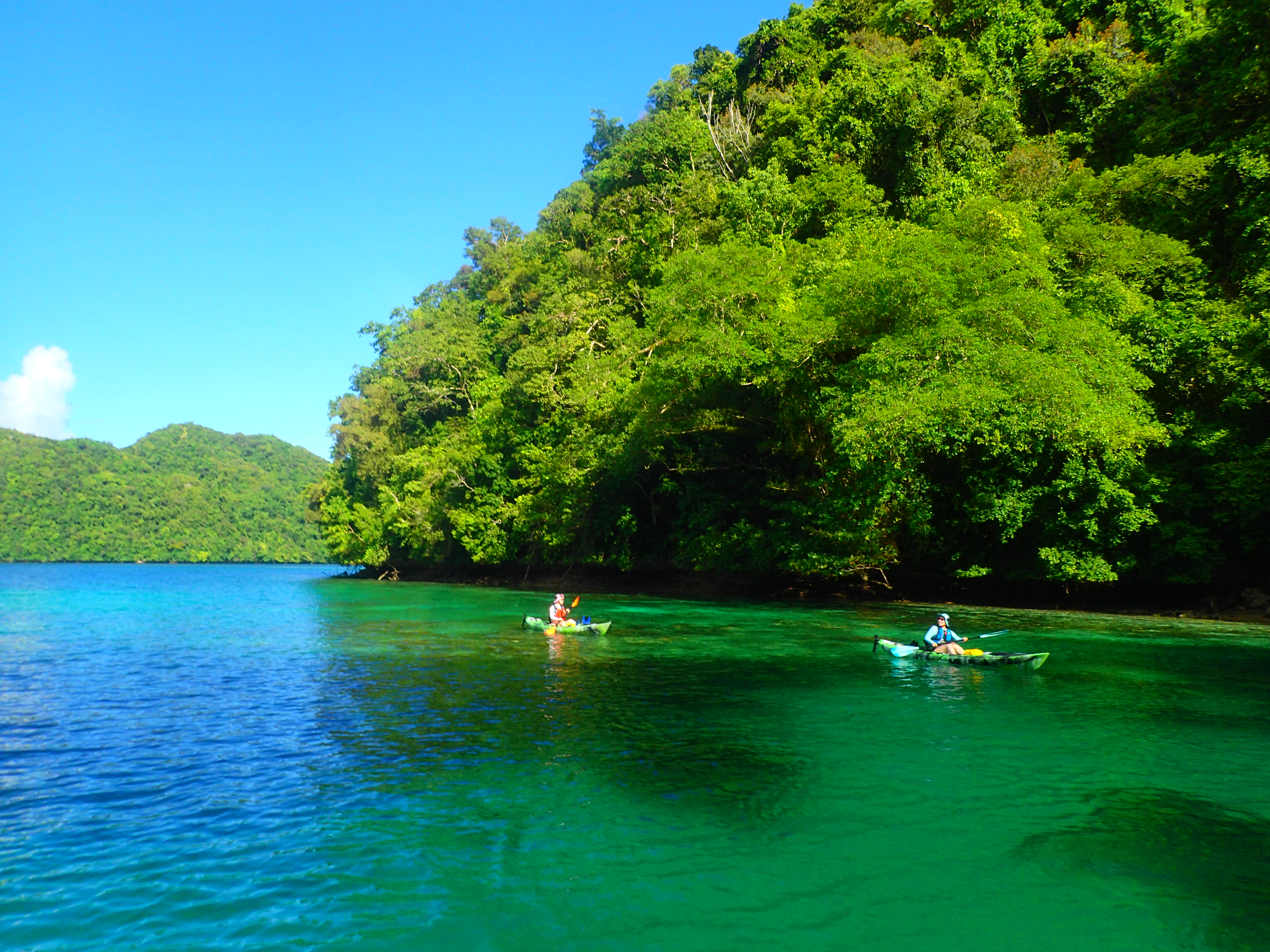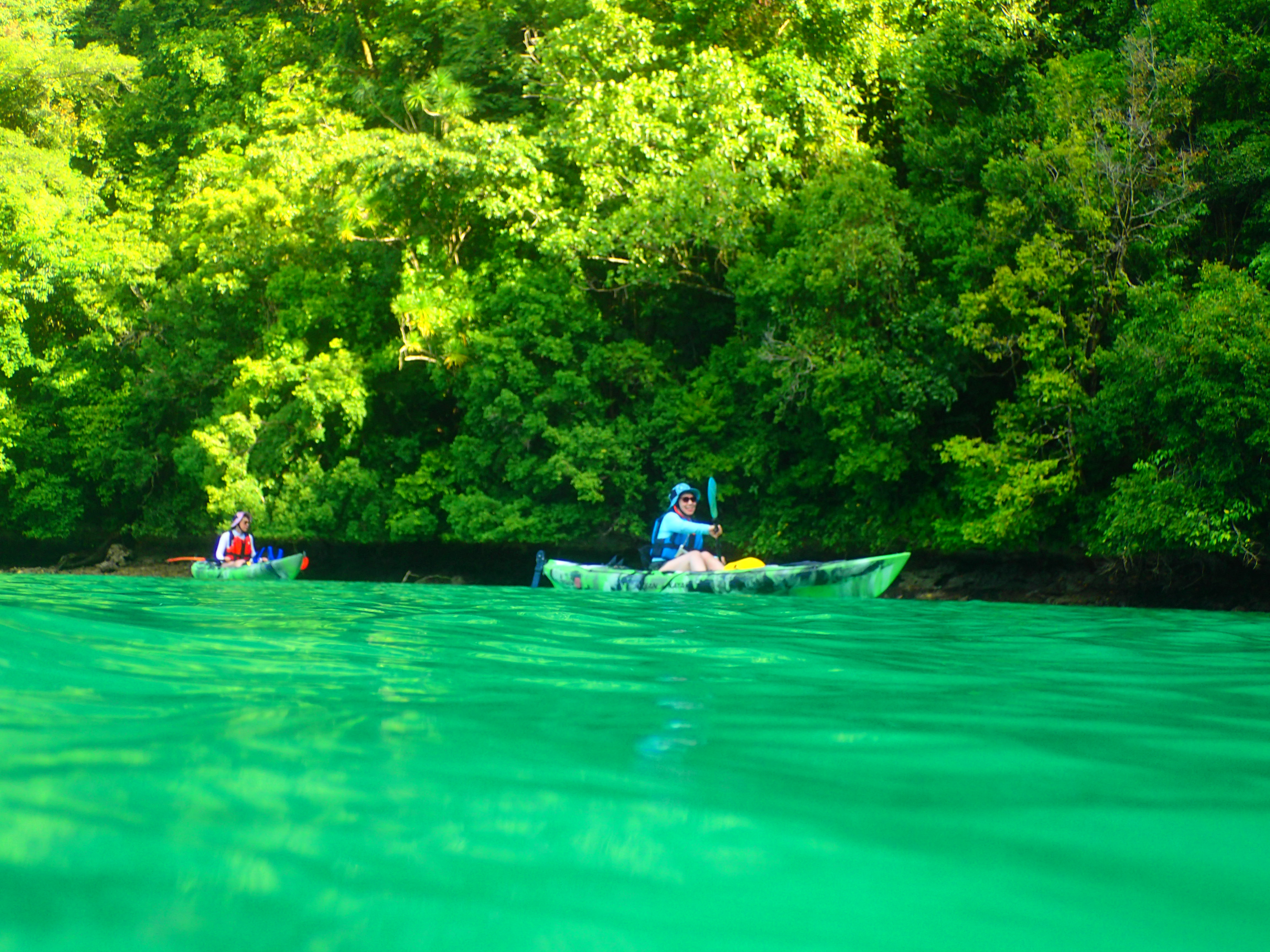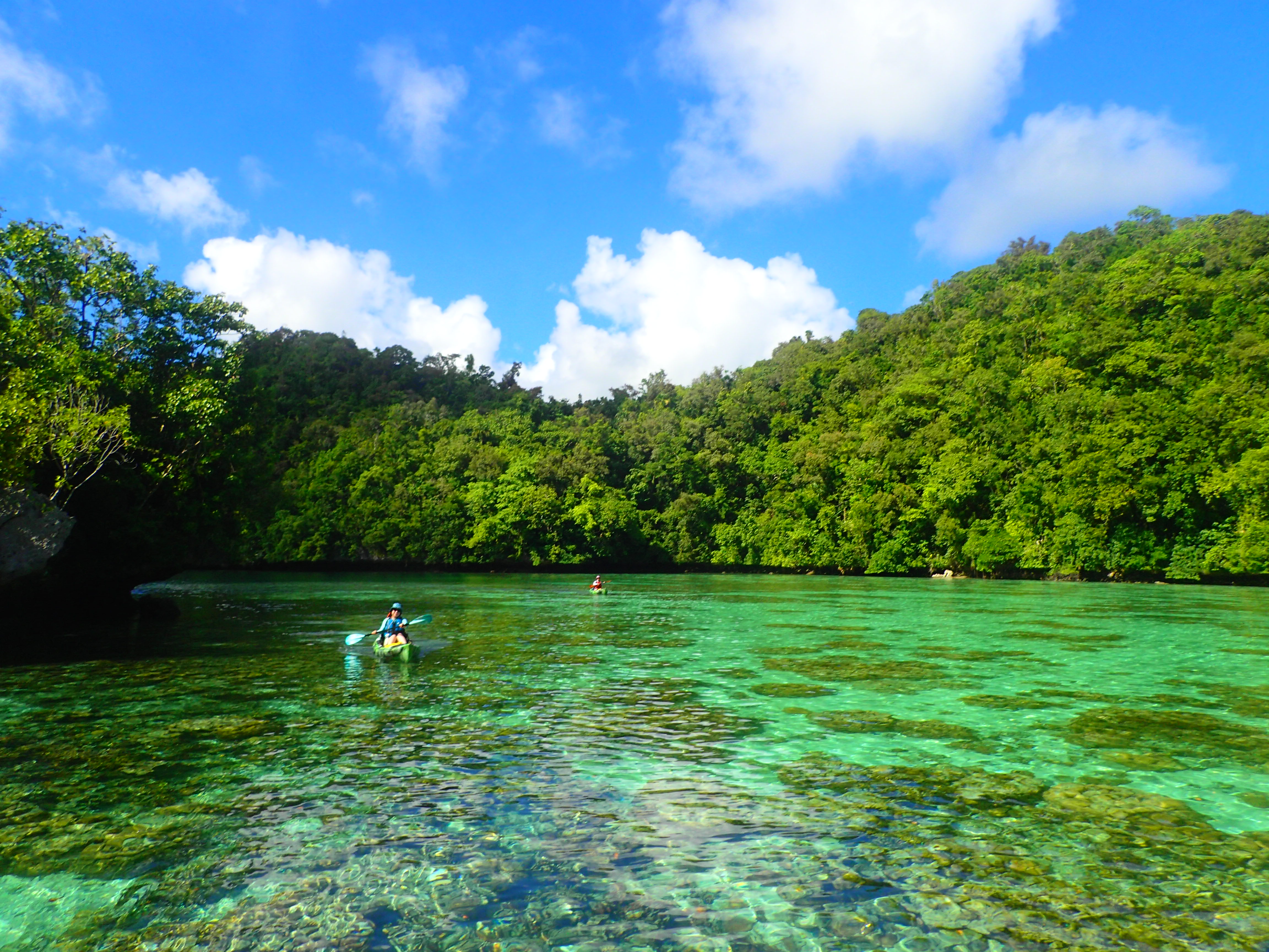 のんびりとパラオ松島を眺めながら、カヤック。透明度も抜群です。