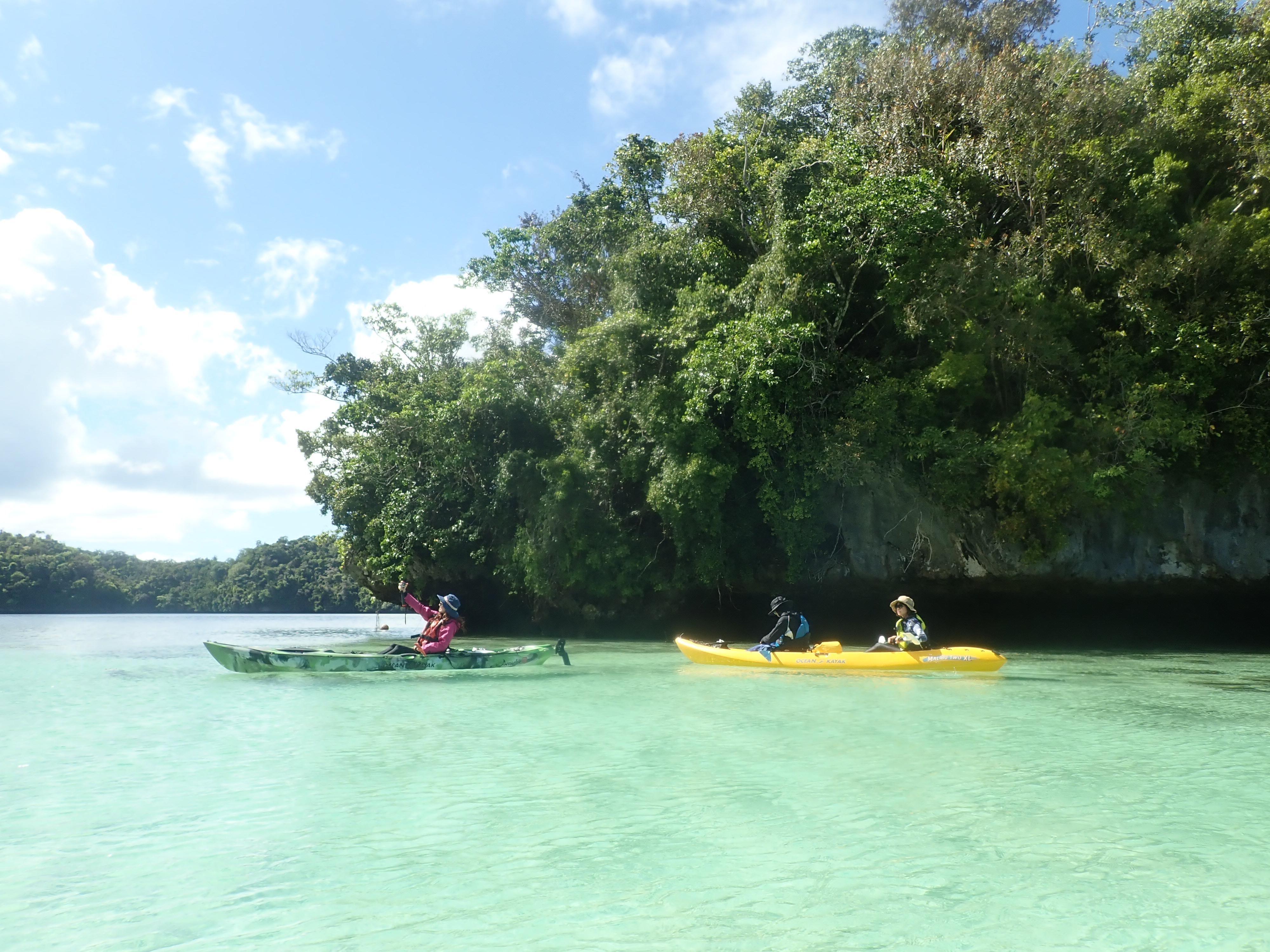先ずはのんびりとパラオ松島内の入り江をカヤッキング。