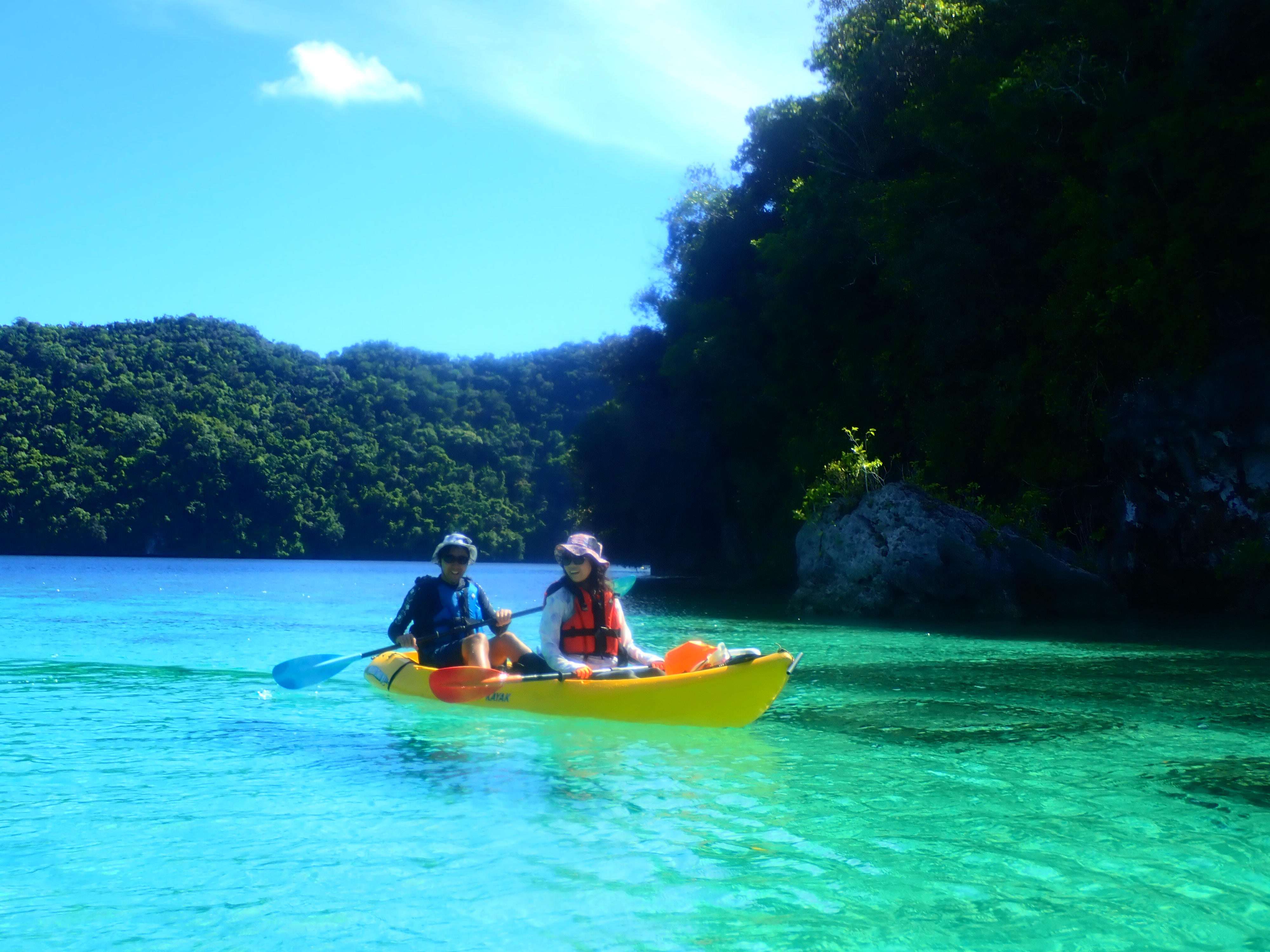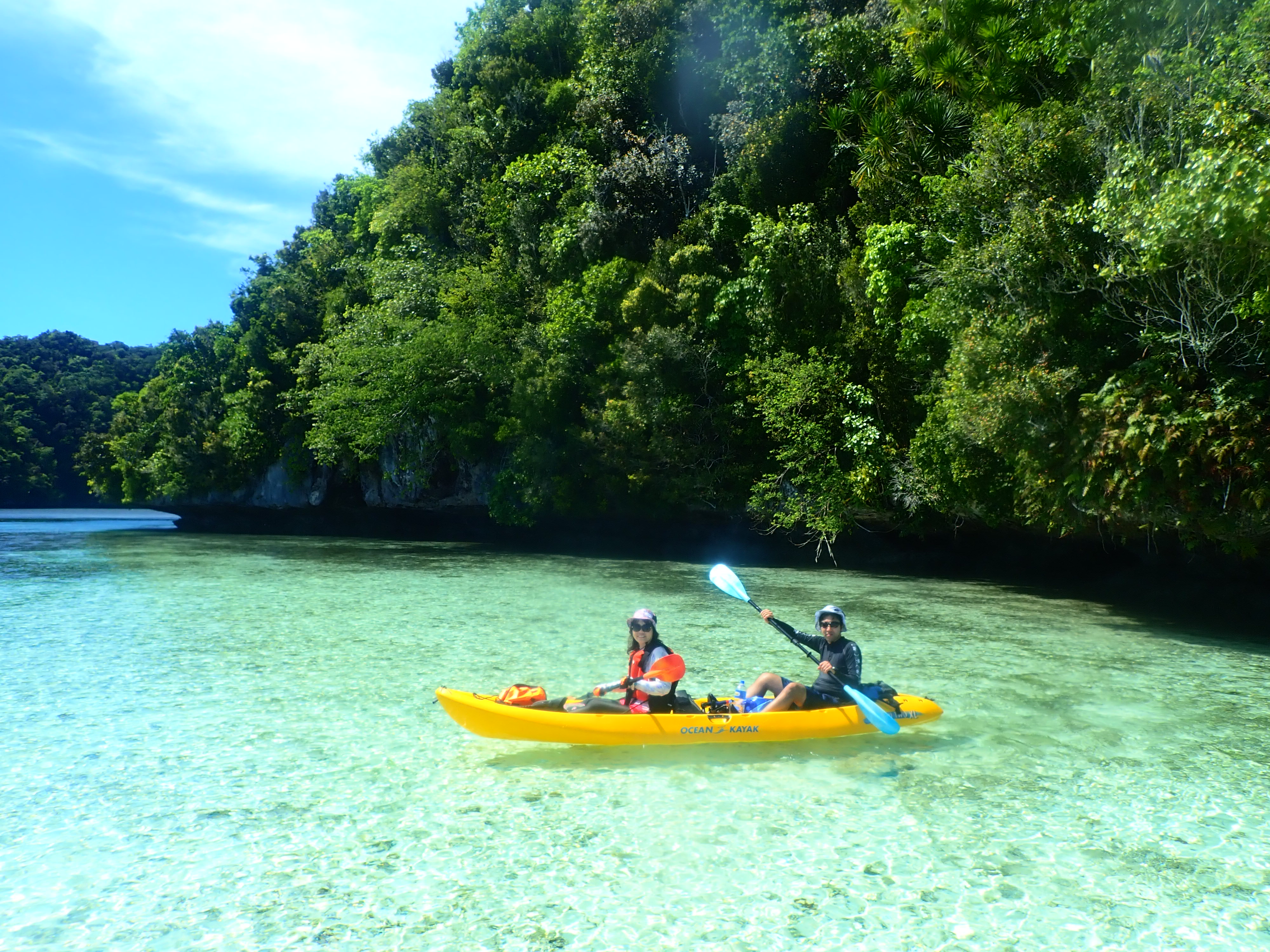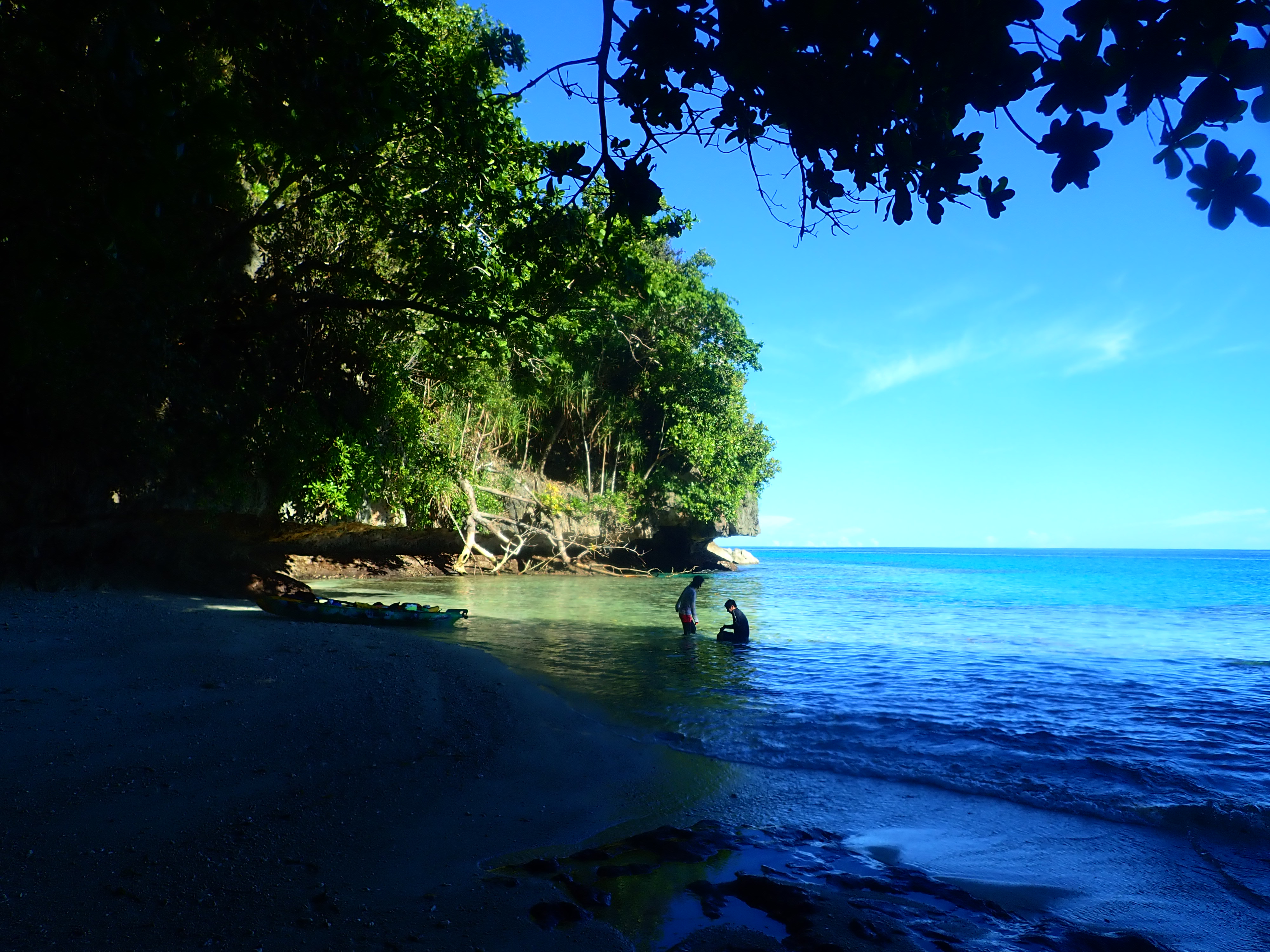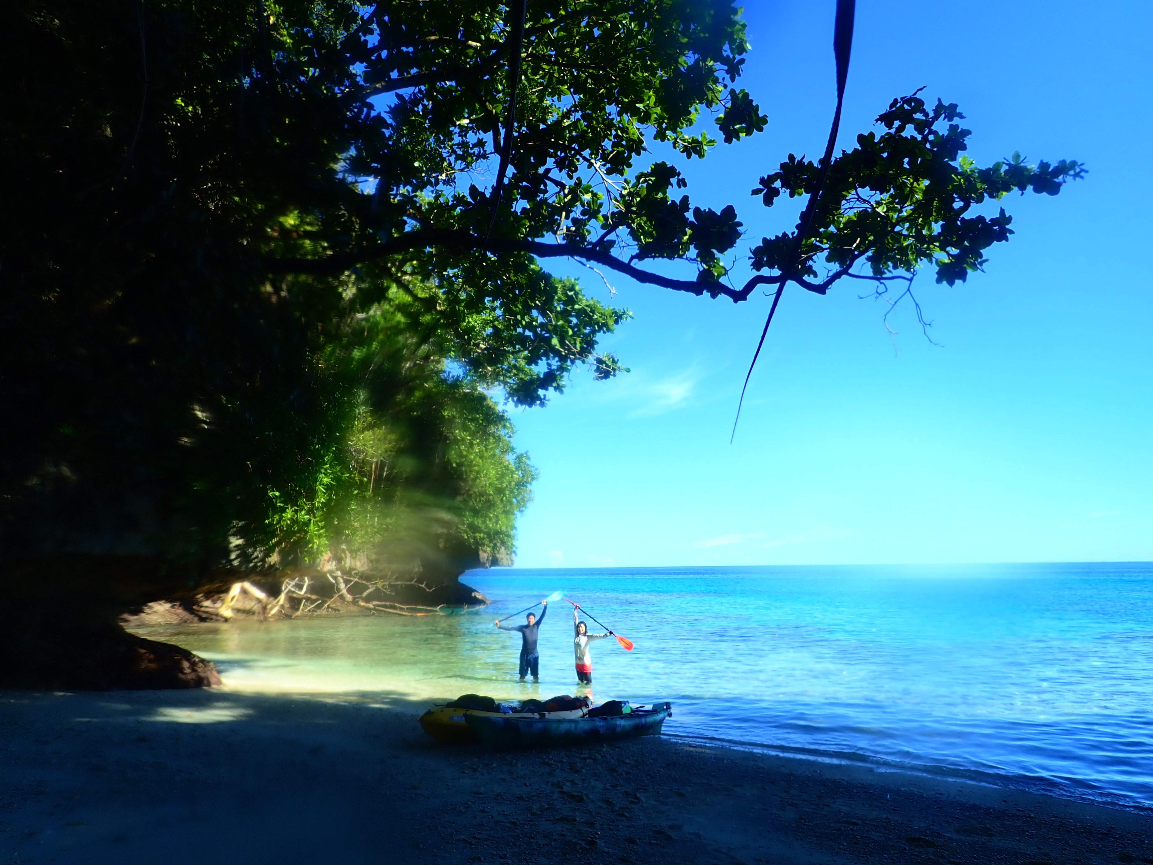 少し漕いだら木陰で休憩。南国パラオの快晴時はクールダウンが必須です。