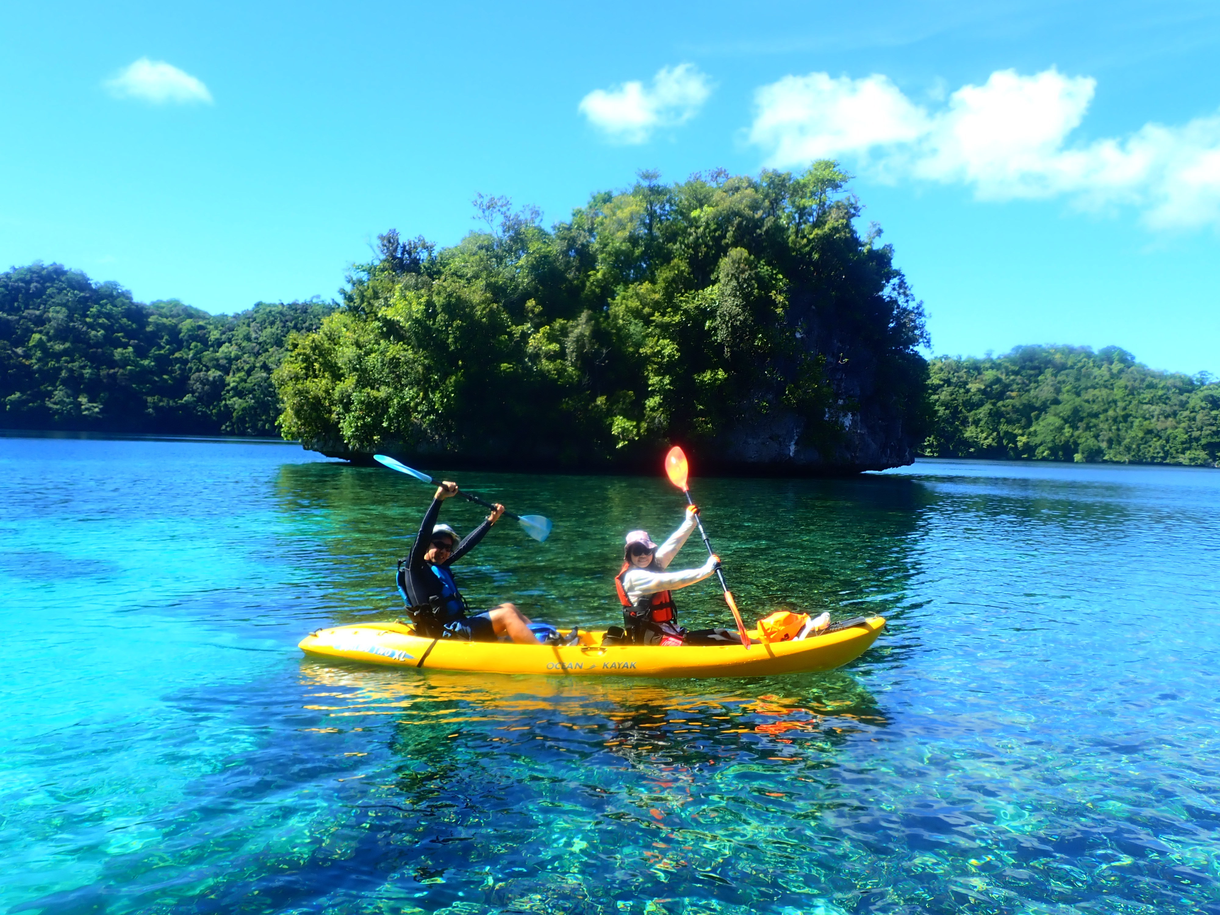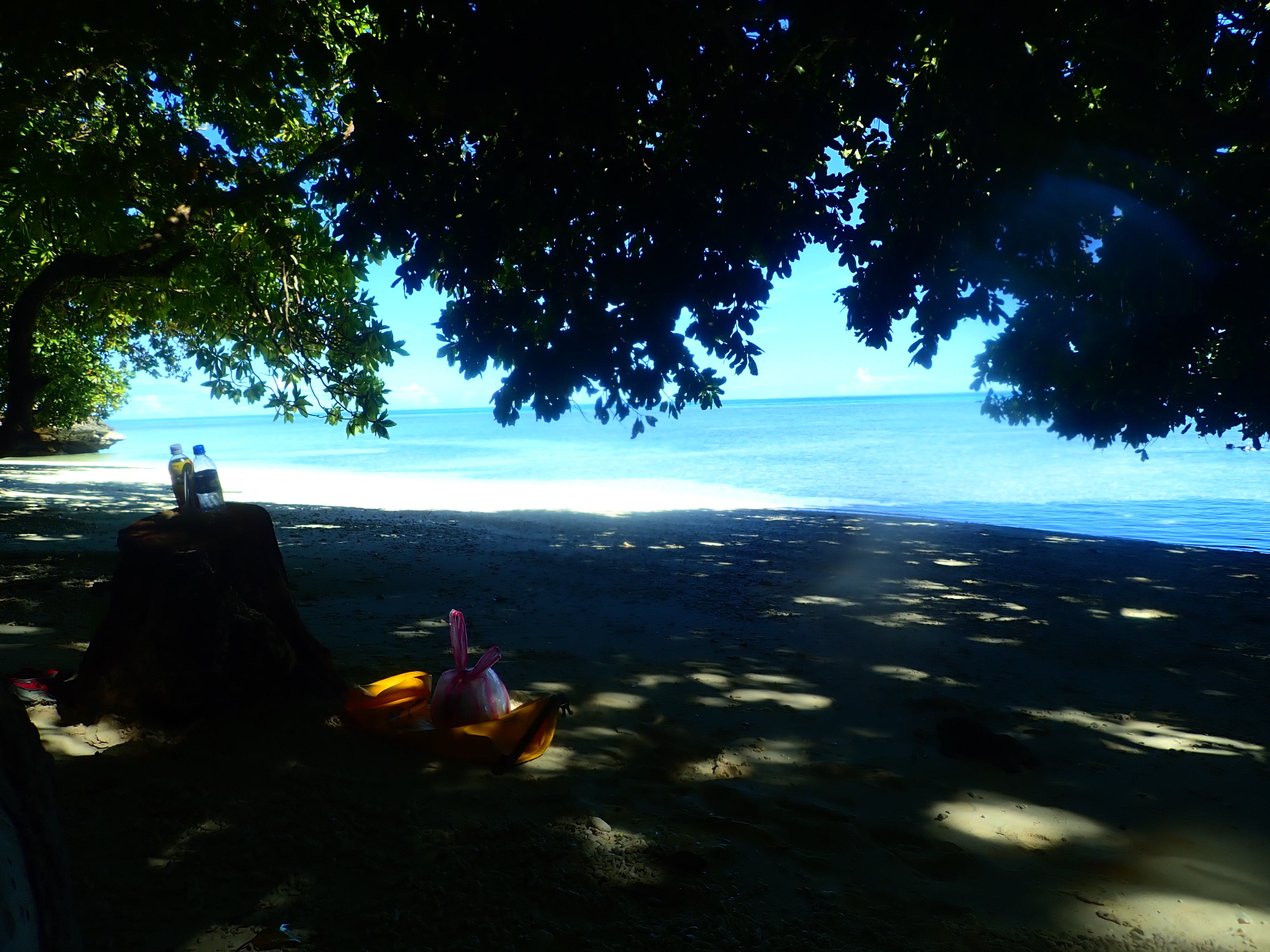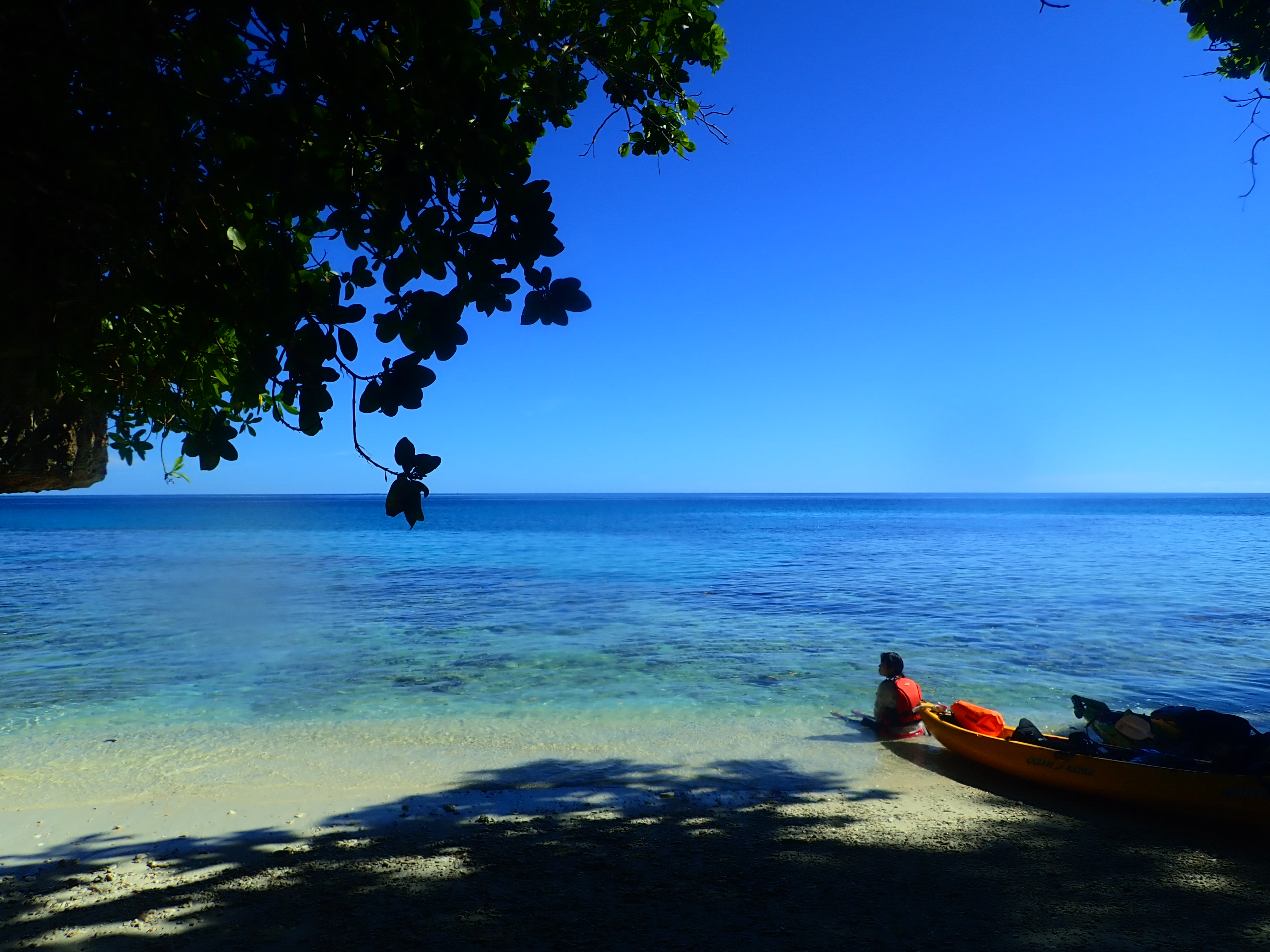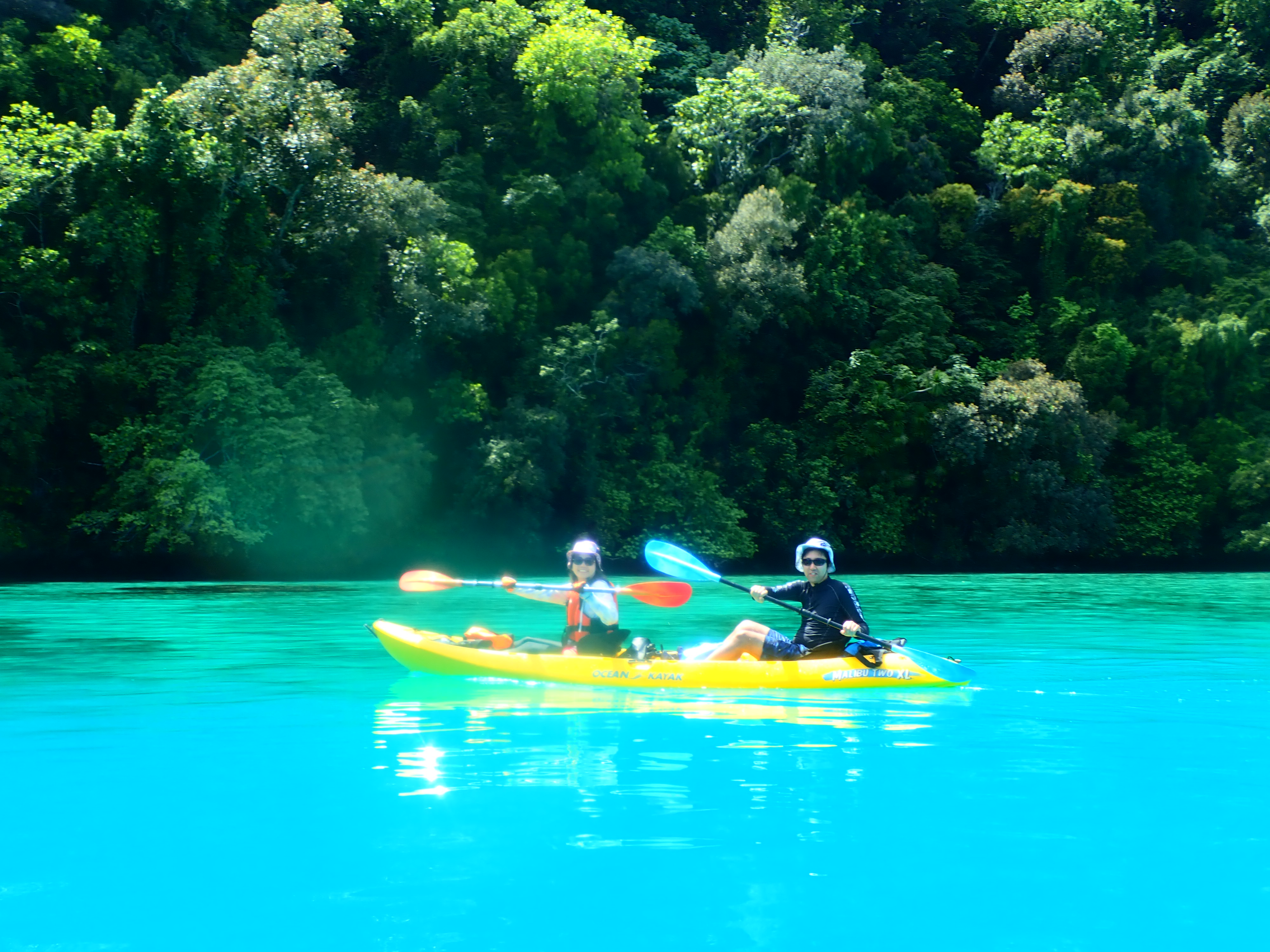 少し漕いだら木陰で休憩。南国パラオの快晴時はクールダウンが必須です。