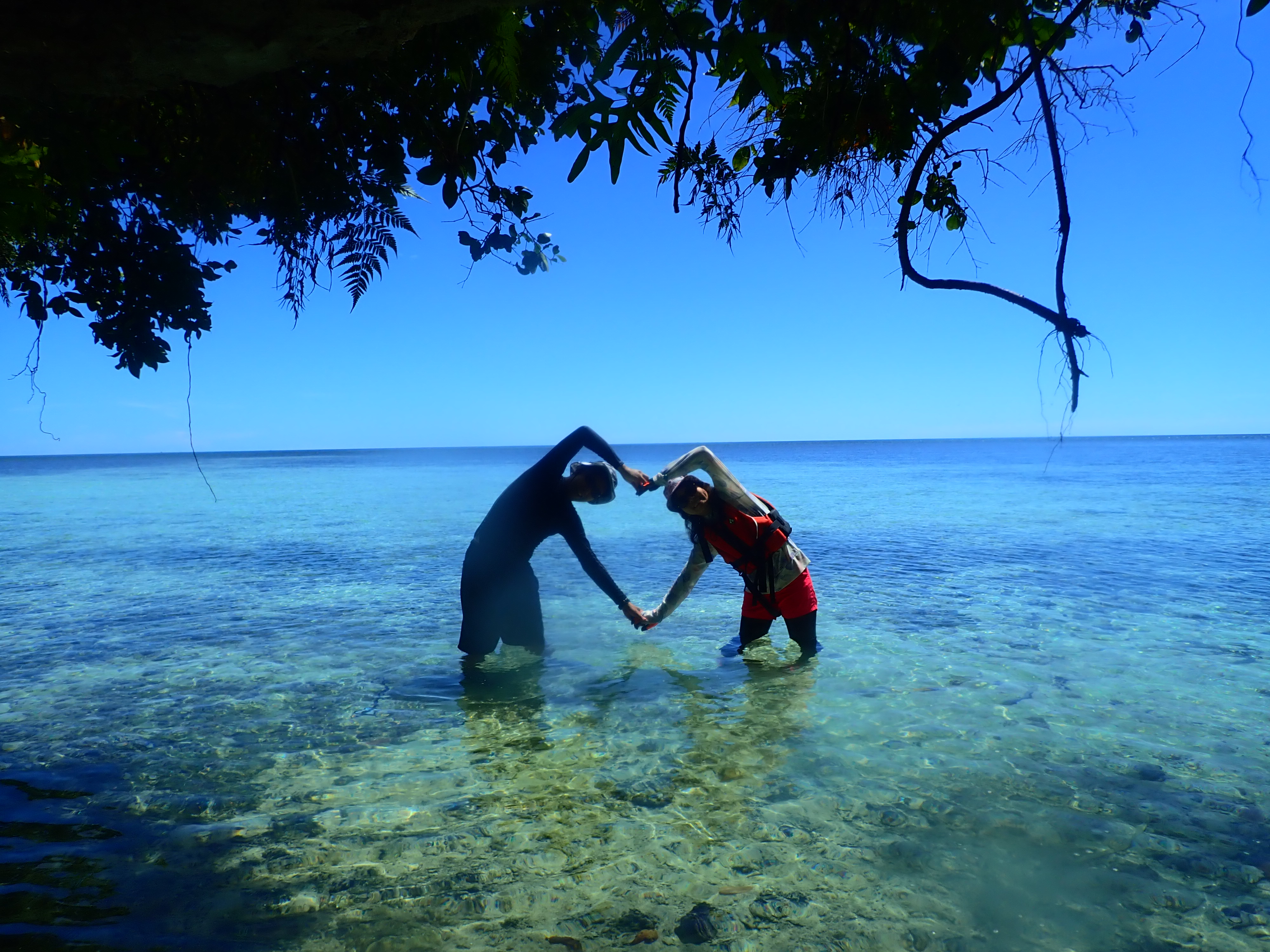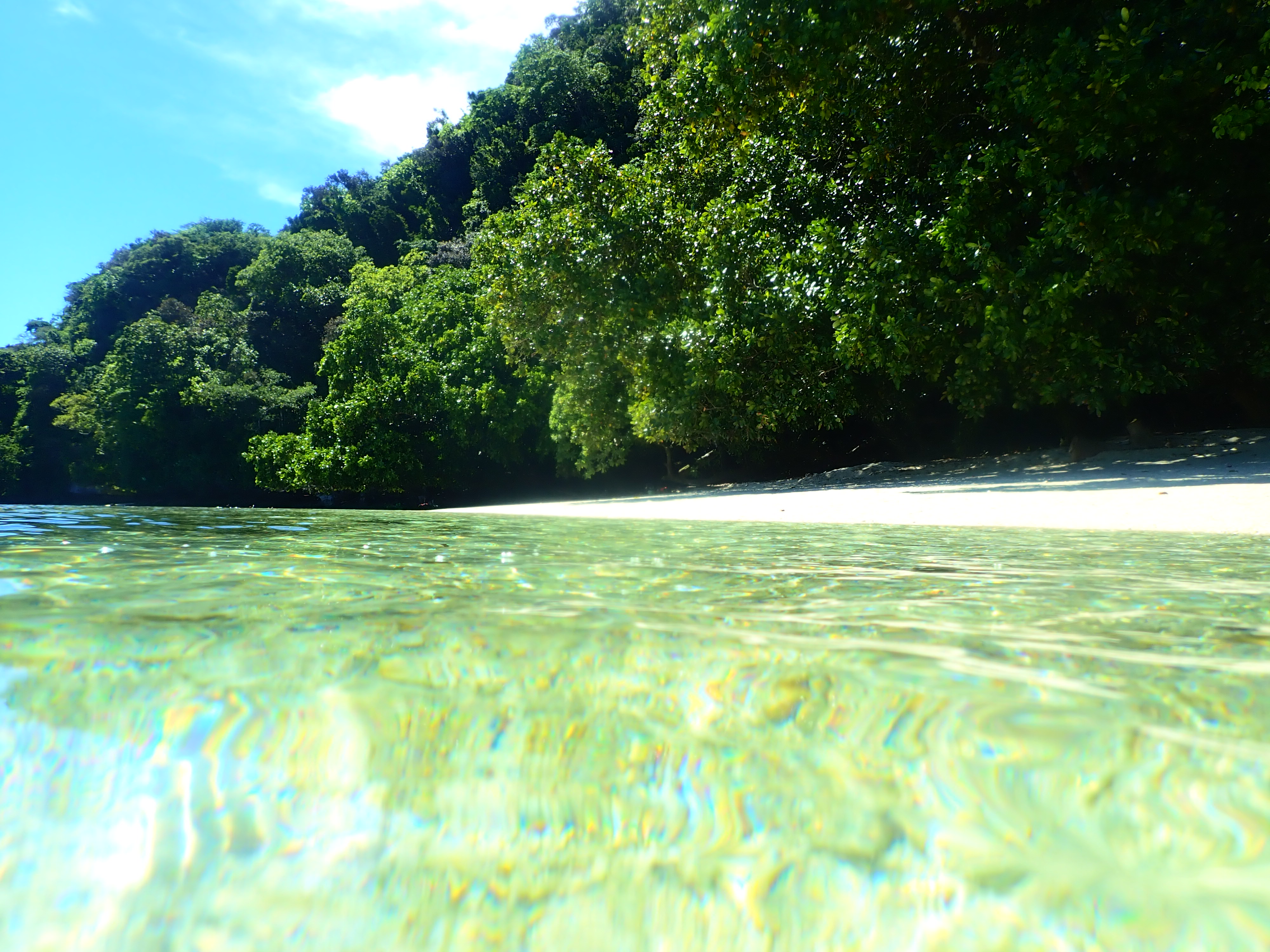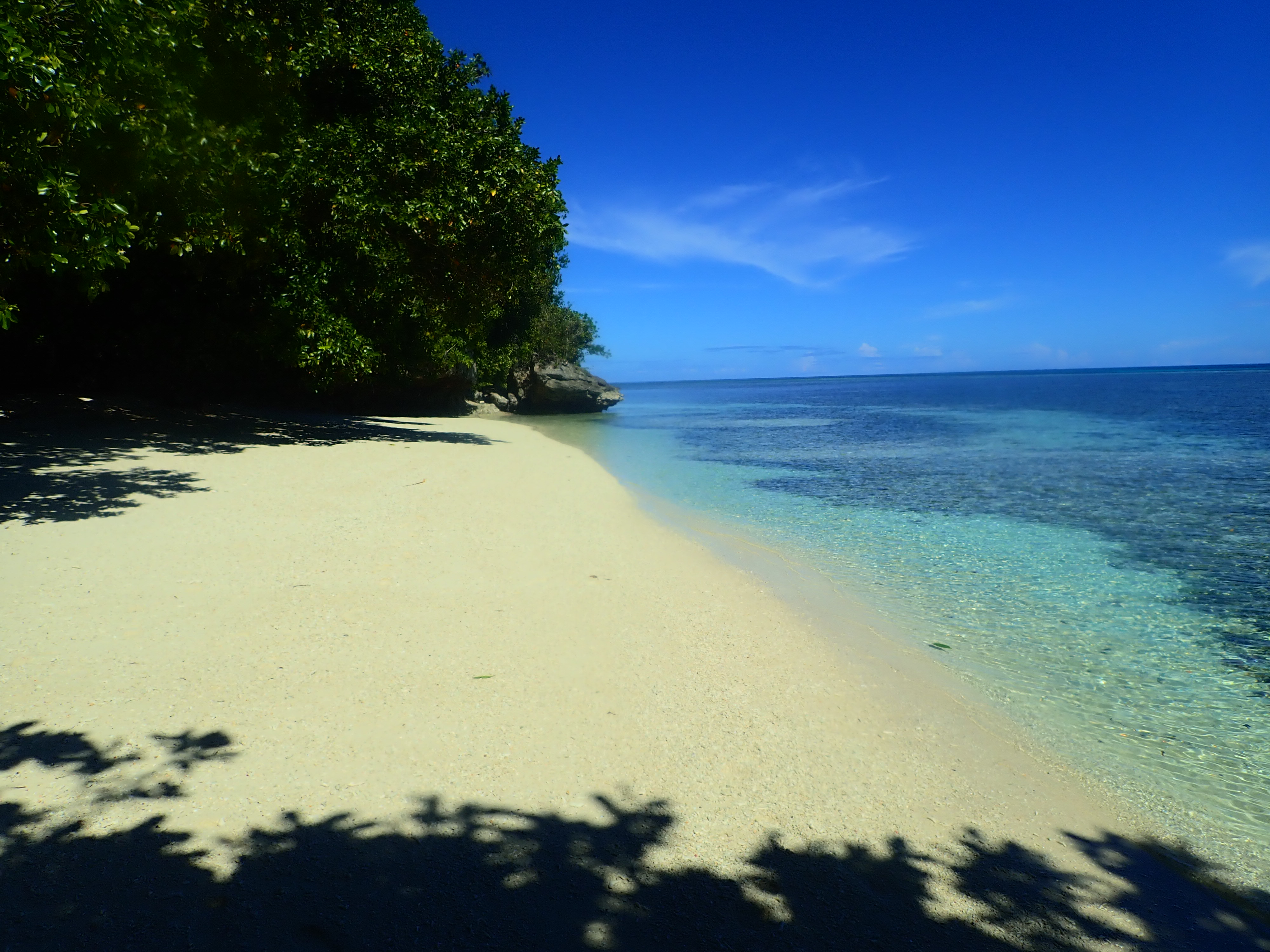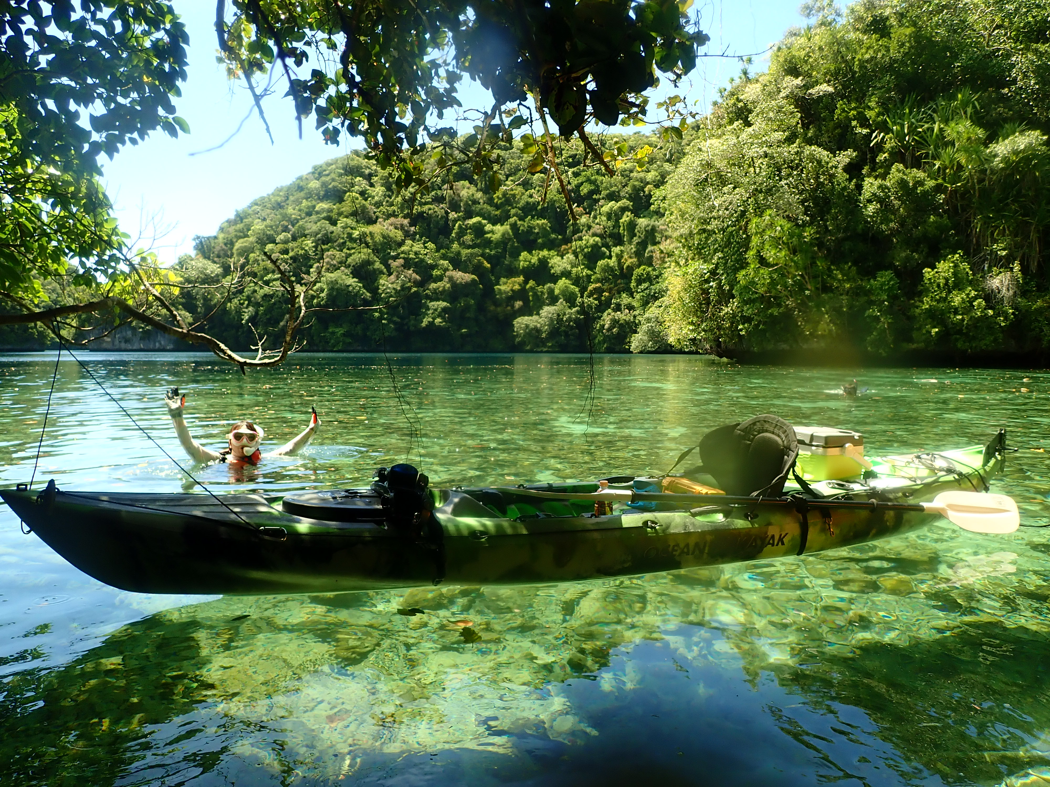 少し漕いだら木陰で休憩。南国パラオの快晴時はクールダウンが必須です。