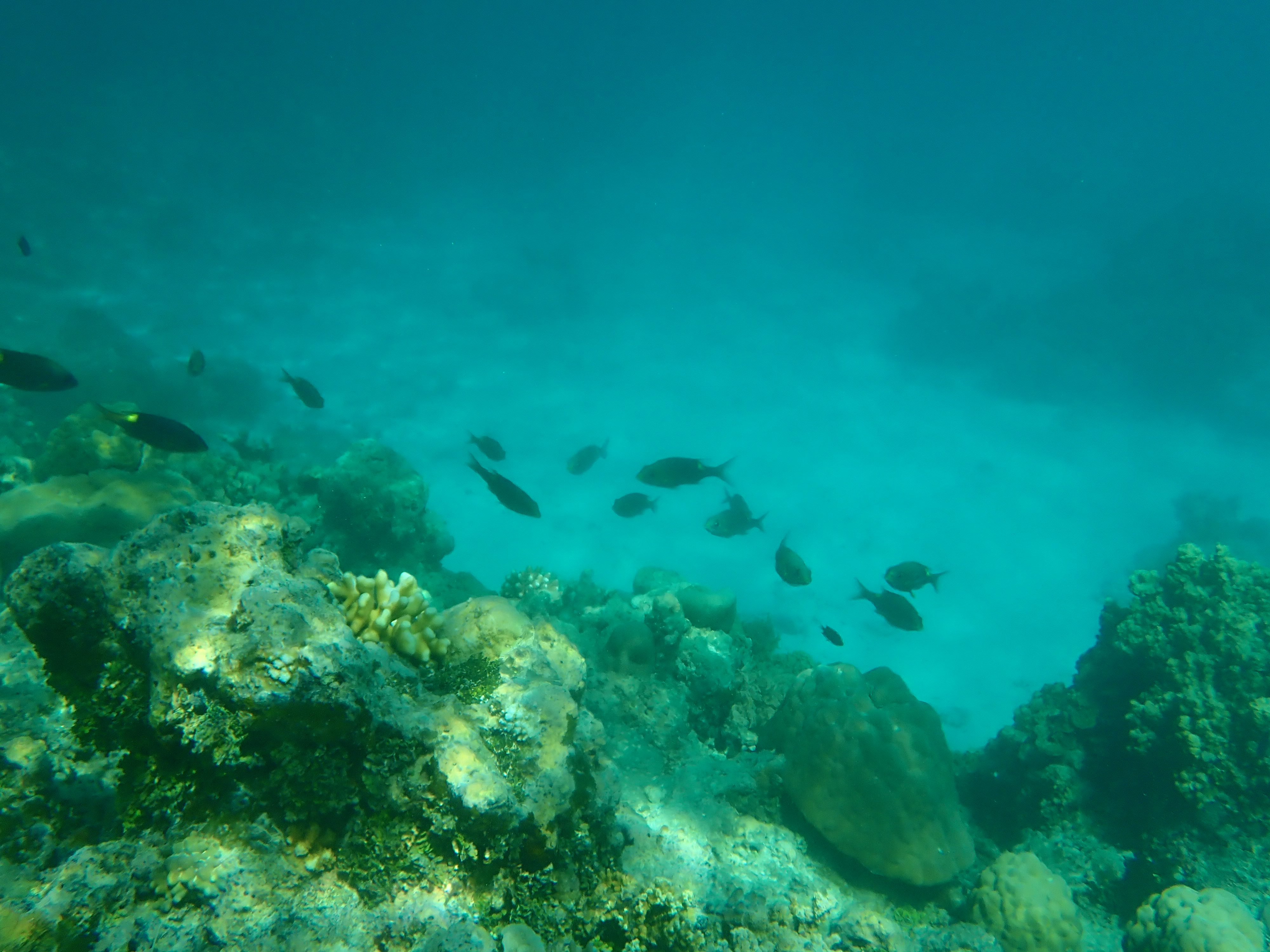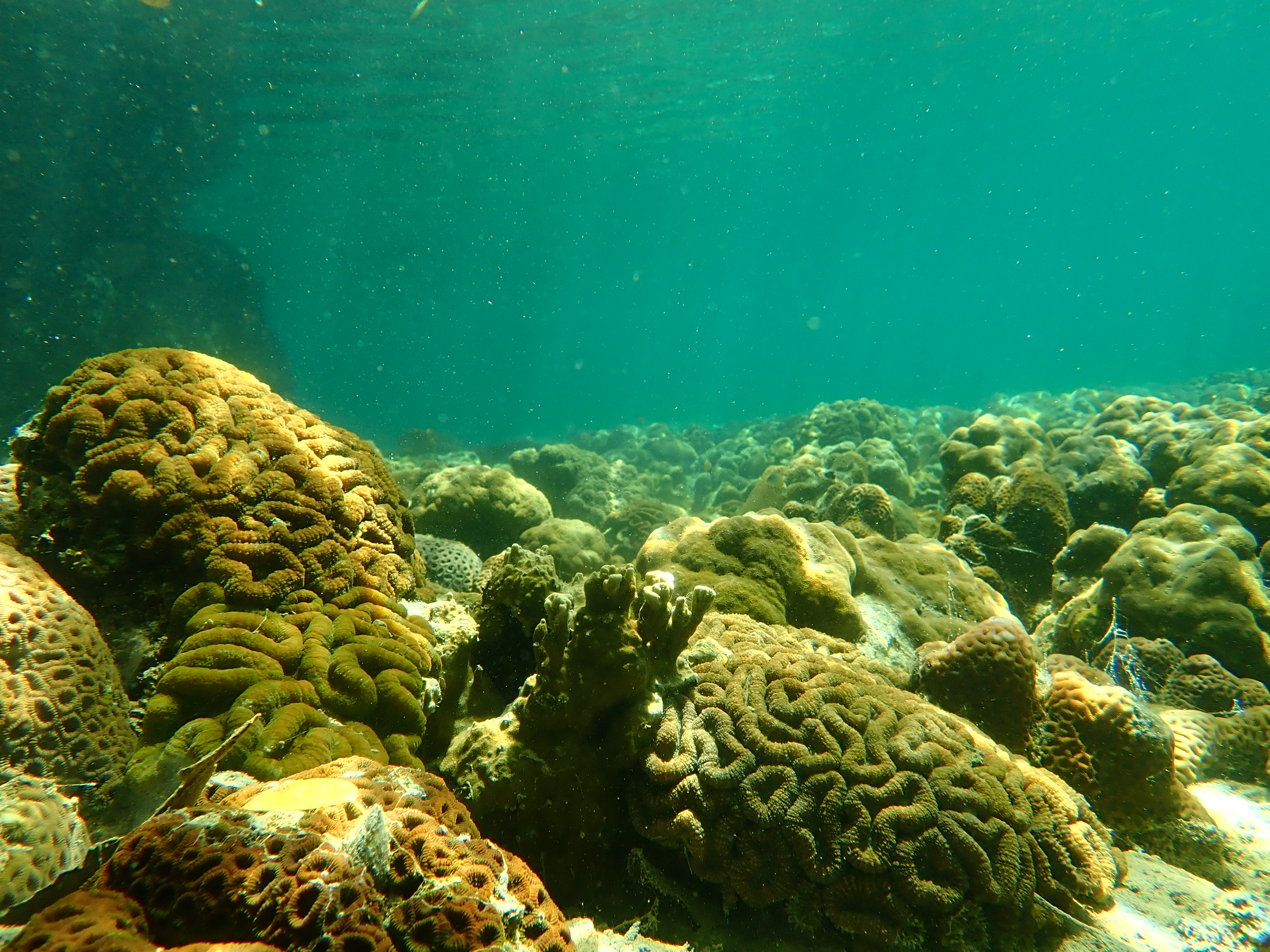お昼の後も暑いのでスノーケル。内海から外に出てのスノーケルはようやく海っぽくなります。まん丸脳サンゴが可愛いです。
