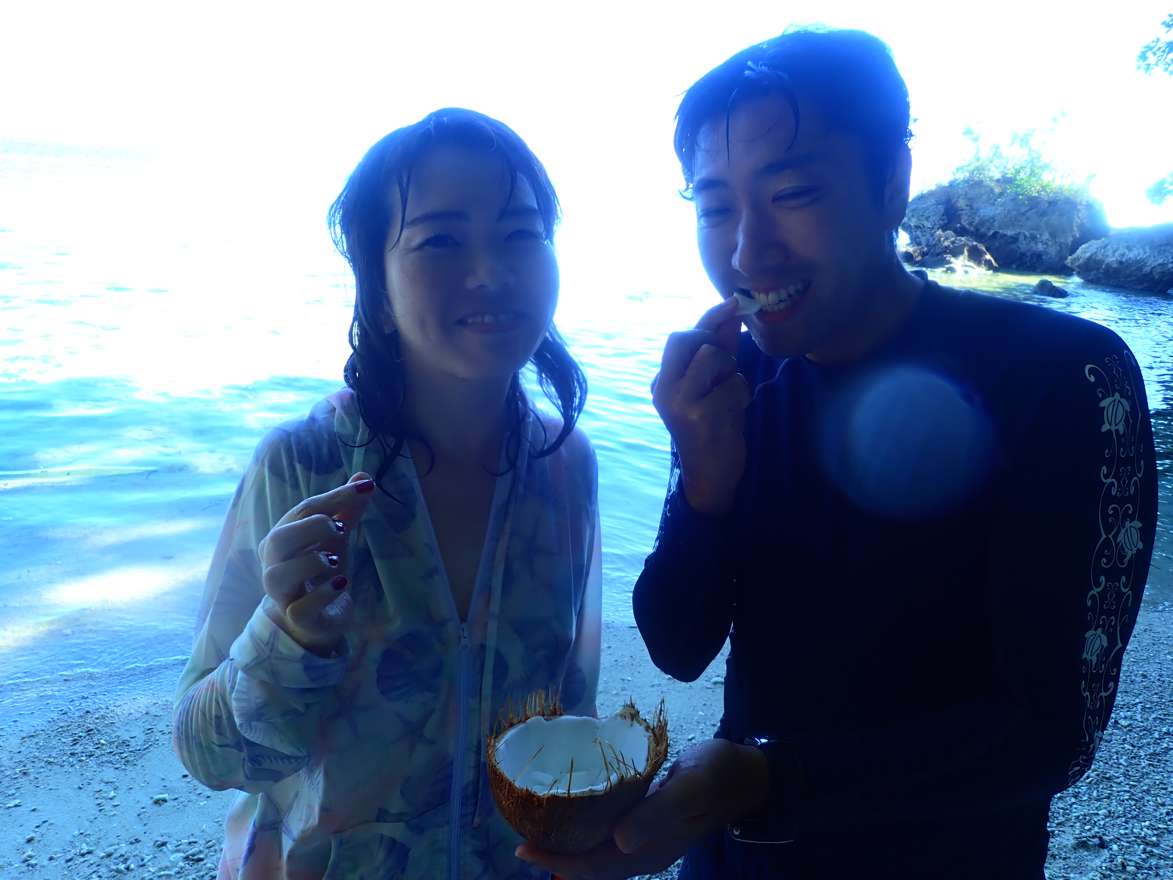 スノーケル後はローカルストア「Yanoマート」で買ったココナッツジュースとココナッツ白玉ゼリー的なスイーツタイム。食べた人しか伝わらないこの表現(笑)ココナッツの中身も割って頂きました。今日のココナッツは中身が少々固め、繊維質でシャキシャキした歯ざわり。ココナッツはモノによってジュースも中身の味も大きく変わります。