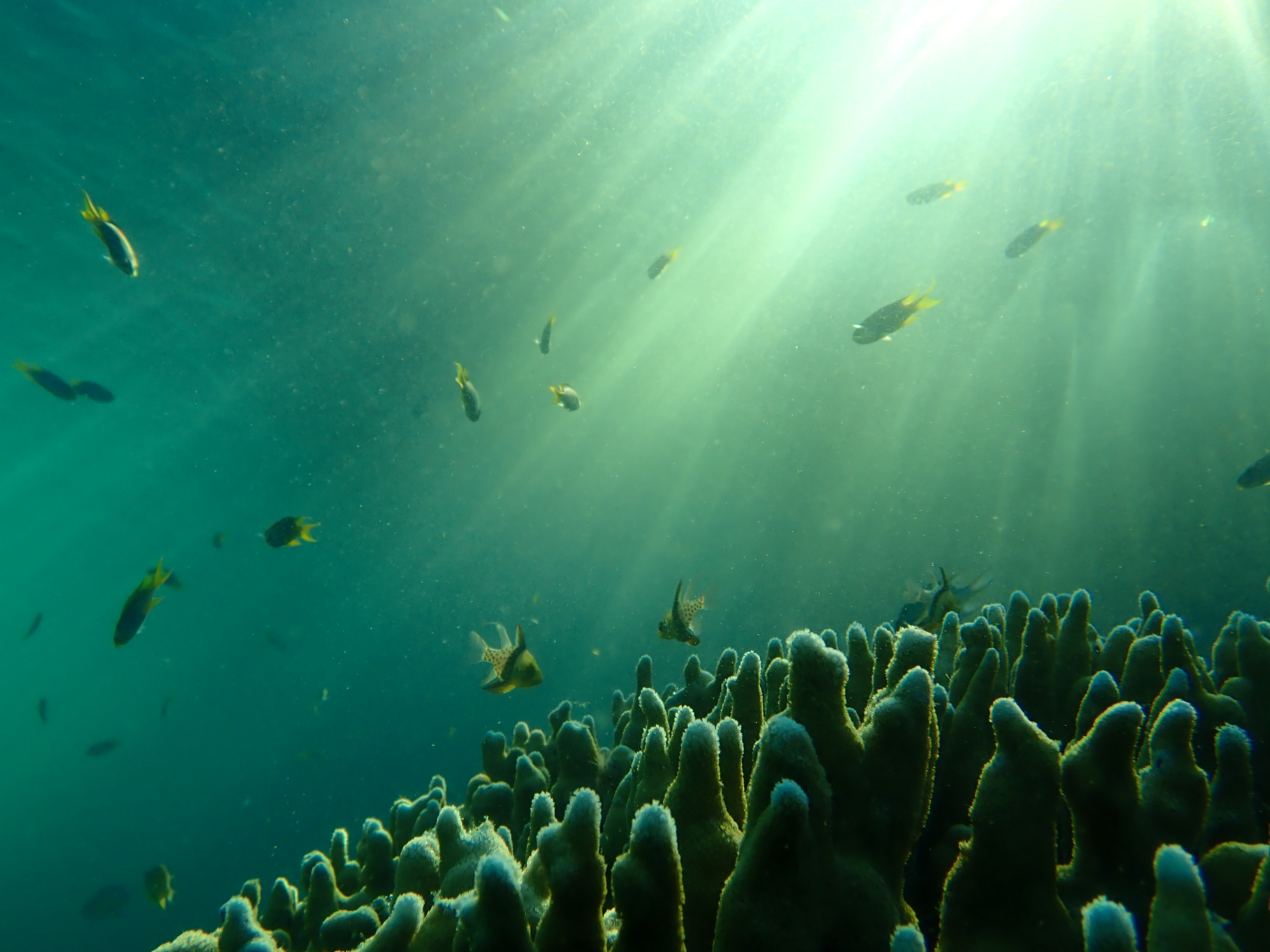 帰り道にもう一回スノーケル!西日が差し込むと海の中も素敵なショータイム。