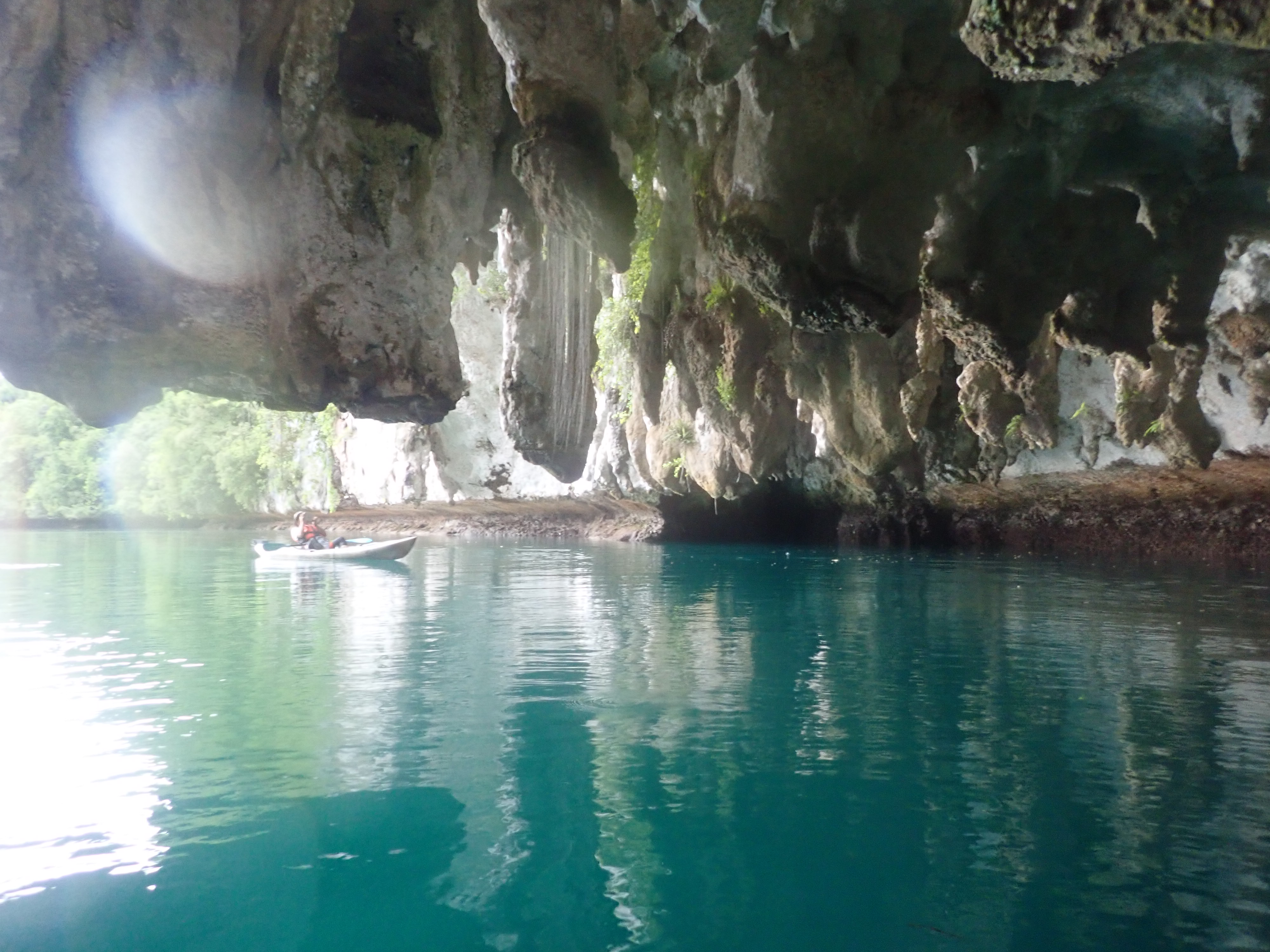 同コースはいくつか天然の洞窟があり、カヤックで入る事が出来ます。淡い色合いが美しく綺麗です。