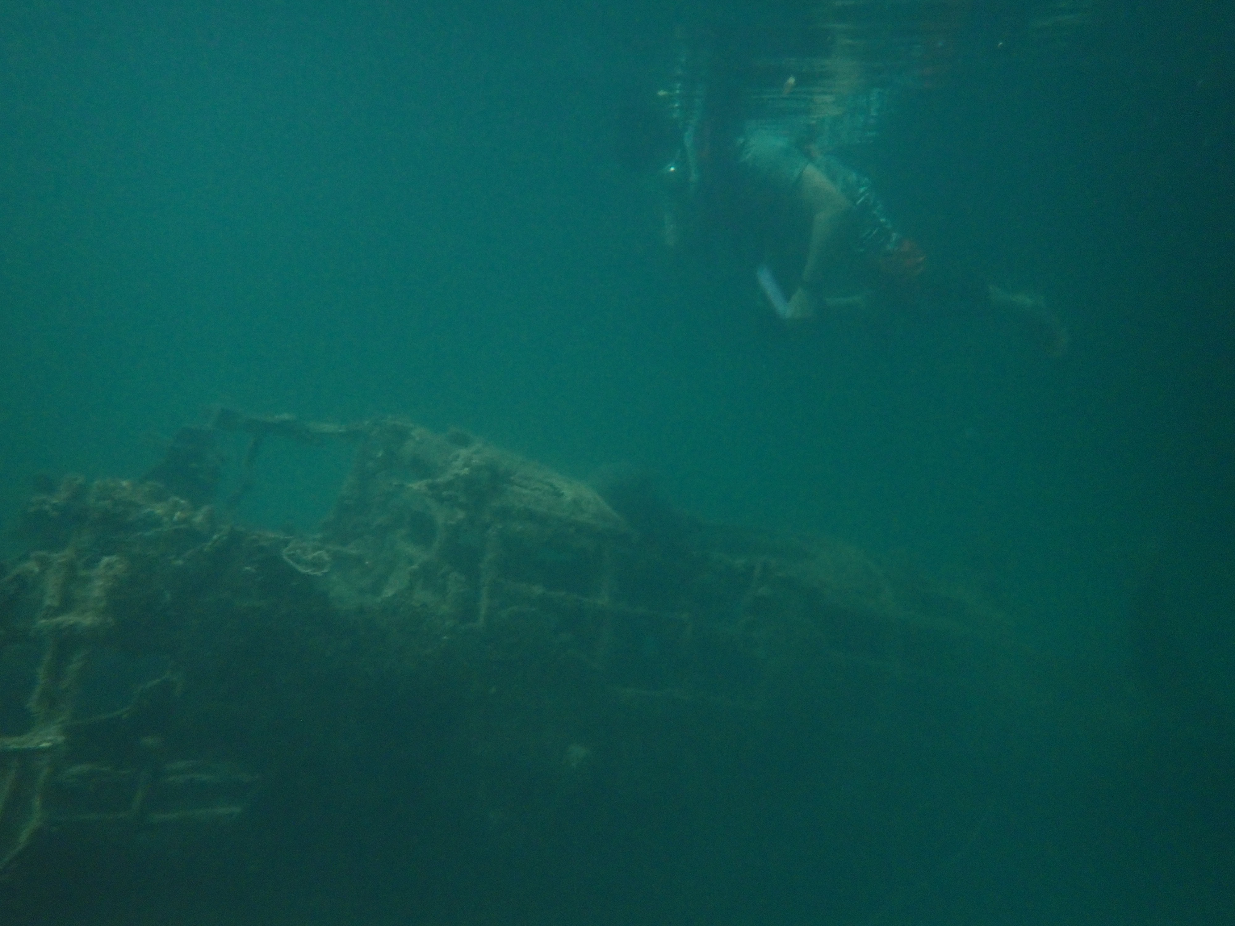 海中には当時使っていた水上偵察機が今も形を残した状態で残っています。ご希望の方はスノーケルでご覧頂けます。