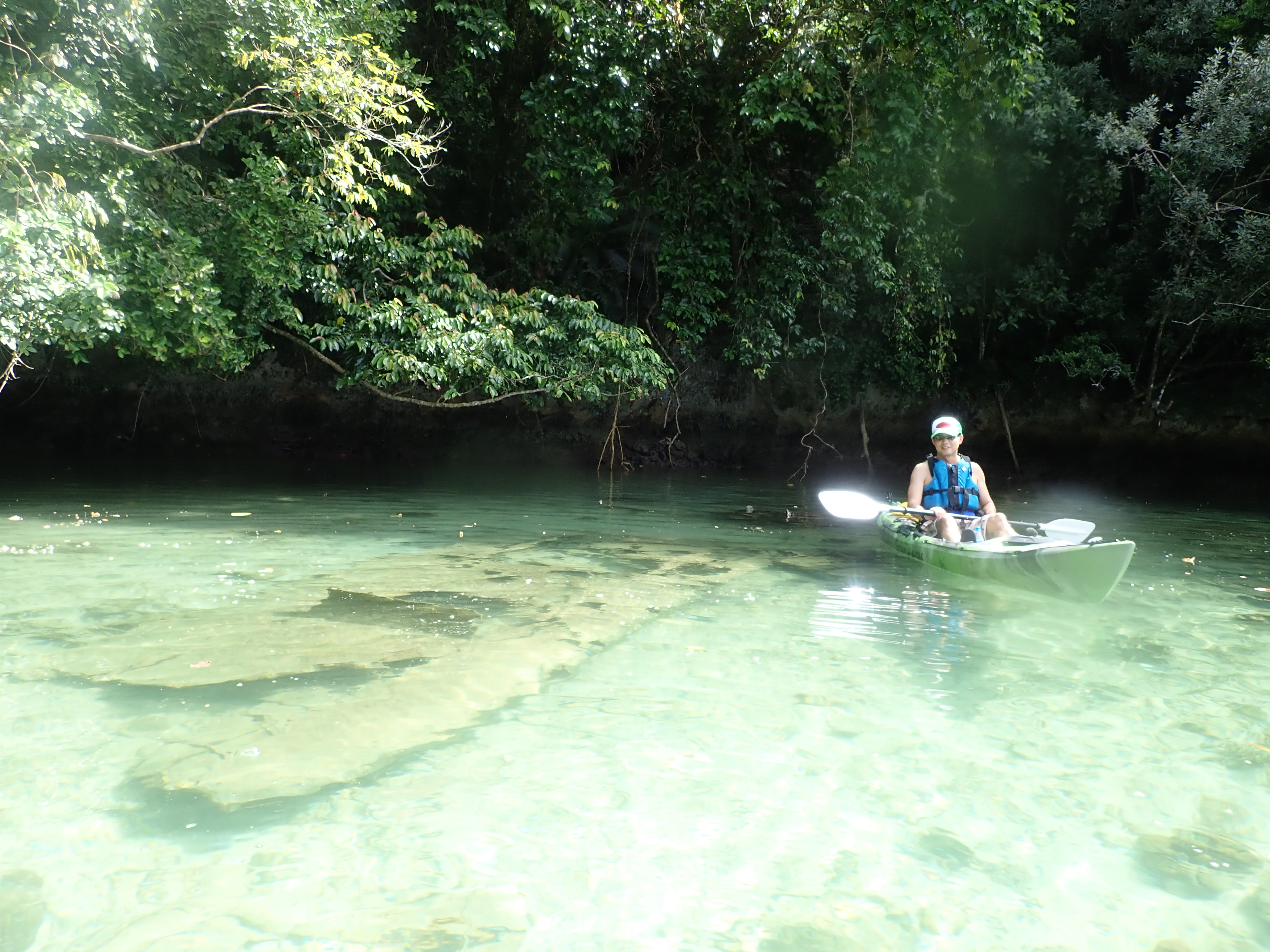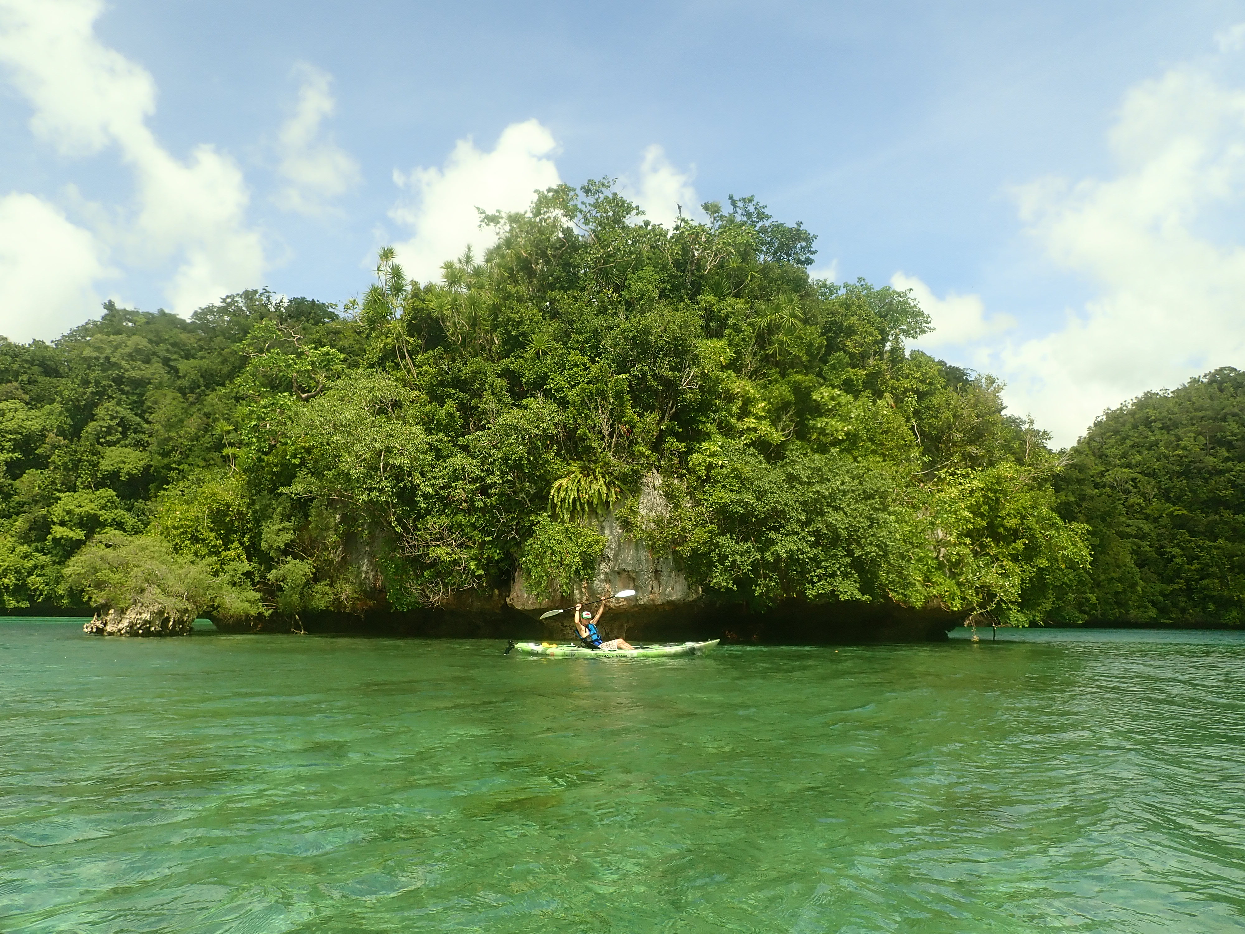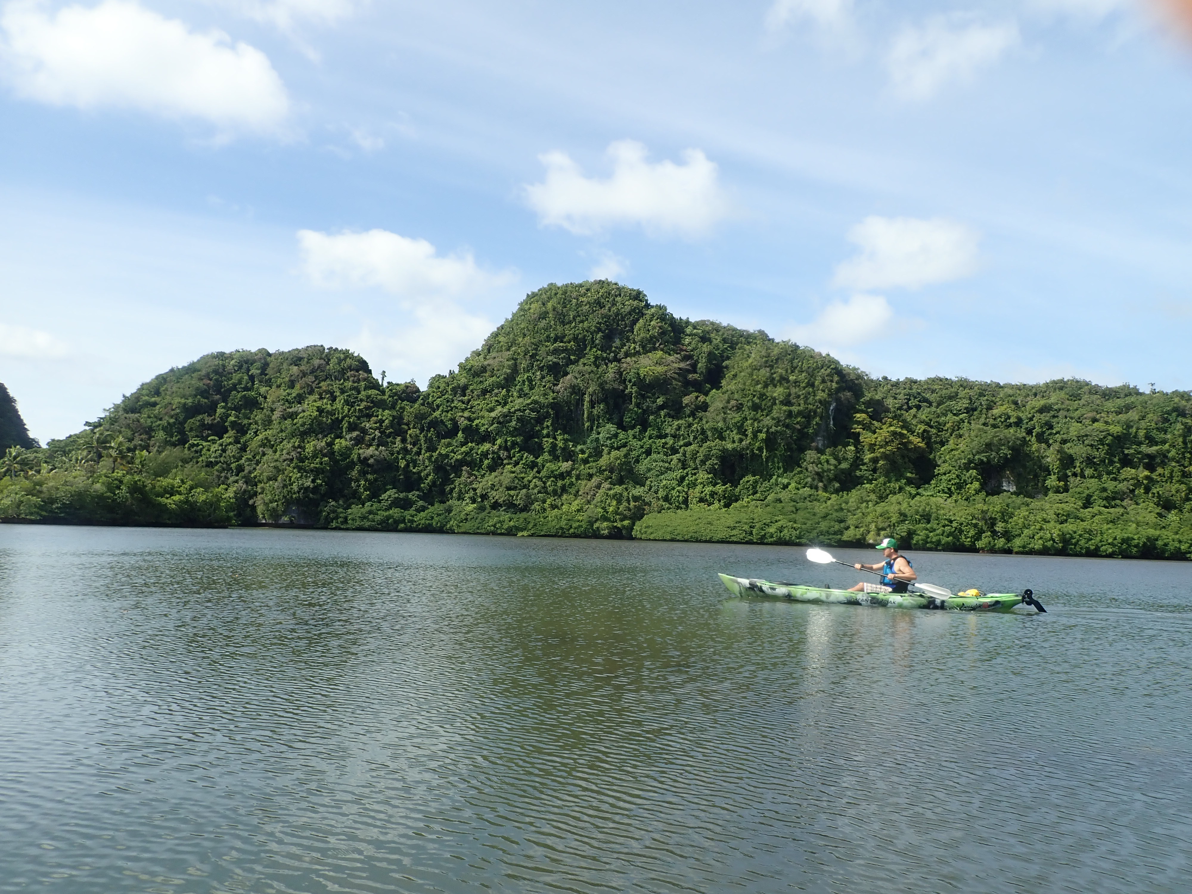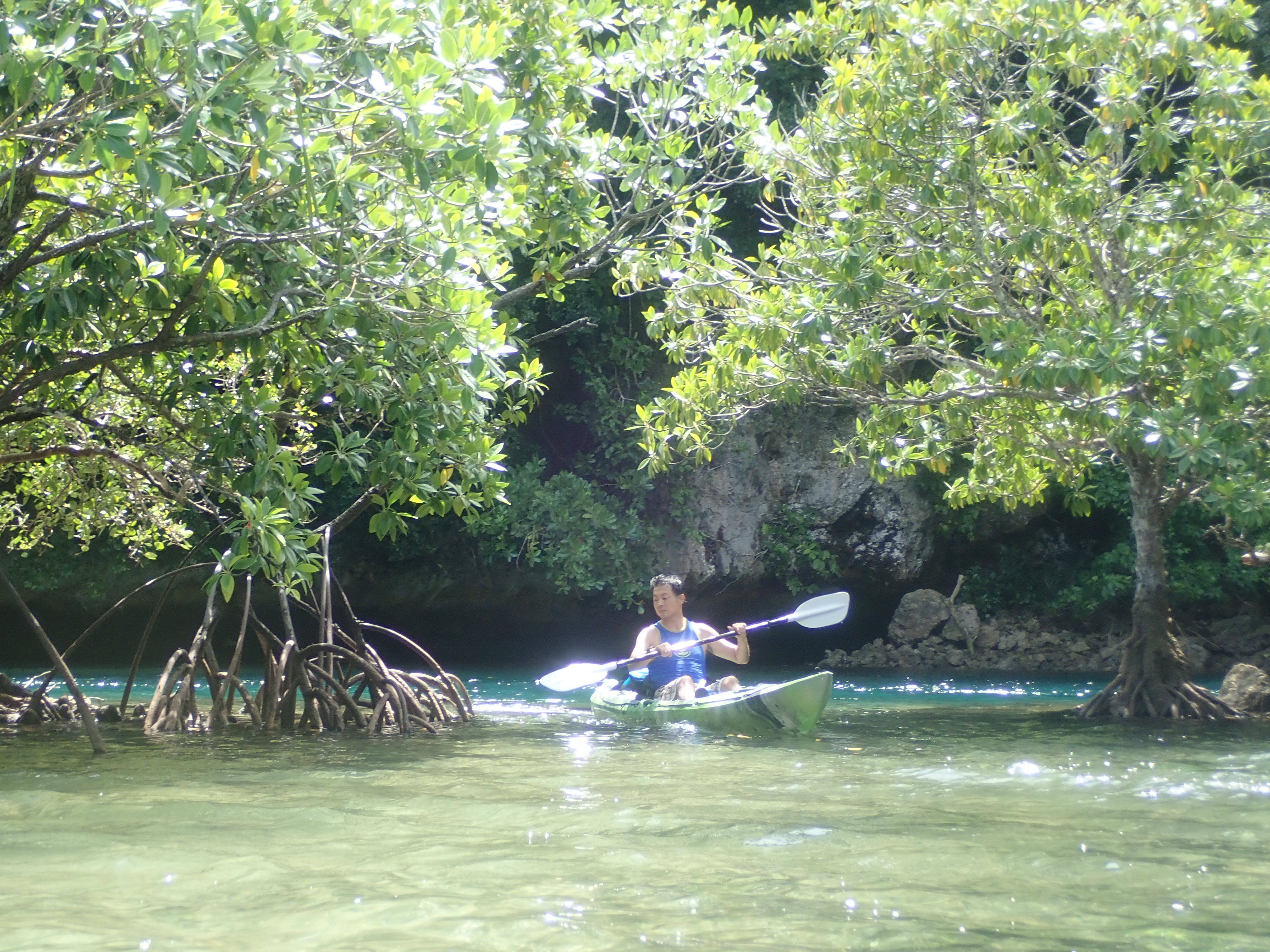 パラオの日本統治時代の話は本やインターネットだけではあまり知られていない話も多く、ツアー中はその辺りをお話しながらカヤッキング。