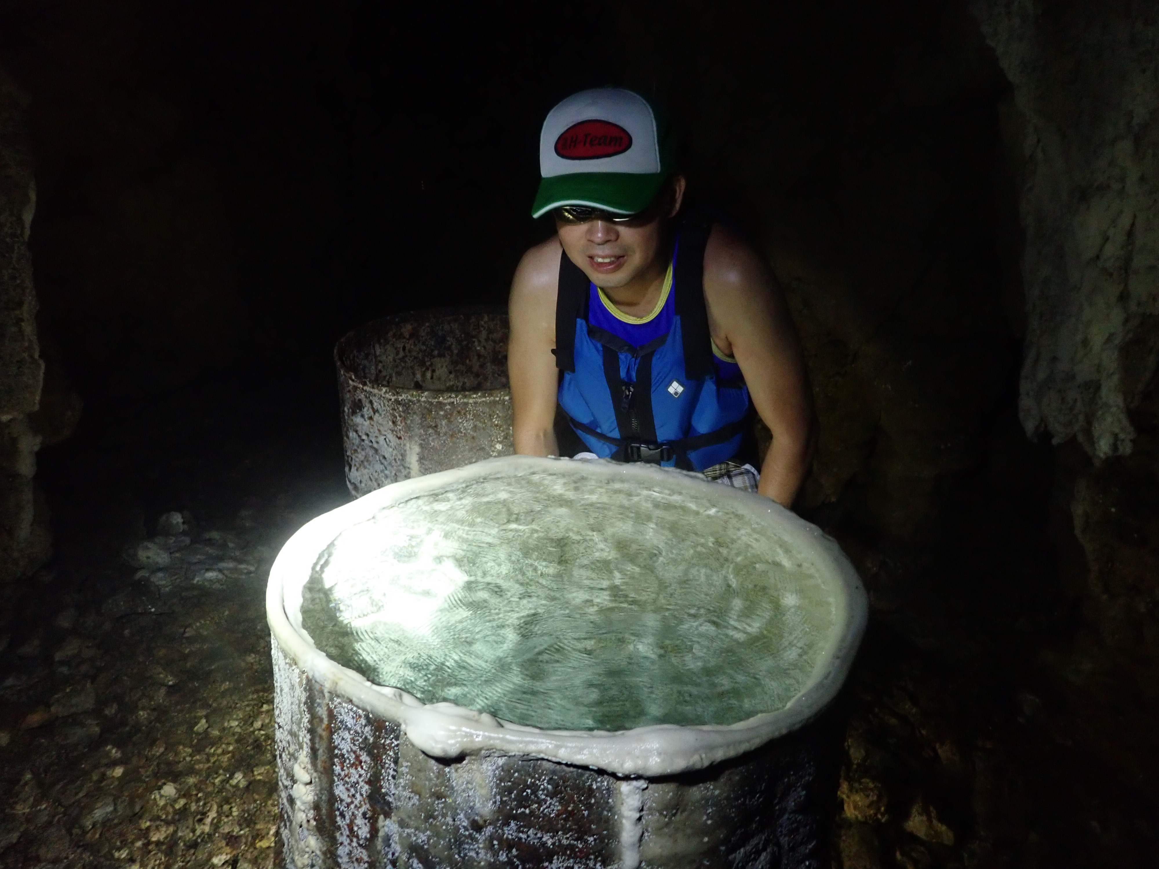 興味がある方しかお連れしない洞窟、塩工場跡。昔は照明はあったはずですが、やはり暗い洞窟の中で塩を精製する当時の日本人の思いは現代の我々には理解が難しように思います。約80年前、たしかにこの地には日本人が住み、パラオの人々とともに生活を営んでいました。