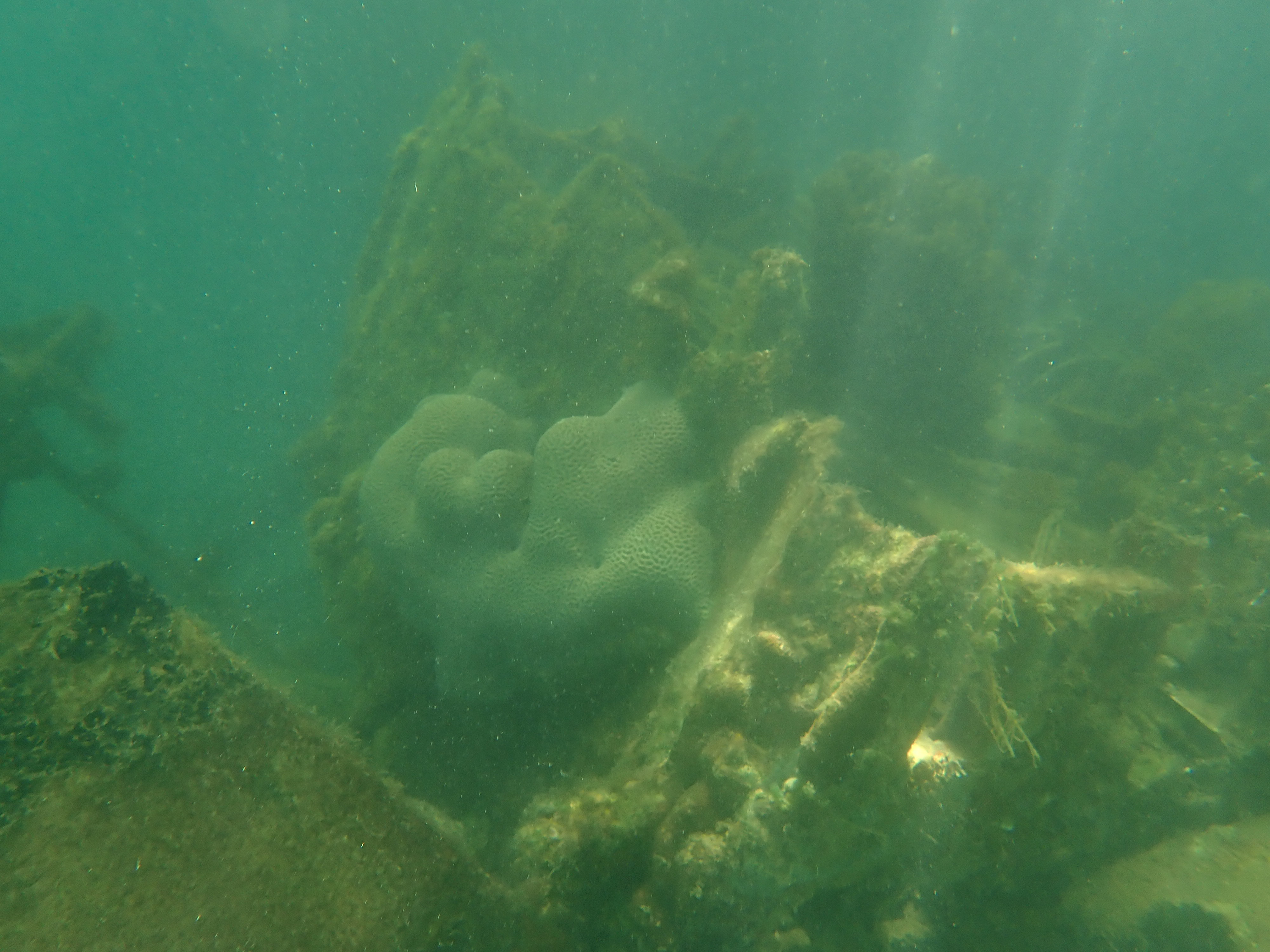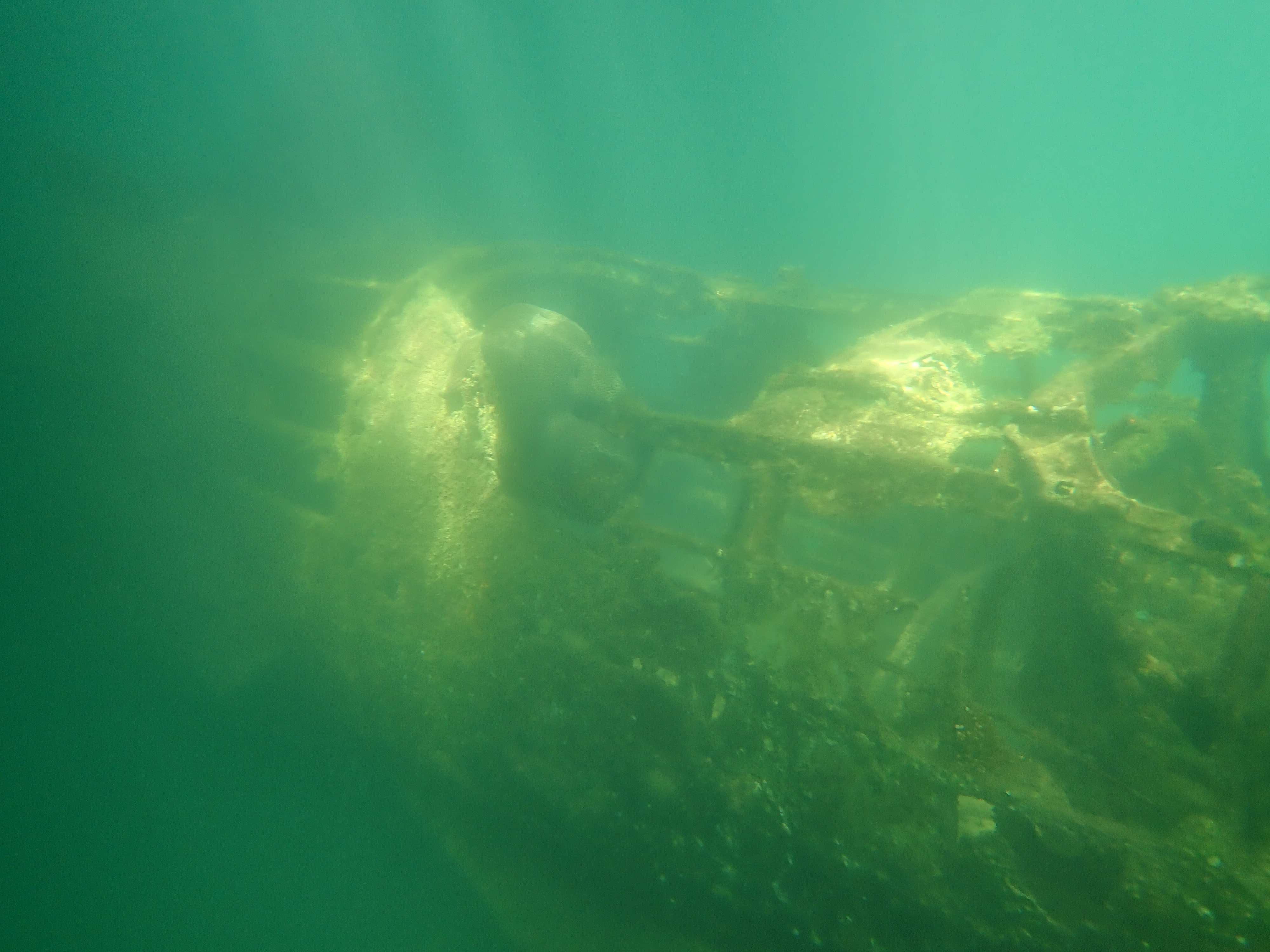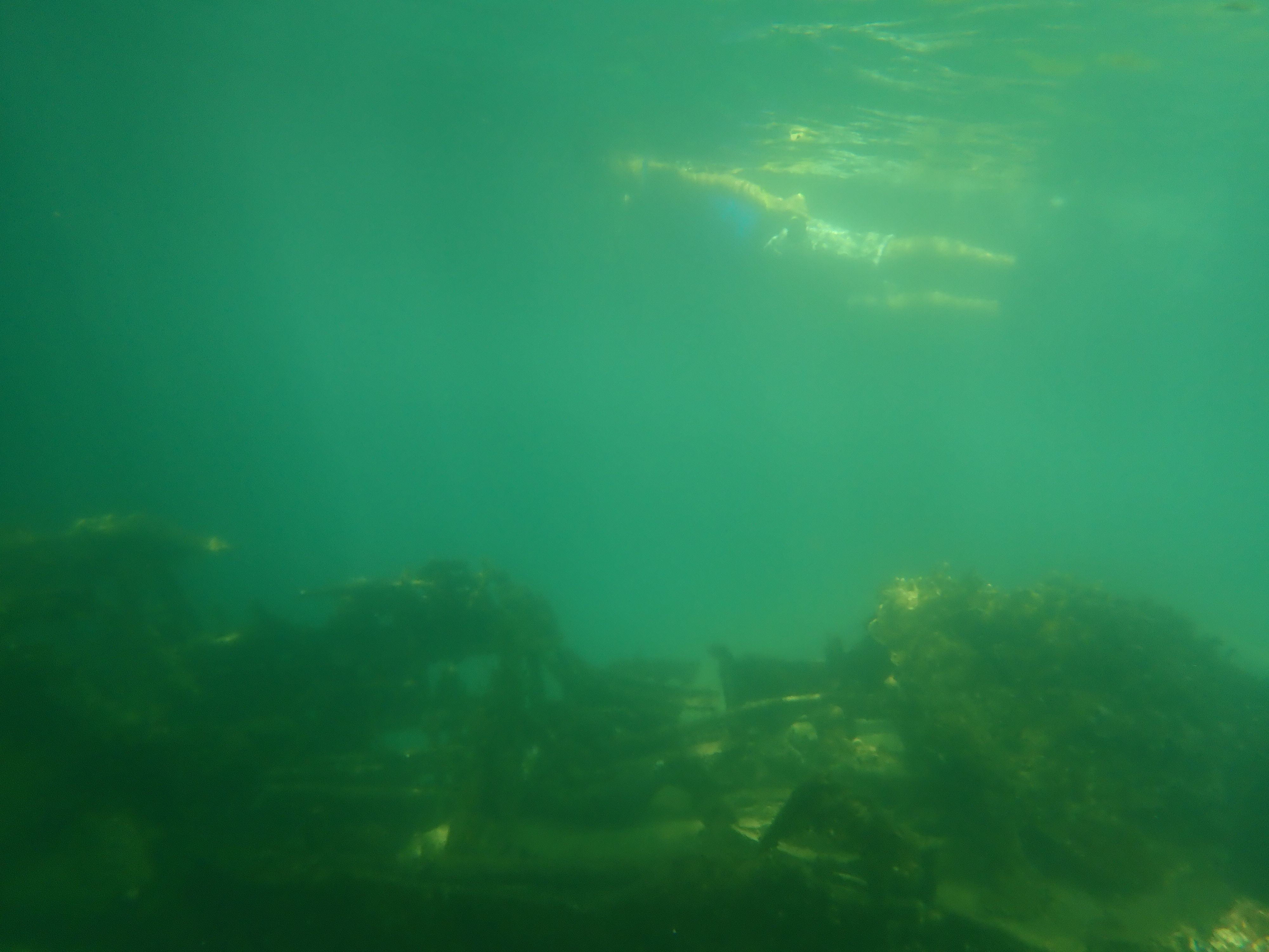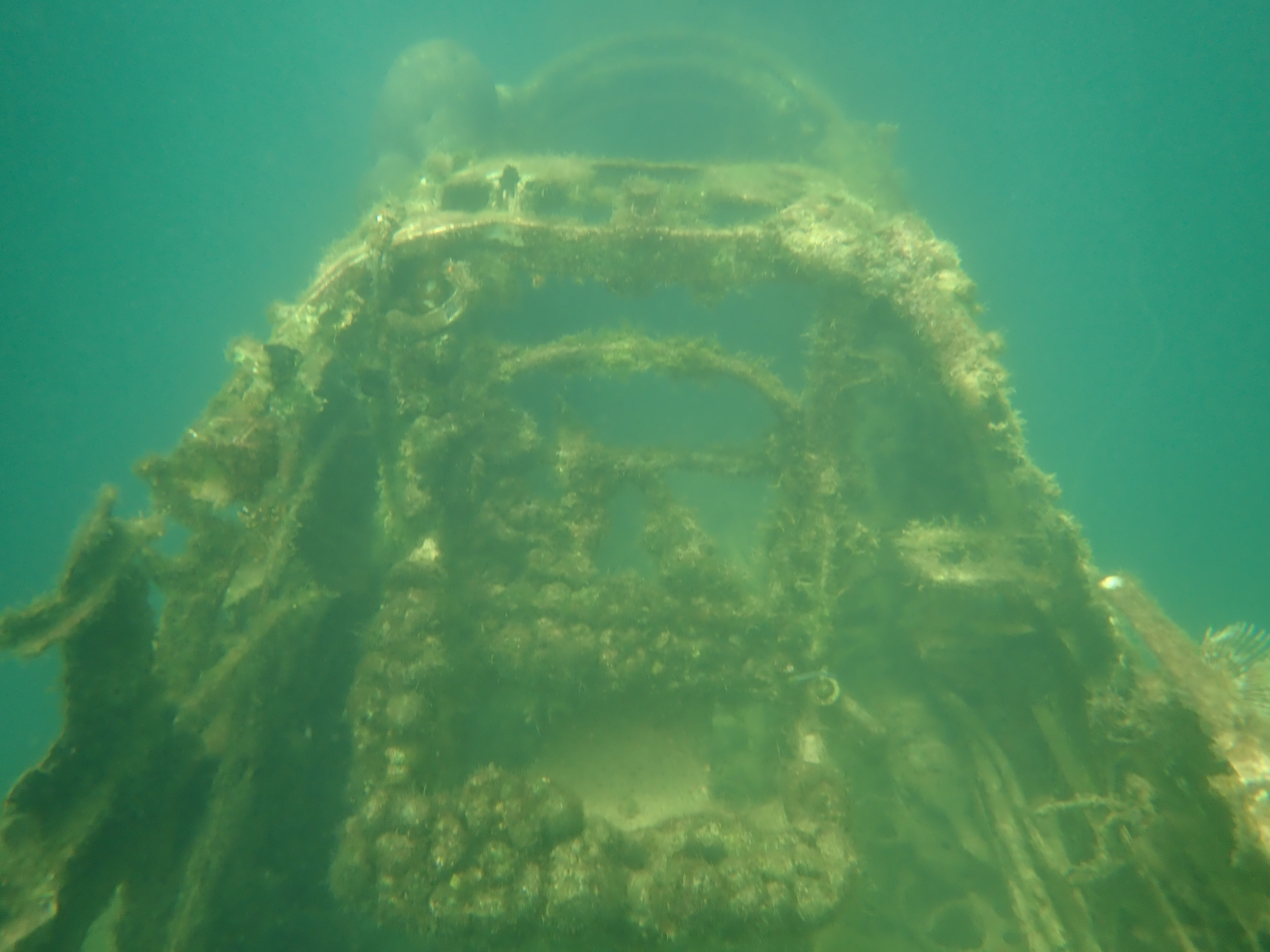 スノーケルで見る旧日本海軍の零式三座水上偵察機。こちらの略称、零式水偵はフロートの付いた水上偵察機。いわゆる零戦は艦上戦闘機でまったくの別物。