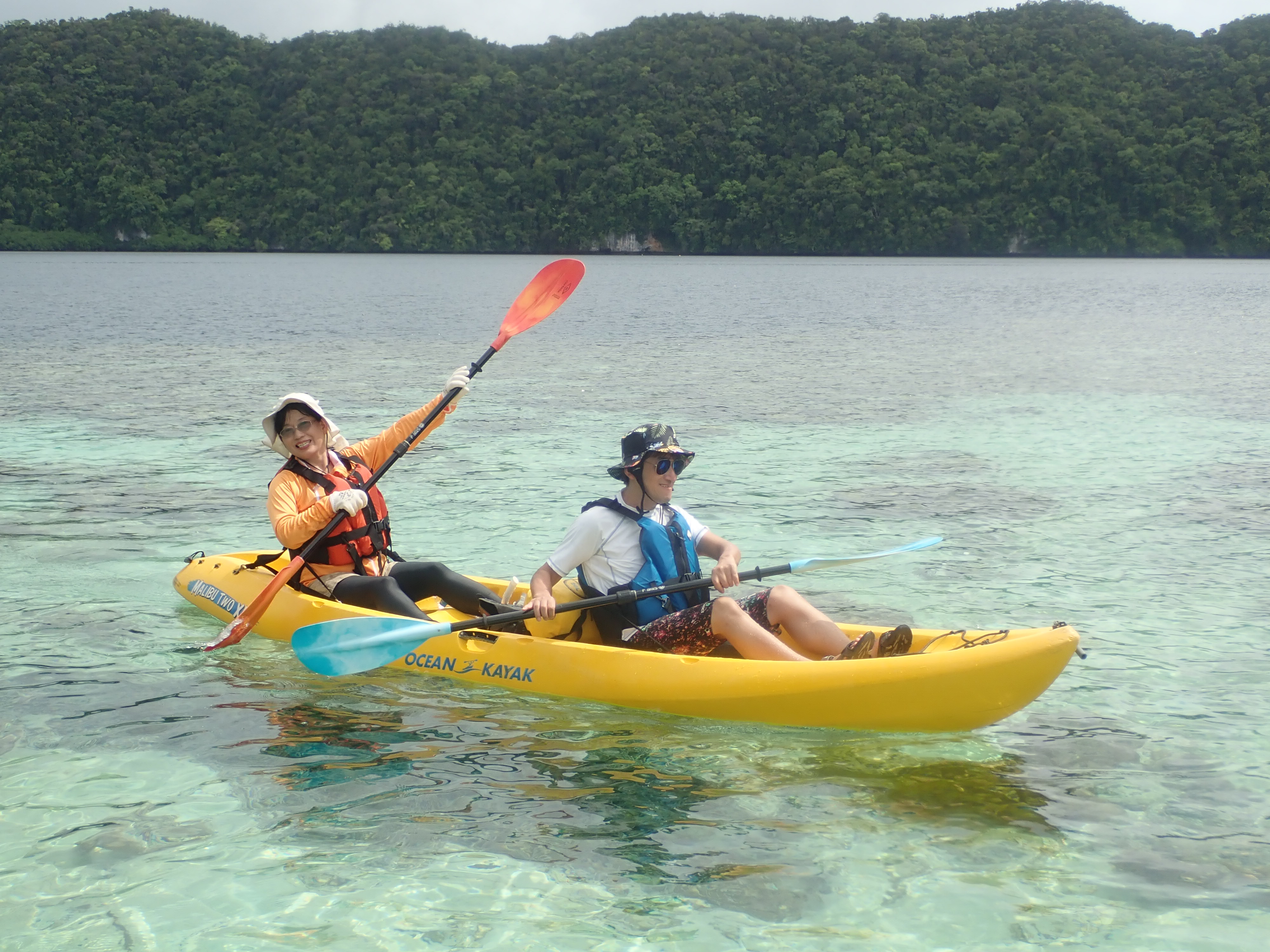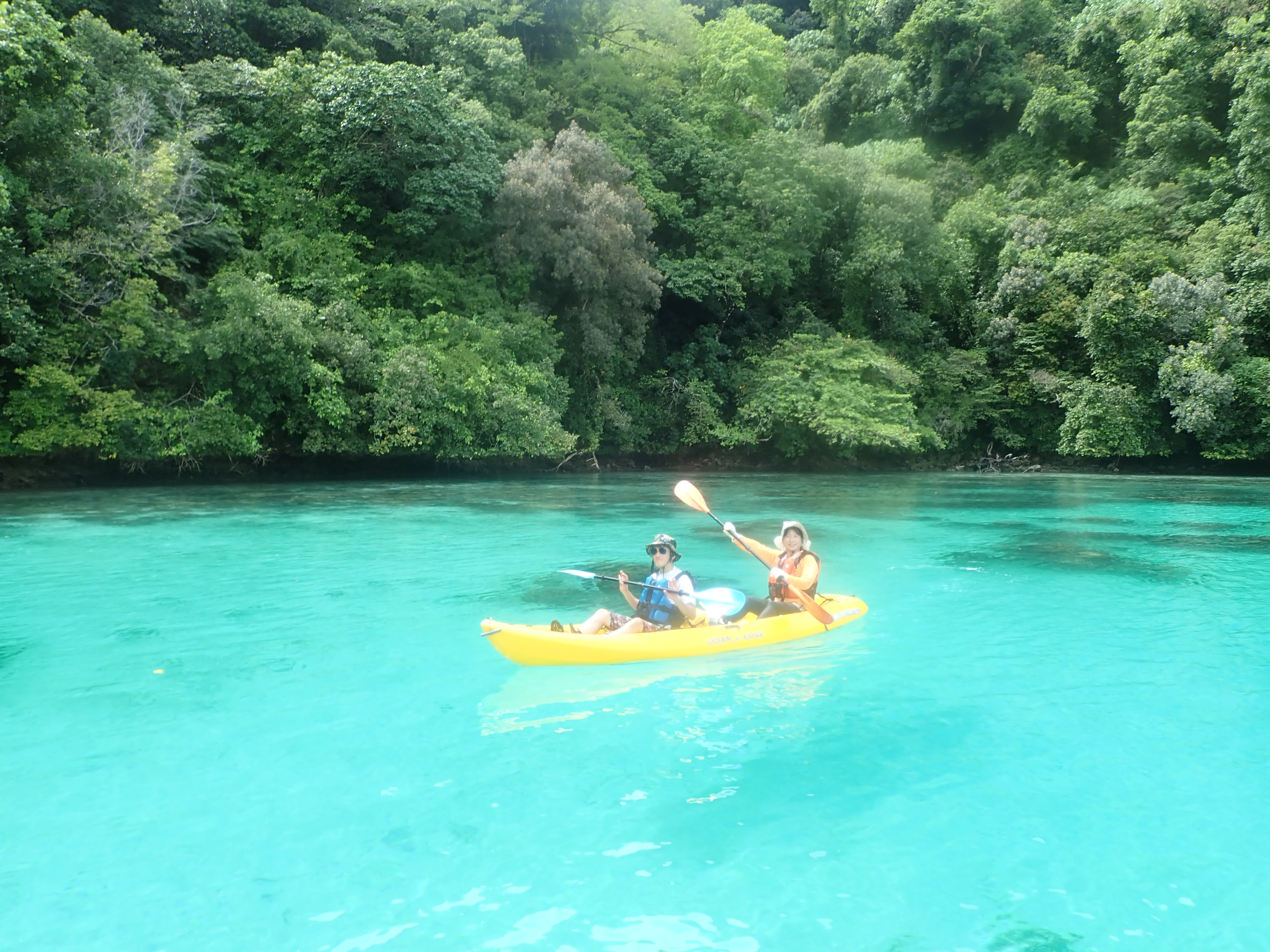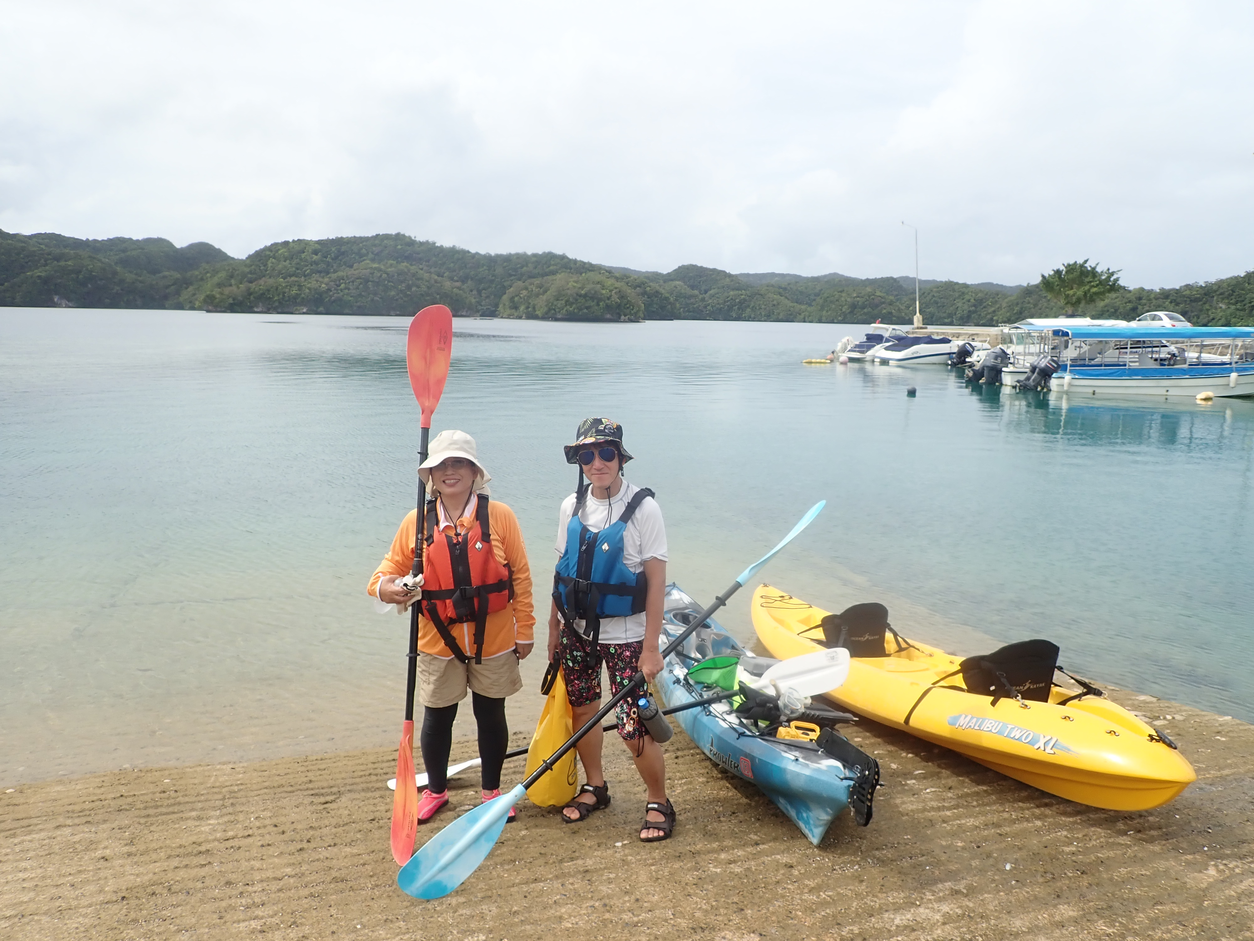 カヤックは久しぶりとの事で陸上でもパドリングレッスン。息のあったパドリングですぐに漕げるようになりました。