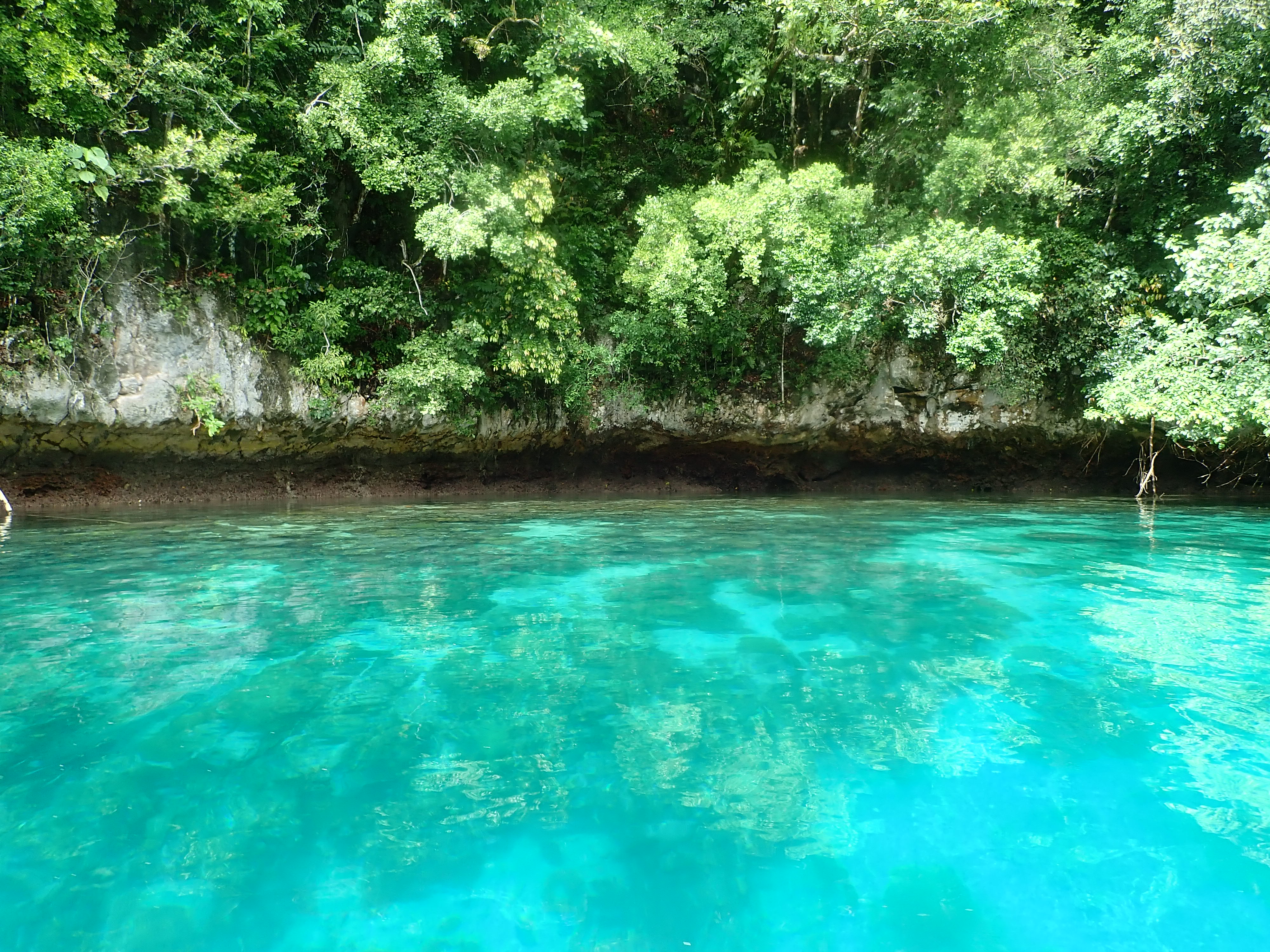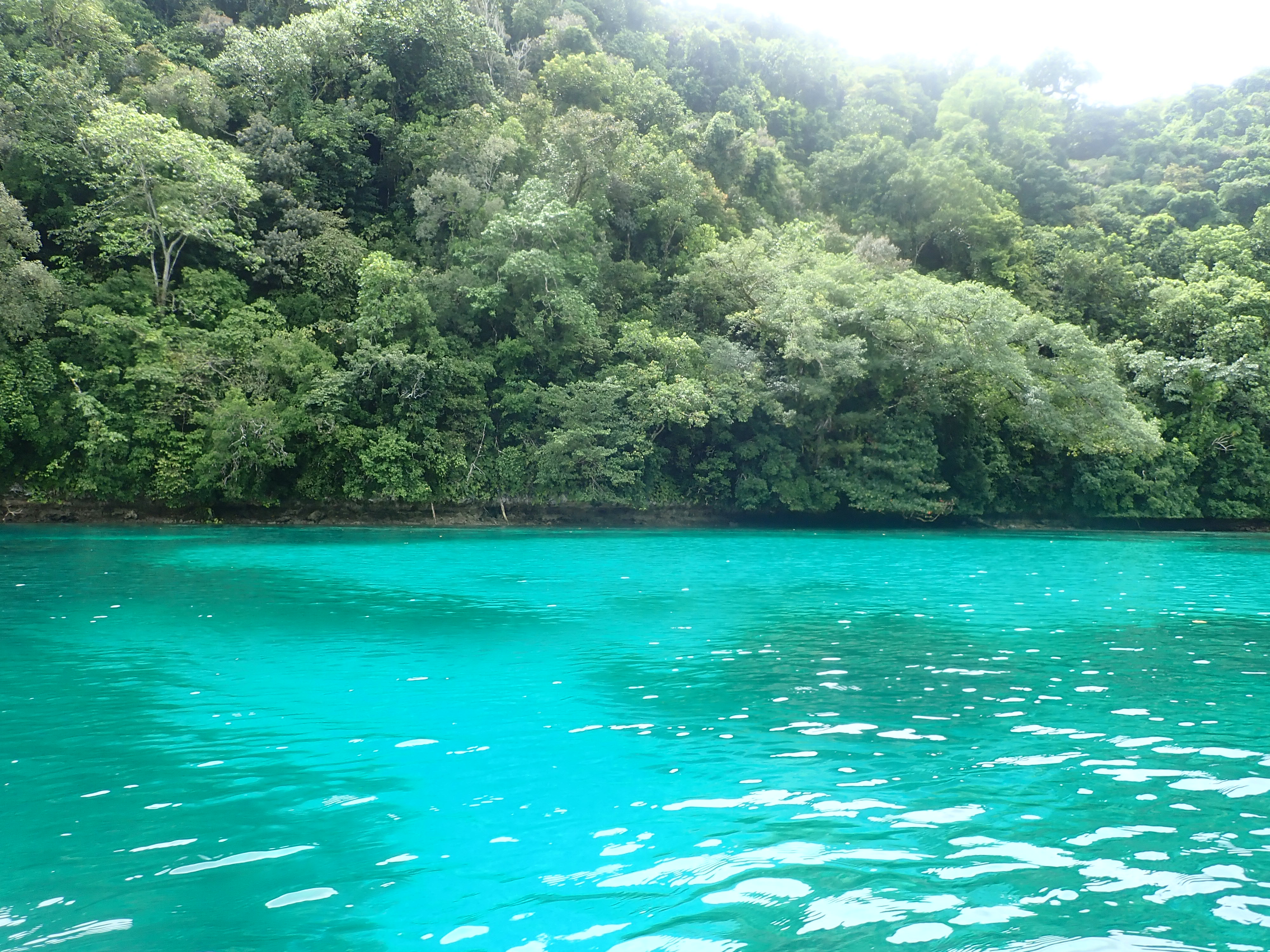 洞窟巡りは定番のエメラルドケイヴから。淡い緑色が綺麗です。